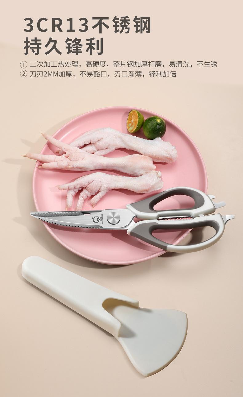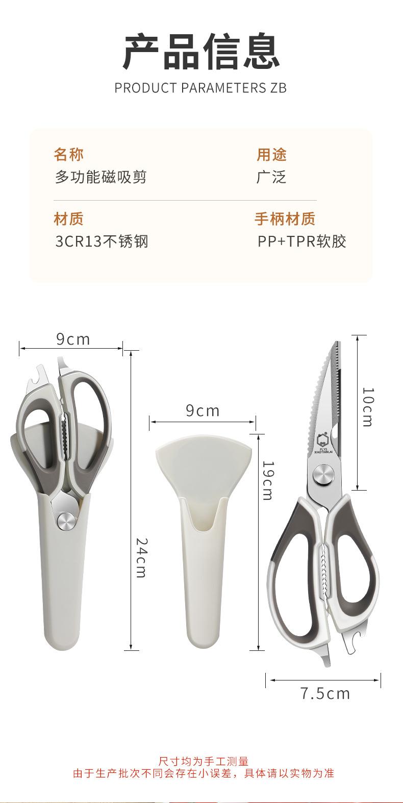 Detachable white multifunctional kitchen scissors, White multifunctional kitchen scissors + refrigerator magne...