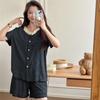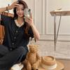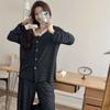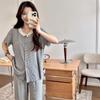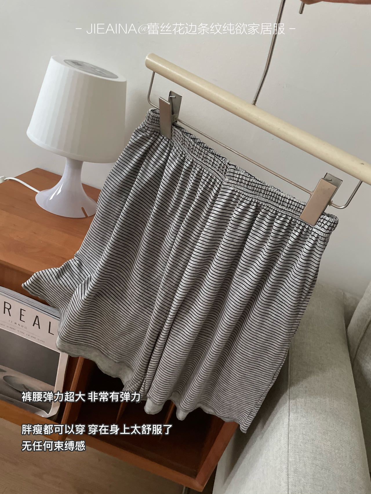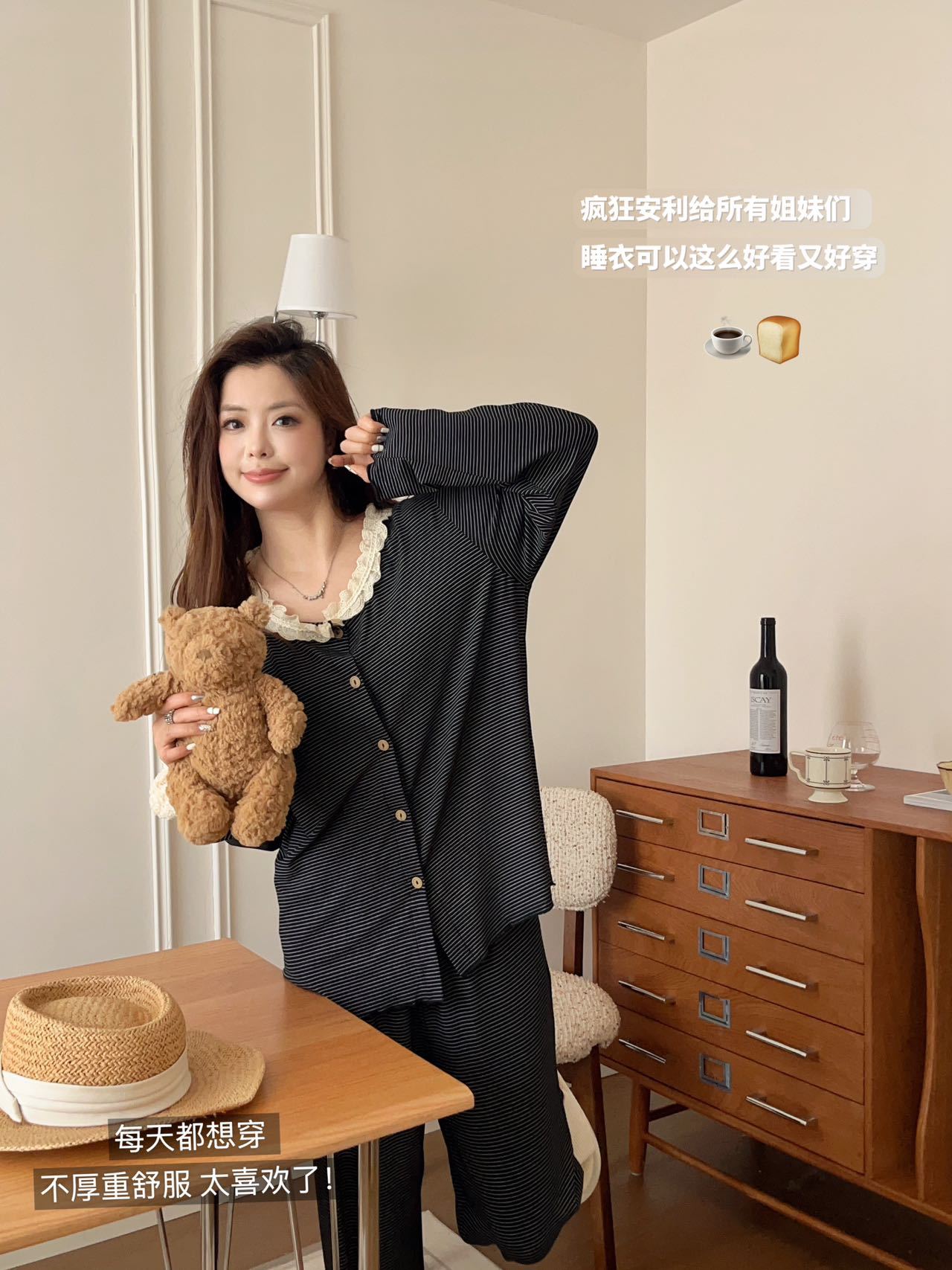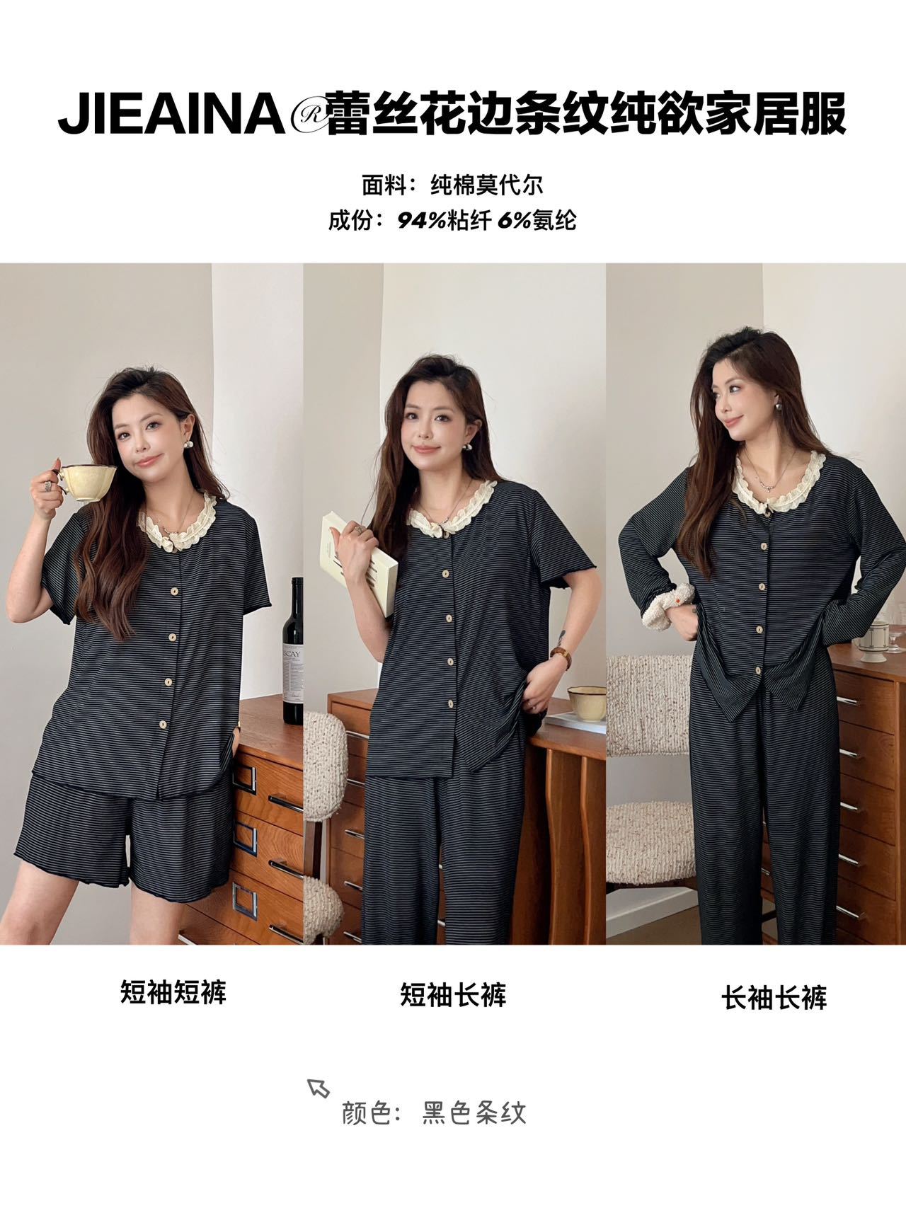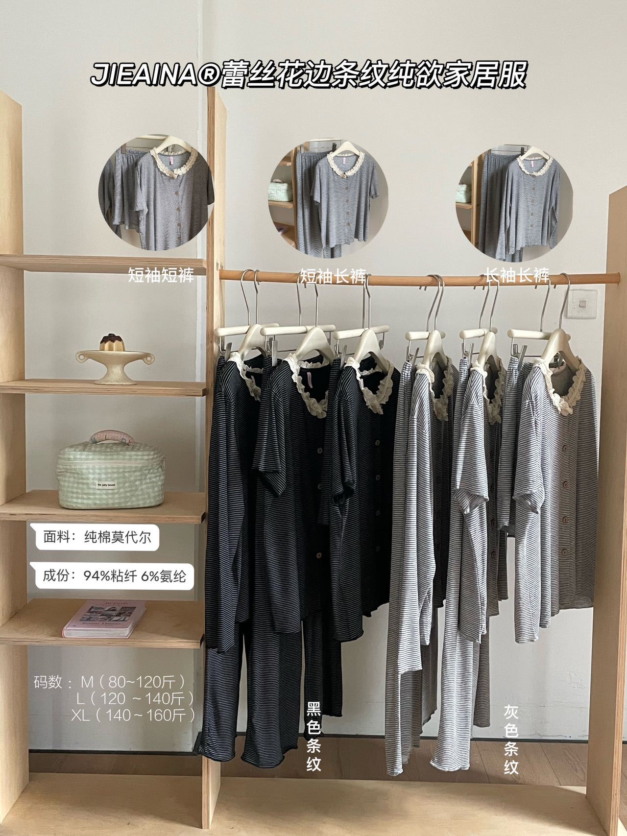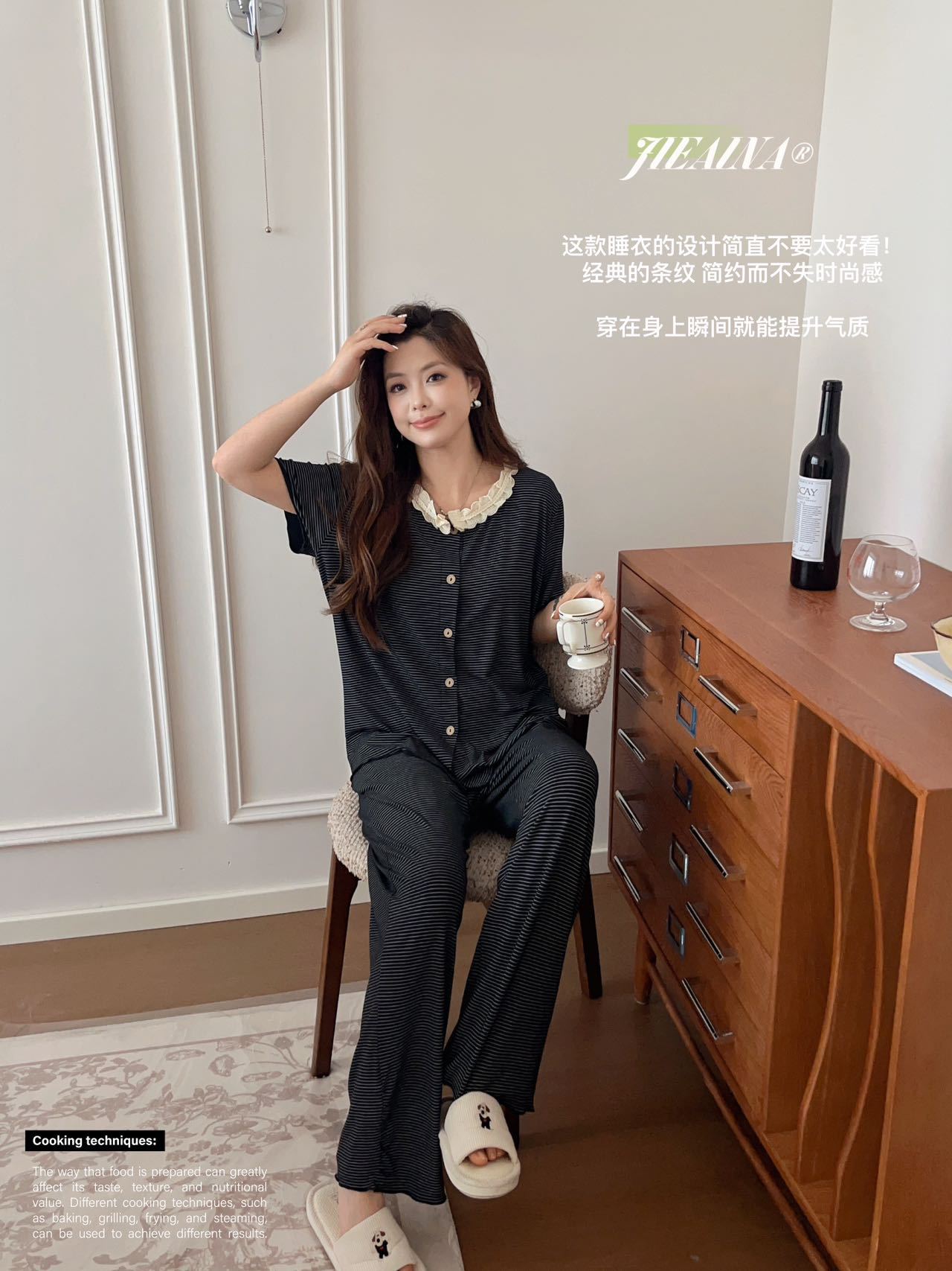 Cárdigan de manga corta y manga larga con encaje a rayas para primavera y verano, ropa de casa, pijama de algodón modal para mujer