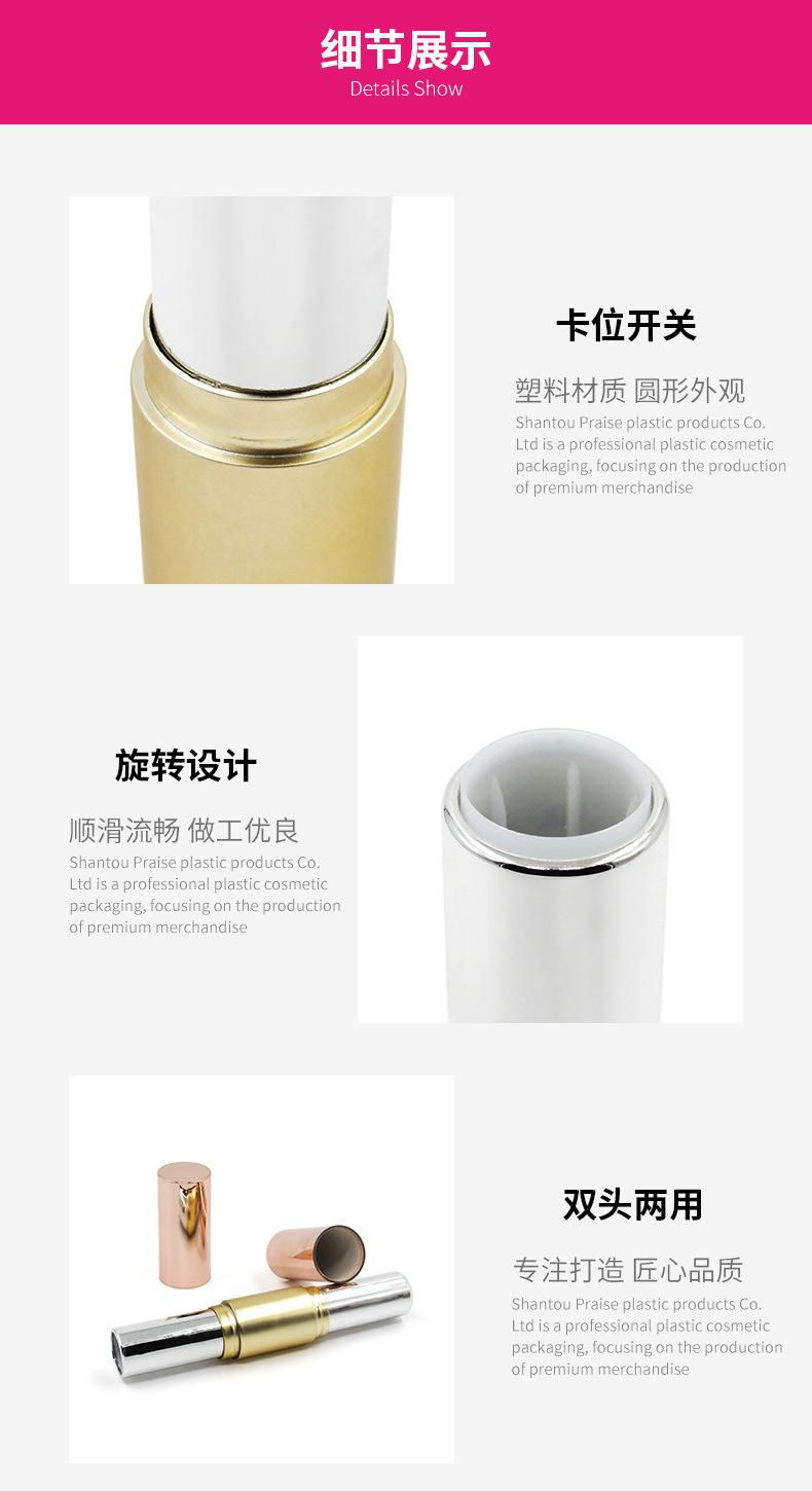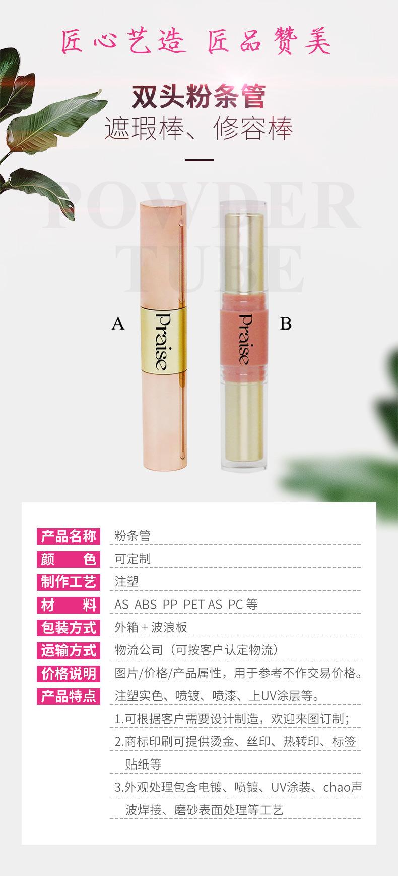 Barra de reparación de dos cabezales para sombras de resaltado, material de embalaje, tubo redondo de polvo a rayas, corrector en barra, tubo vacío de plástico cosmético