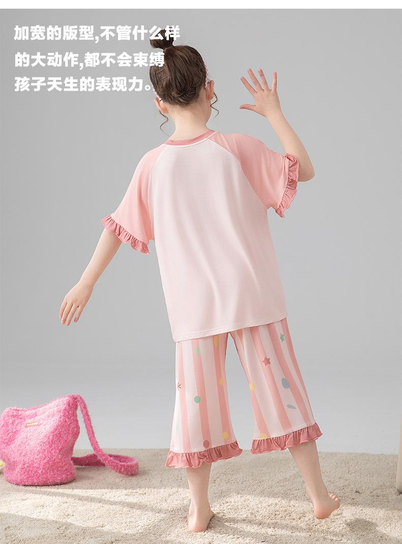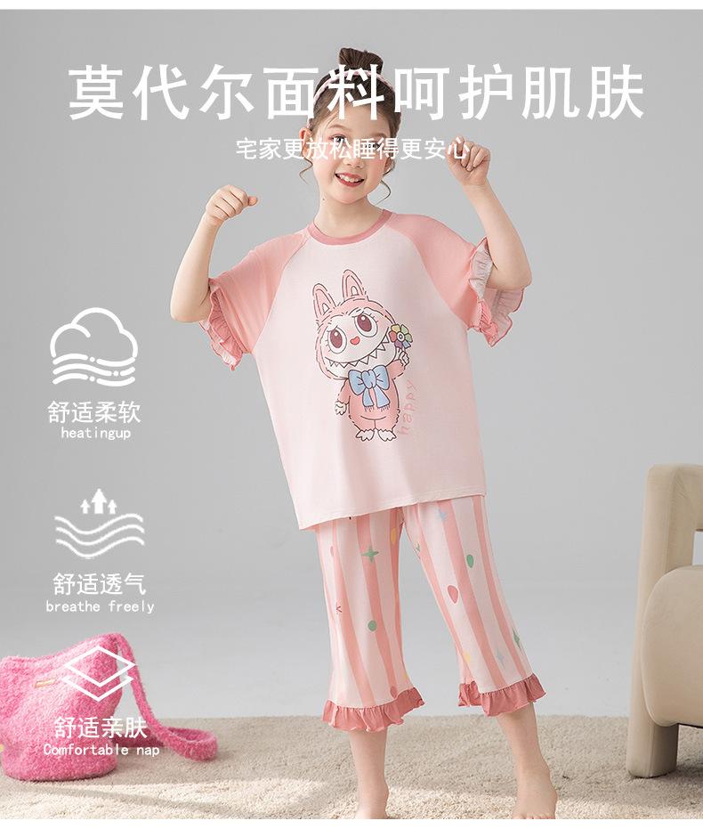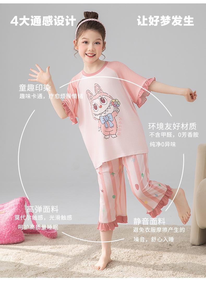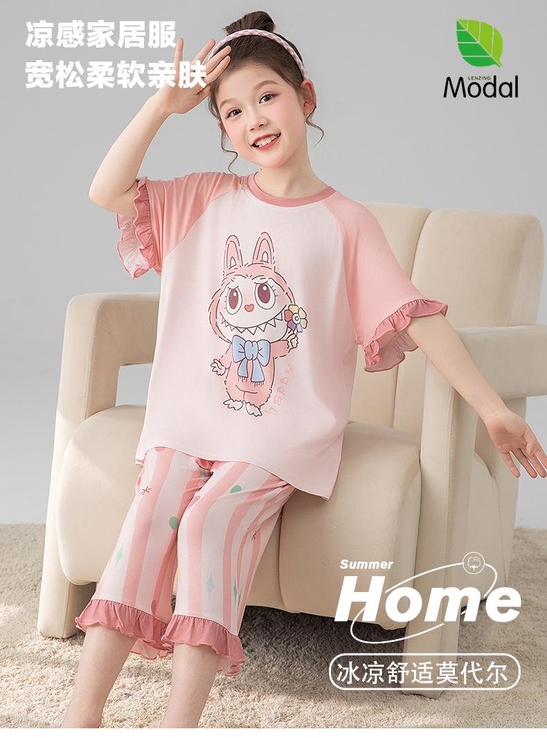 Pijamas para niños 2025 Modal Delgados Manga Corta Pantalones Recortados Verano Aire Acondicionado Ropa para el Hogar Niñas Bebé Conjunto de Princesa