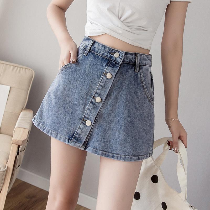 Compra Pantalón Falda Antideslizante Verano Nuevo 2024 Cintura Alta Shorts de Mezclilla Falda Casual Adelgazante de Pierna Ancha Línea A para Mujer al por mayor en Joom.pro