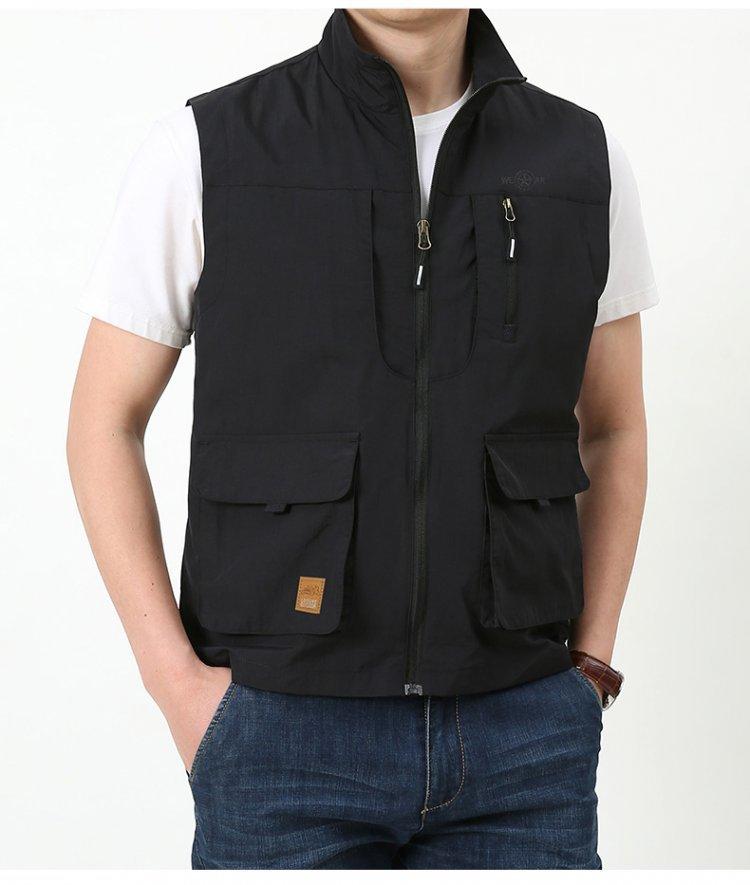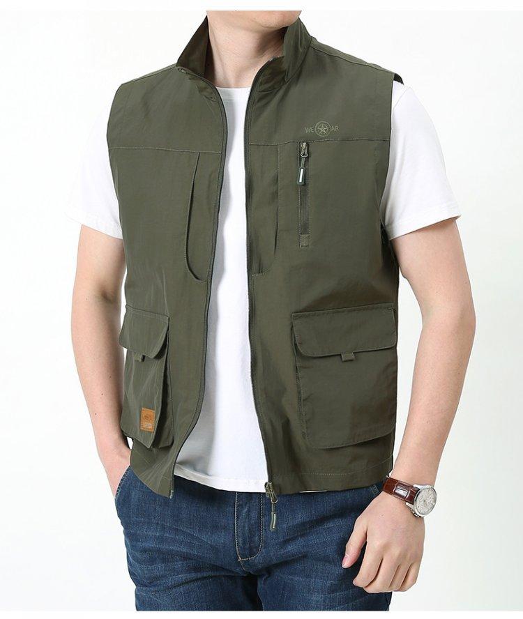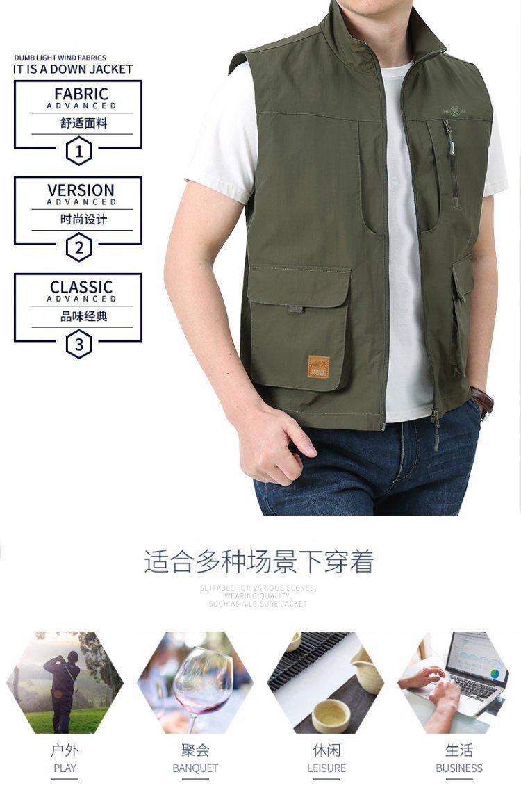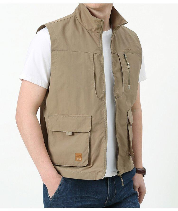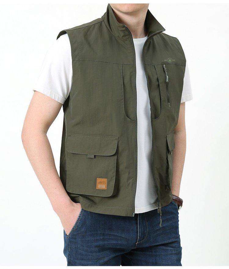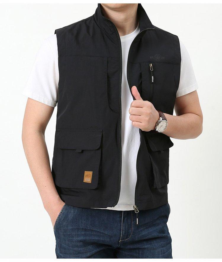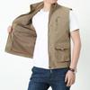 Cárdigan de primavera de color sólido chaleco casual para hombre holgado con múltiples bolsillos cuello alto chaleco de trabajo 677