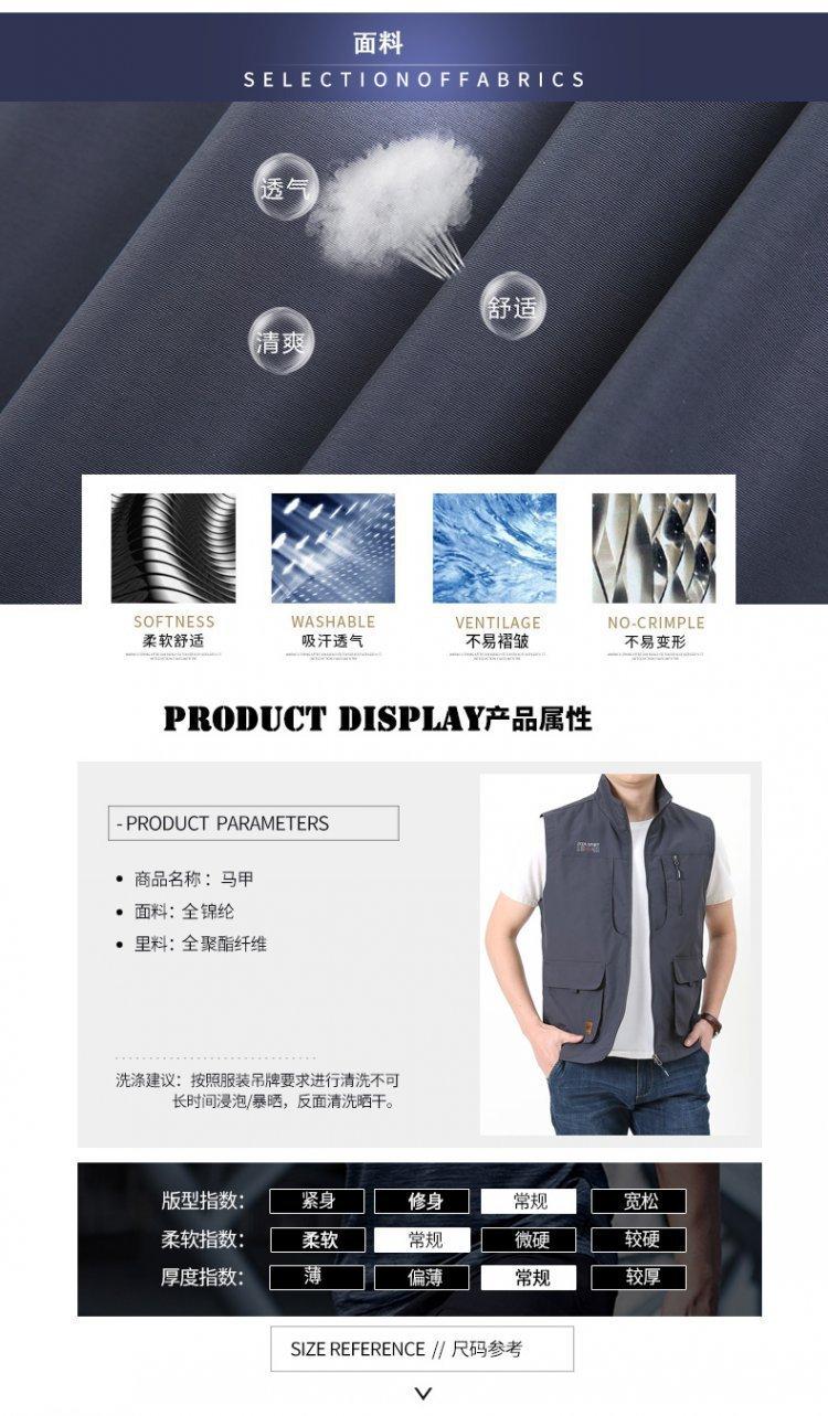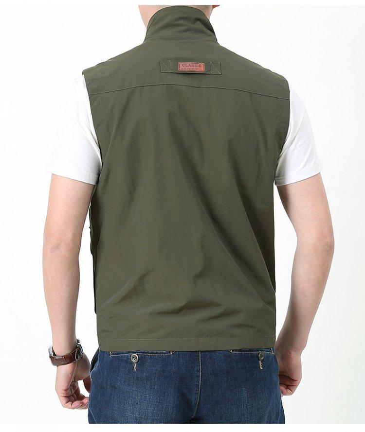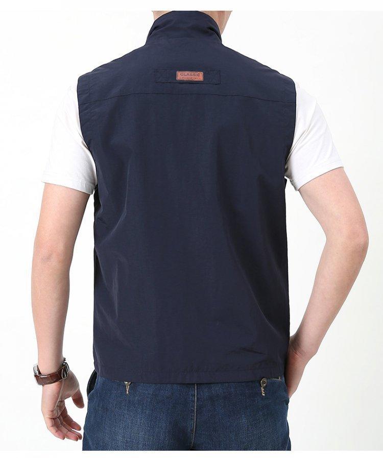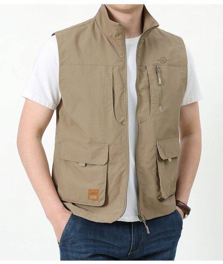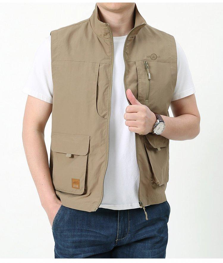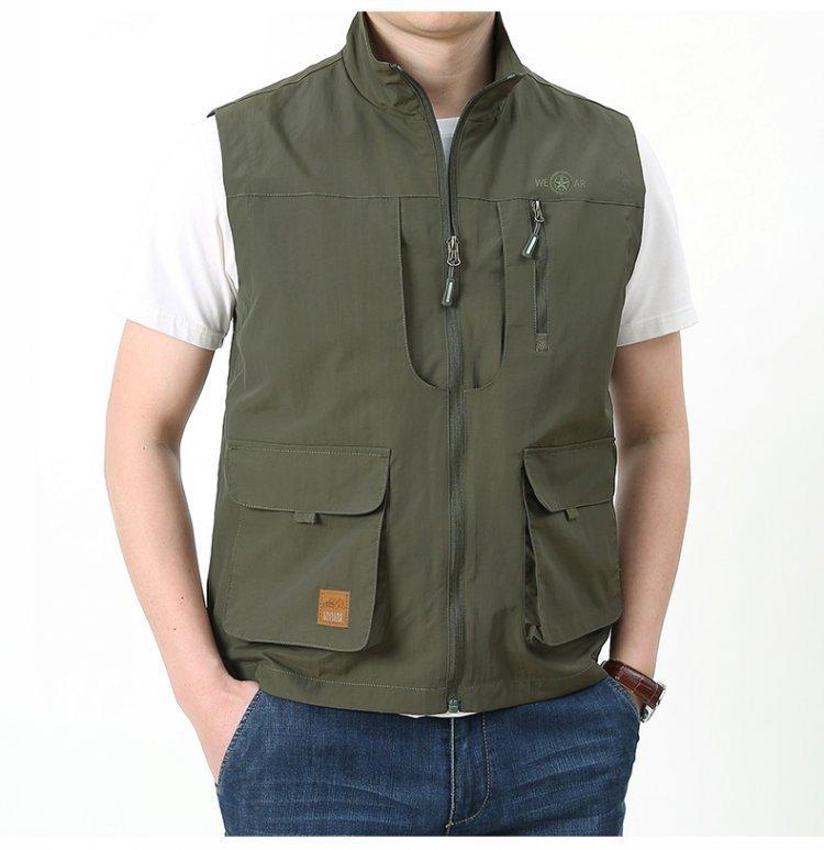Cárdigan de primavera de color sólido chaleco casual para hombre holgado con múltiples bolsillos cuello alto chaleco de trabajo 677