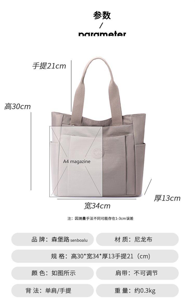 Bolso Casual para Mujer Estilo Transfronterizo 2025 Verano Nuevo Gran Capacidad Casual Color Sólido Tela de Nailon Bolso de Hombro de Mano para Madre
