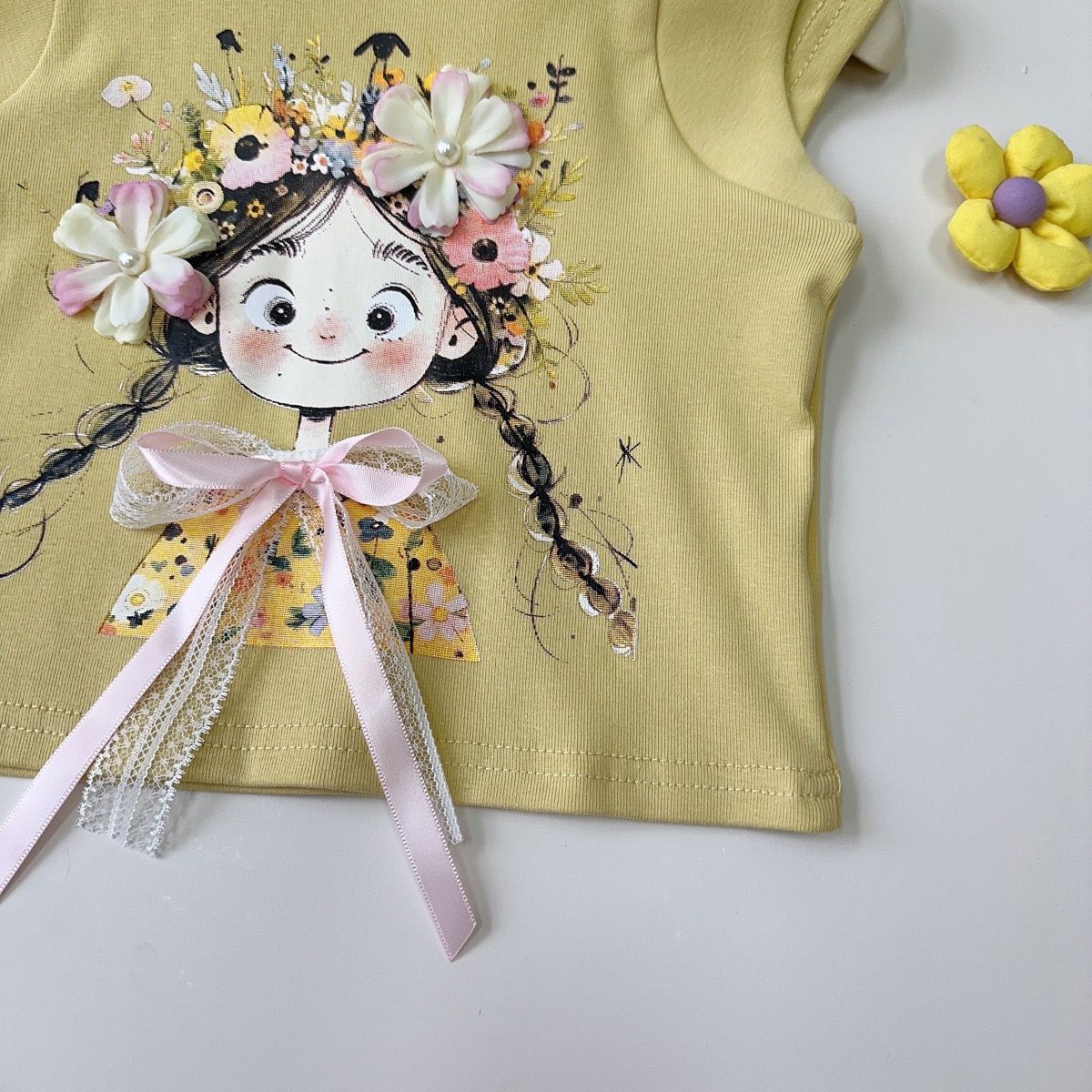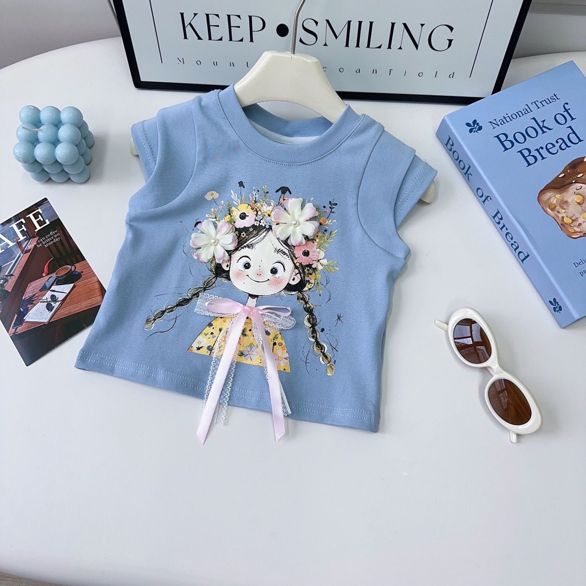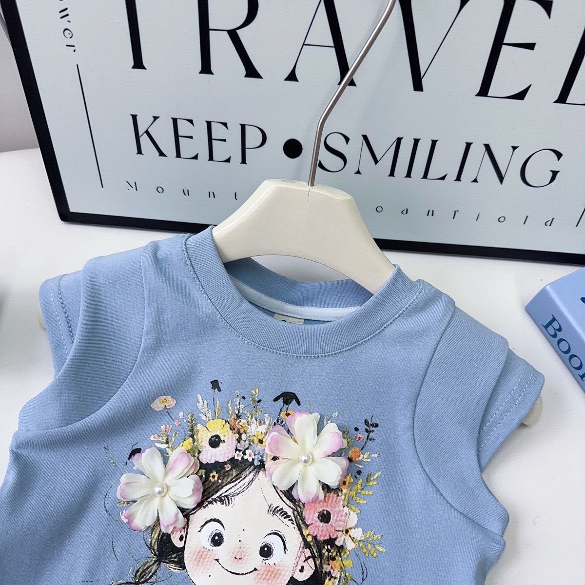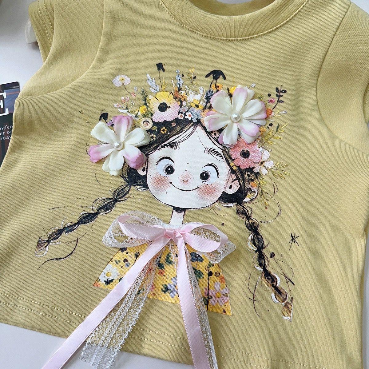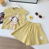 Traje de Verano 2025 para Niñas Camiseta Estampada de Dibujos Animados Shorts Estilo Coreano Dulce Conjunto Casual de Dos Piezas para Niños