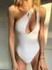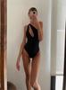 Estilo europeo y americano 2025 verano nuevo estilo INS moda femenina sexy hombro inclinado calado ajustado color sólido jumpsuit