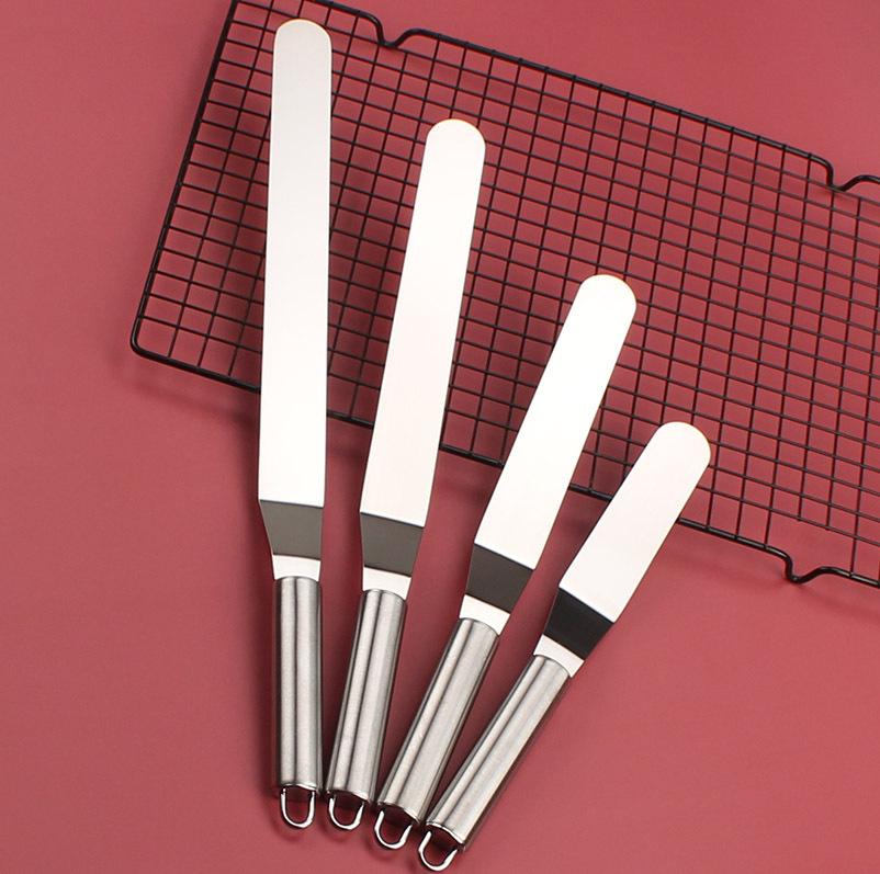 Herramientas para hornear Espátula de crema con mango de tubo ovalado de acero inoxidable de 6 pulgadas, 8 pulgadas, 10 pulgadas, 12 pulgadas, cuchillo para pastel
