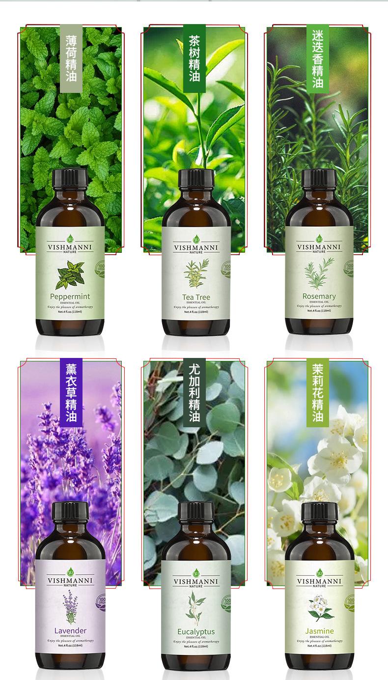 Mint essential oil 118ml, Tea tree essential oil 118ml, Rose essential oil 118ml, Rosemary essential oil 118ml...