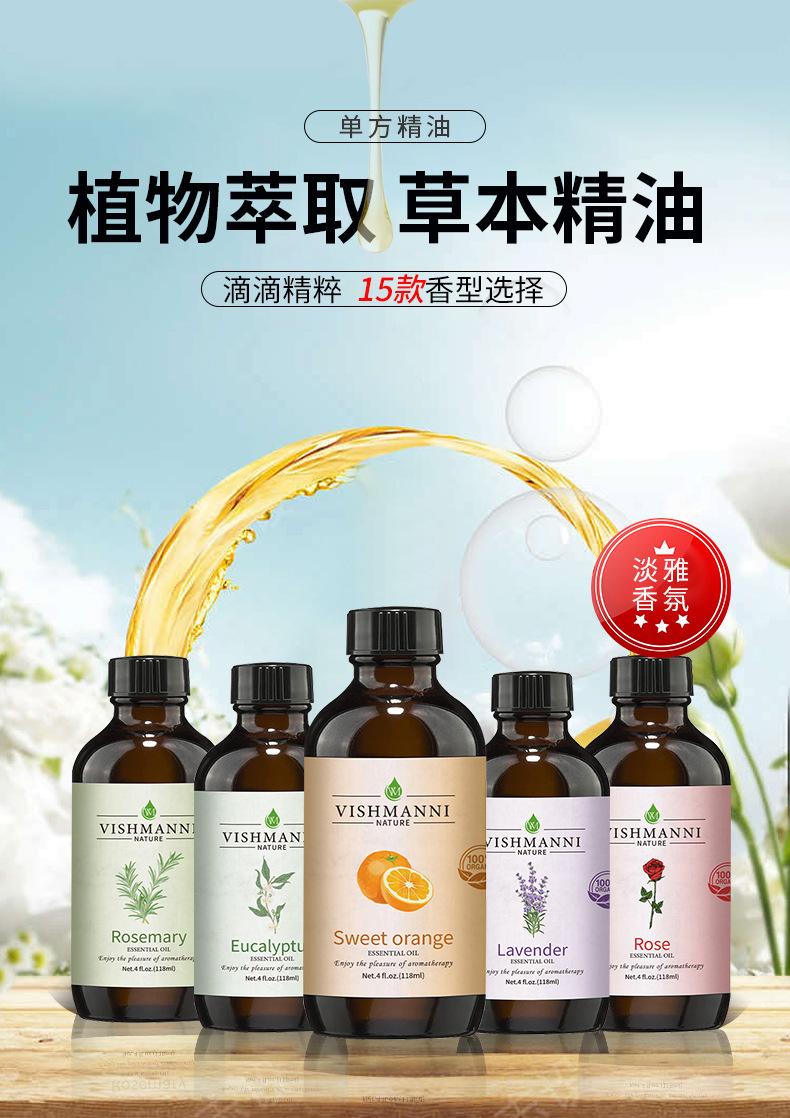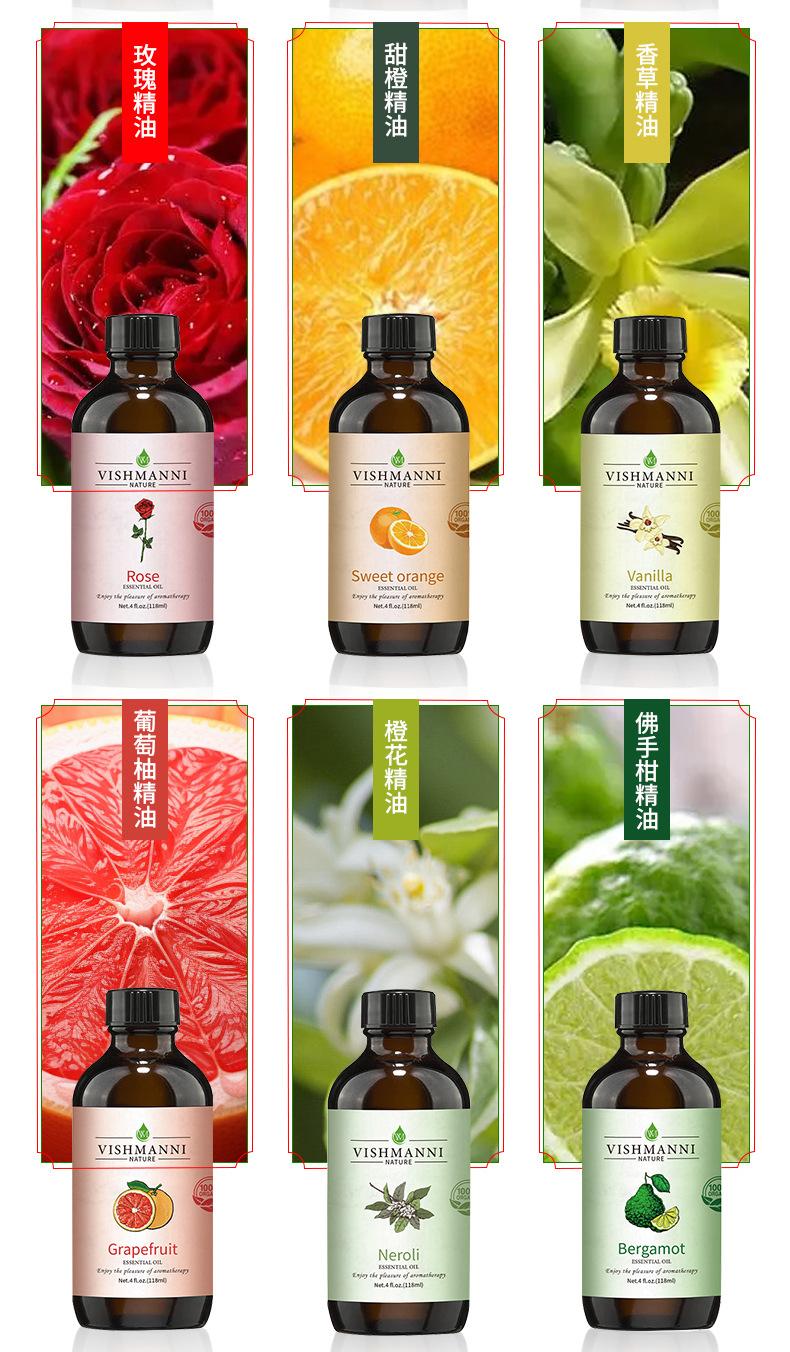 Aceite esencial unilateral de aromaterapia, aceite esencial de aromaterapia de grado comercial transfronterizo para aceite esencial de limoncillo, árbol de té, jazmín y lavanda.