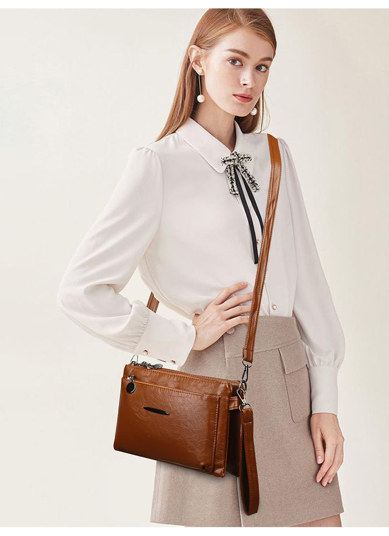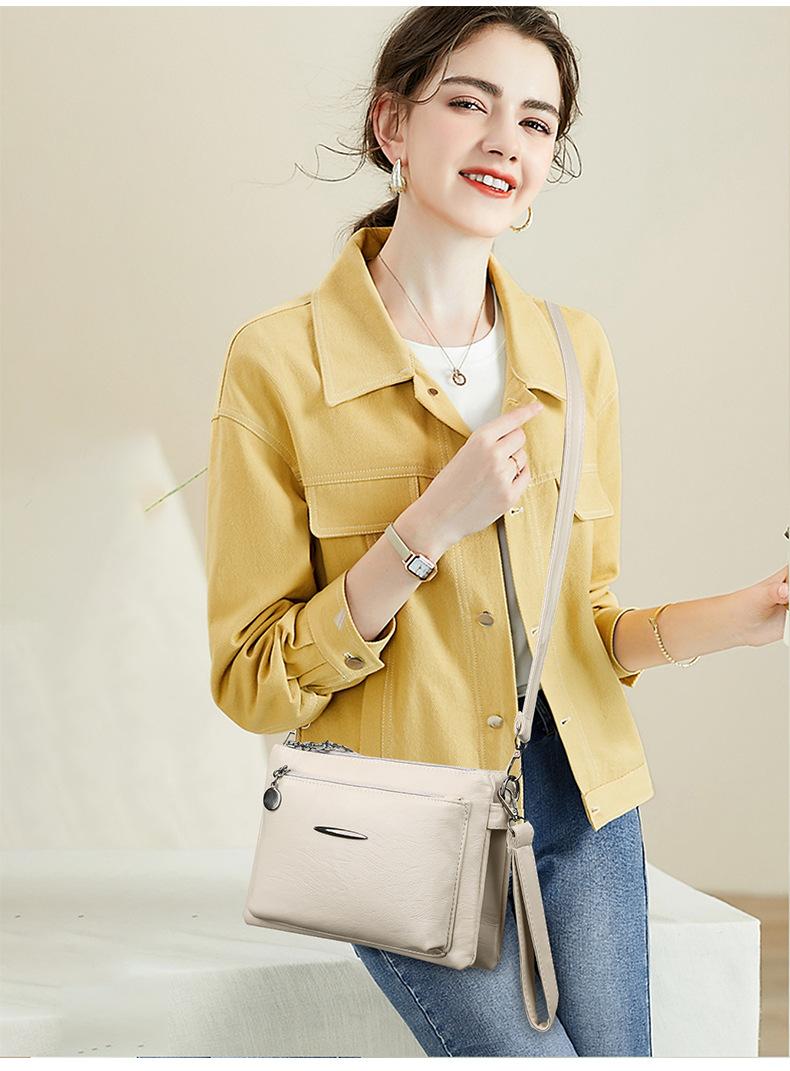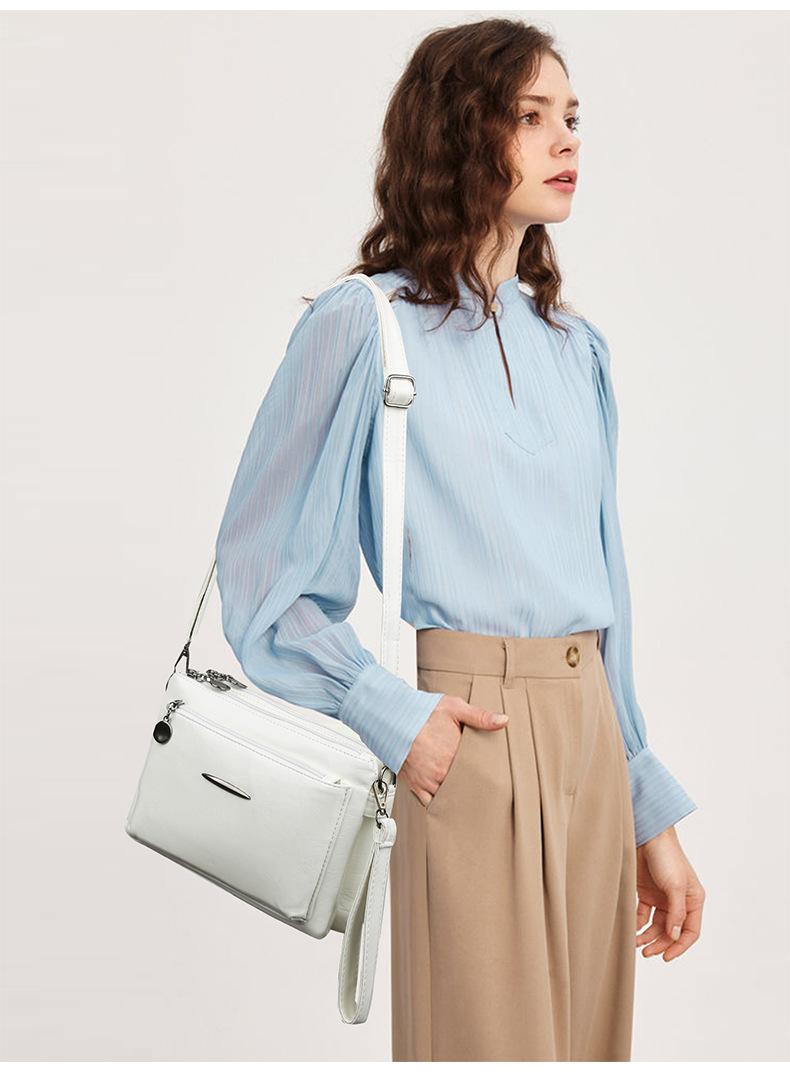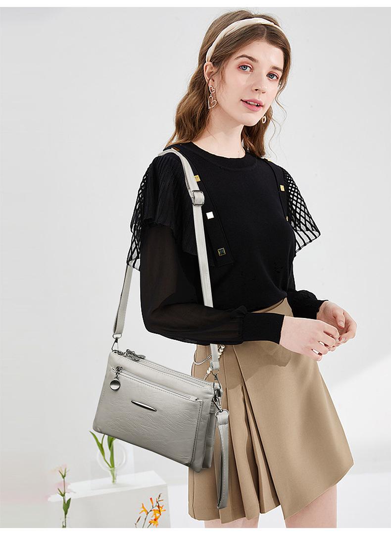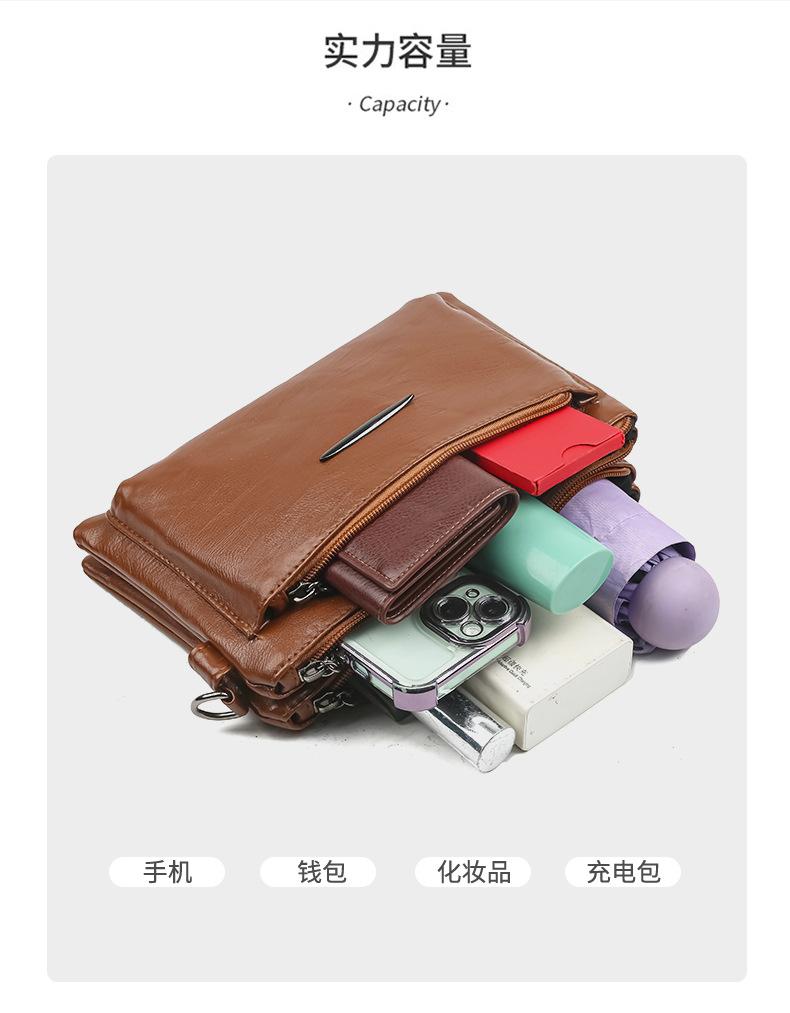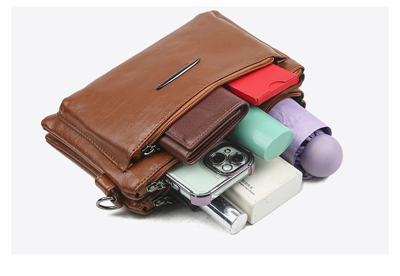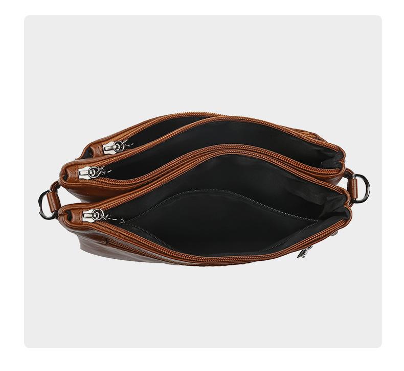 Bolso de hombro de moda para mujer 2025, bolso de muñeca de gran capacidad, bolso cruzado multicapa, bolso de madre informal europeo y americano, bolso de mujer de cuero suave.