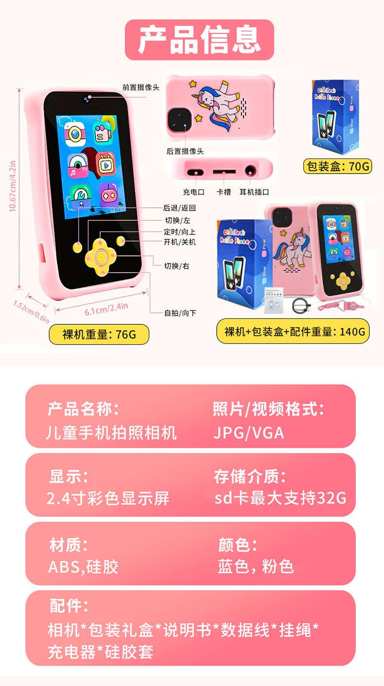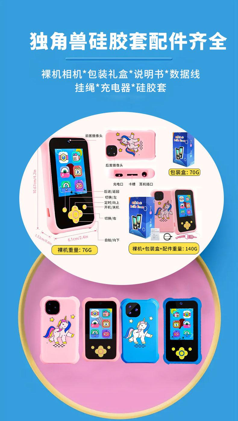 Nuevo teléfono móvil para niños transfronterizo de 2.4 pulgadas con cámara, teléfono inteligente de unicornio con cámara dual delantera y trasera, juguete, cámara HD