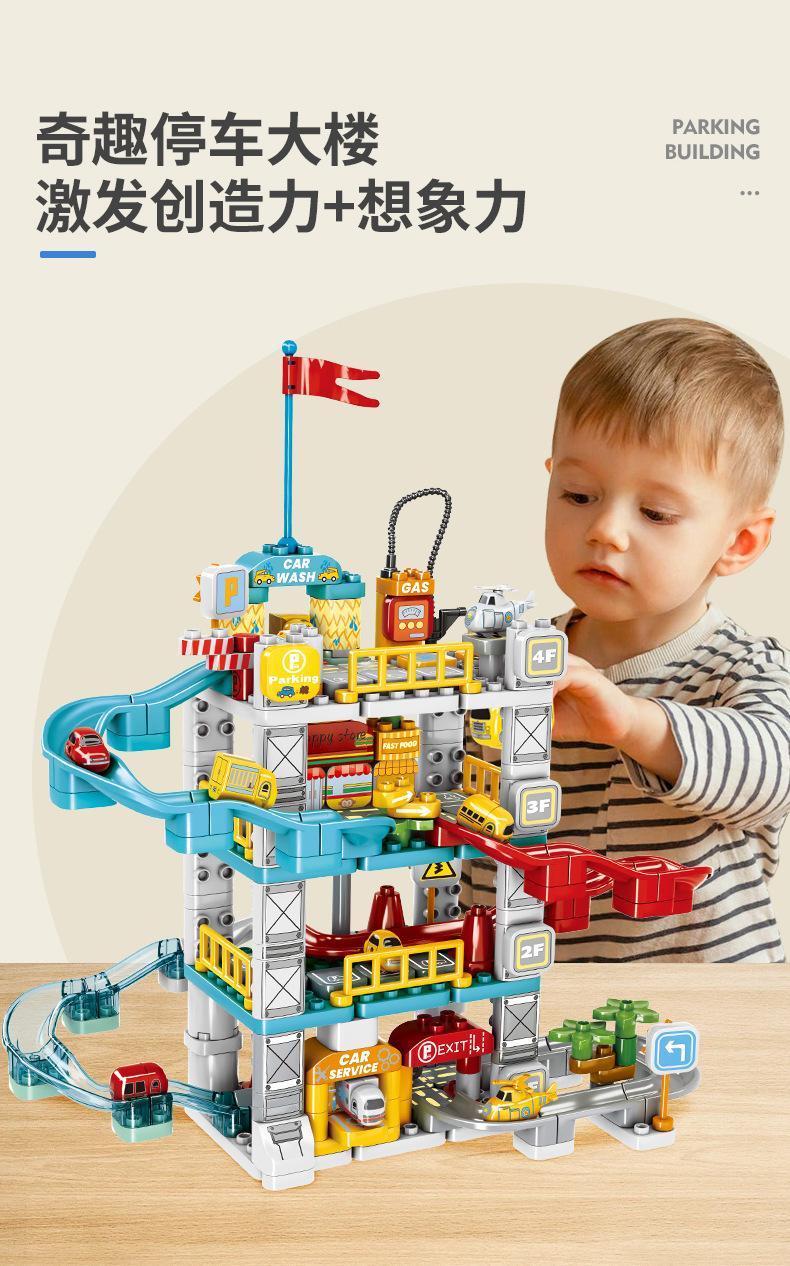 Rompecabezas para niños 3-4 niños 6 años coche de ferrocarril eléctrico estacionamiento juguete construcción coche de aleación coche de policía de bomberos
