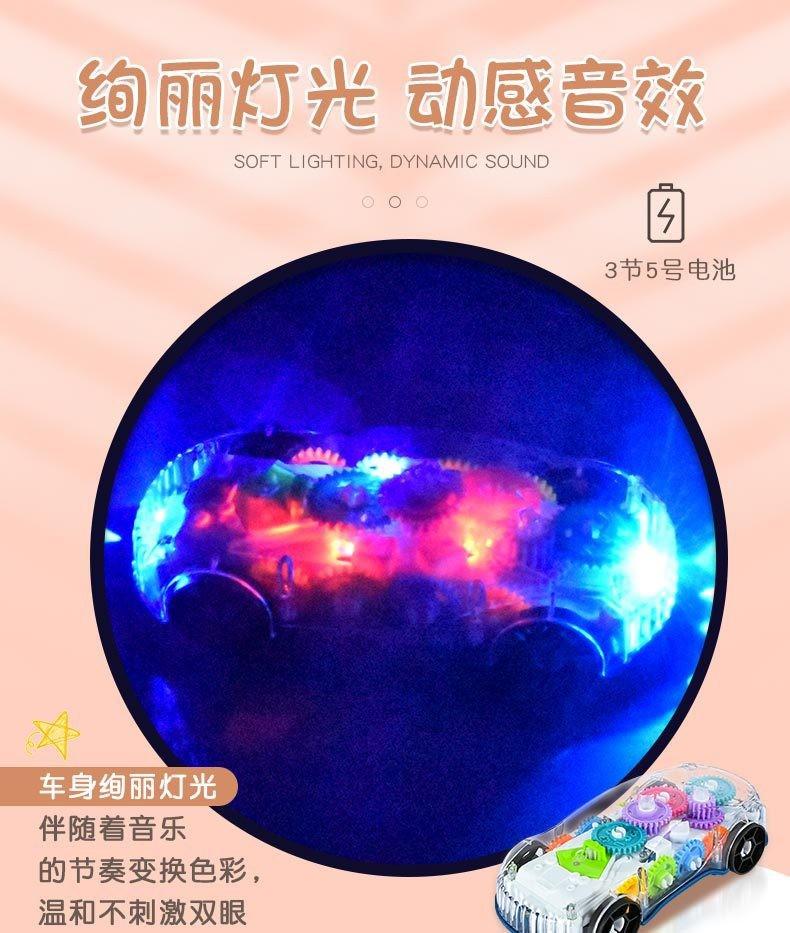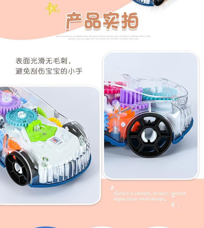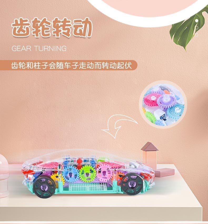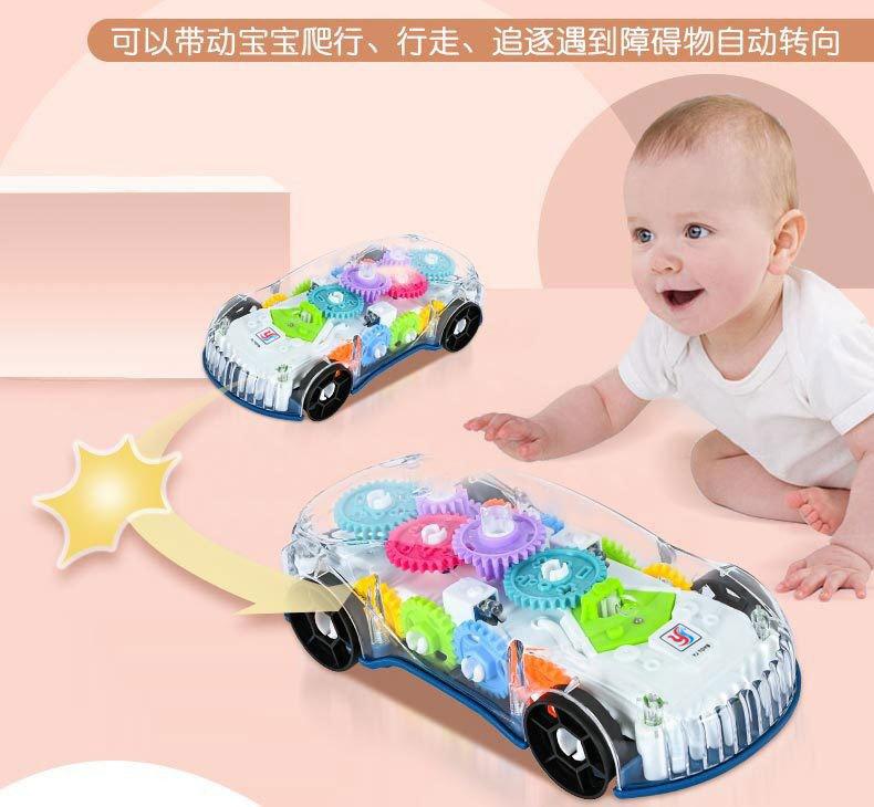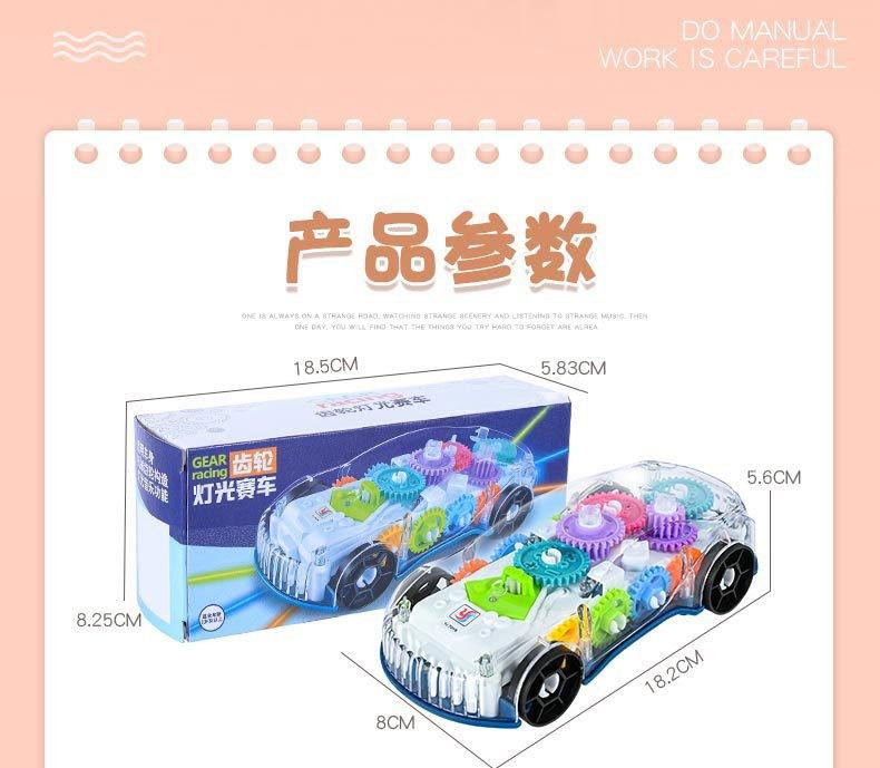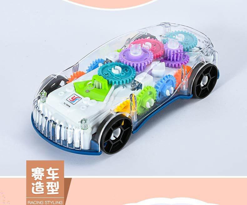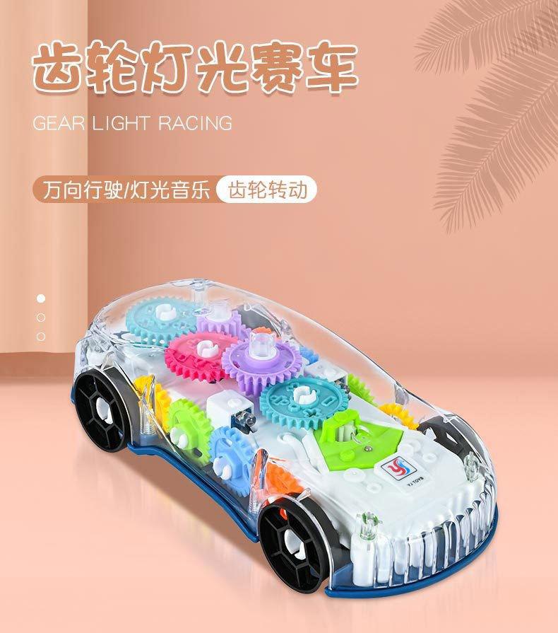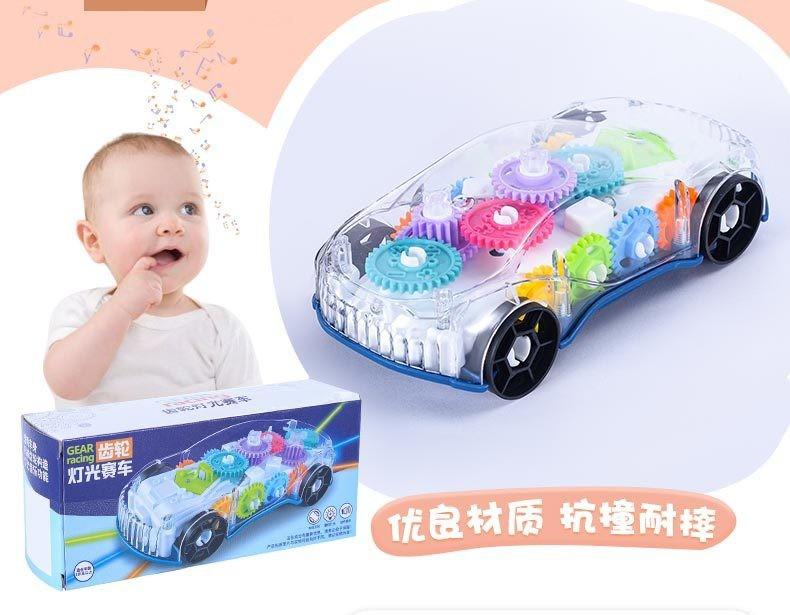 Coche de juguete eléctrico modelo de carreras de engranajes transparentes interactivo para padres e hijos, universal para caminar, con luz y música