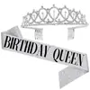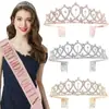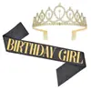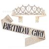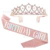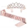 Set de banda para el hombro de fiesta de cumpleaños banda de etiqueta para la cumpleañera corona oro rosa oro polvo de tela banda para el hombro