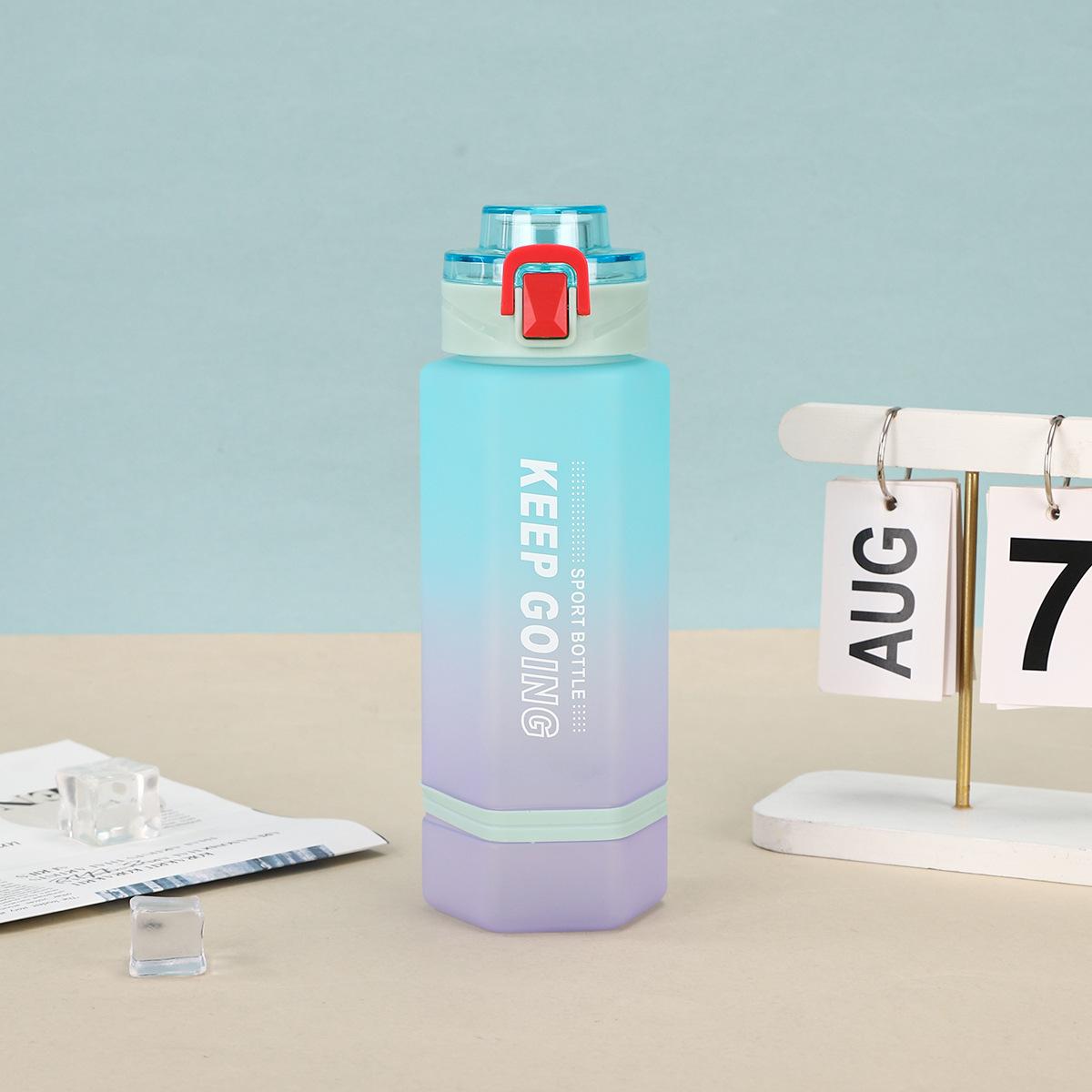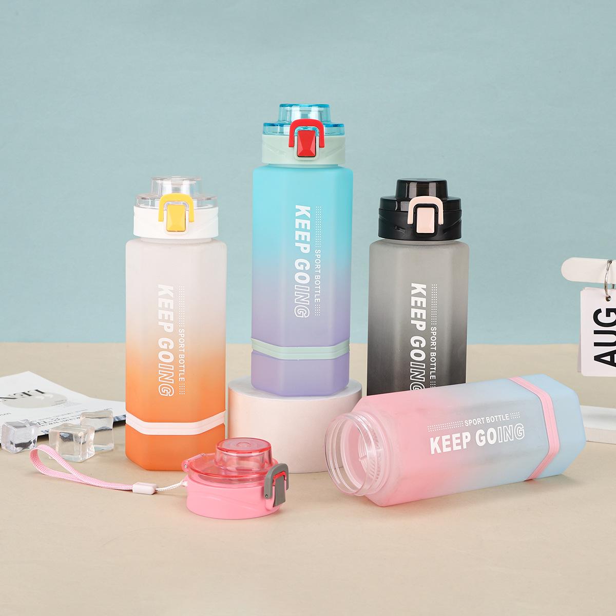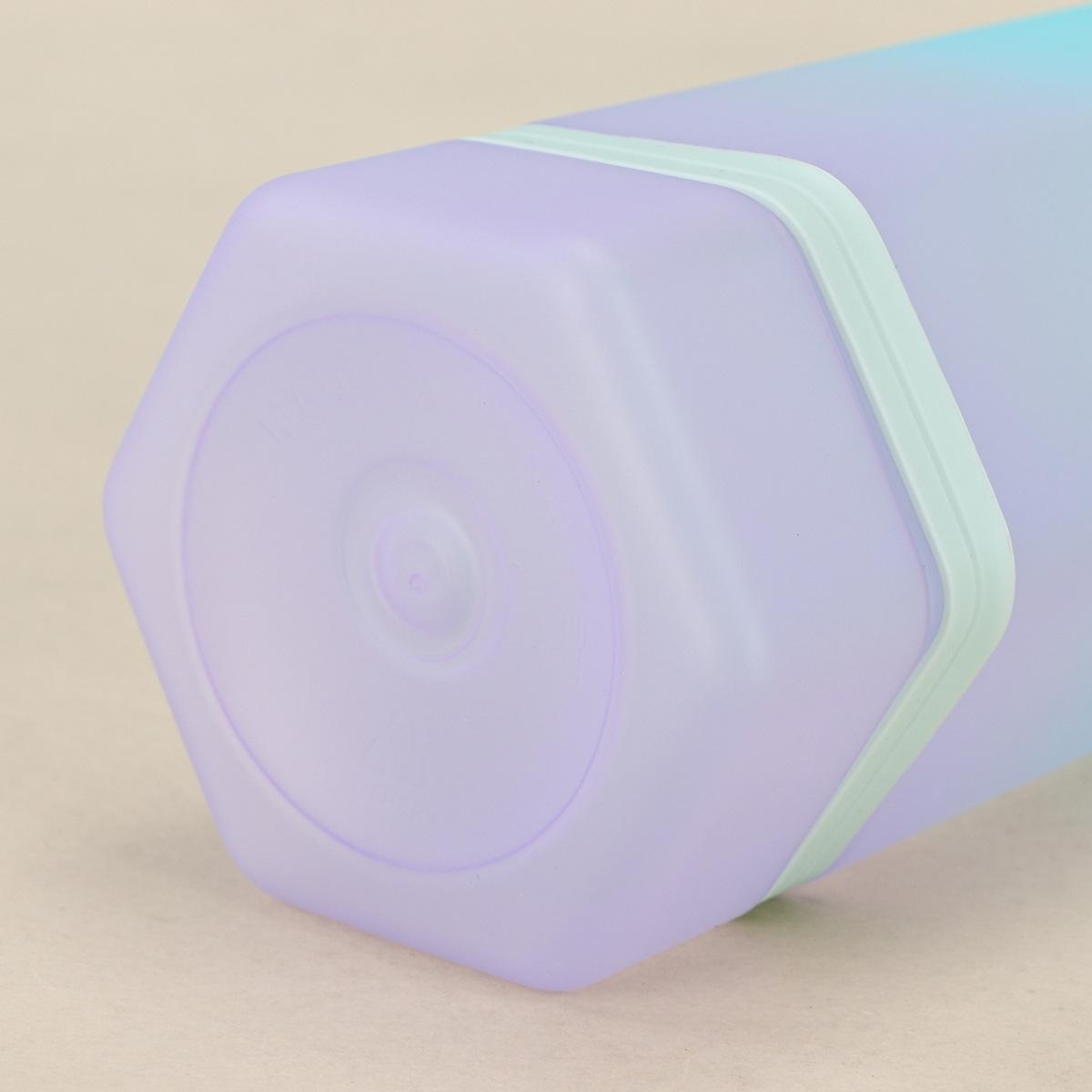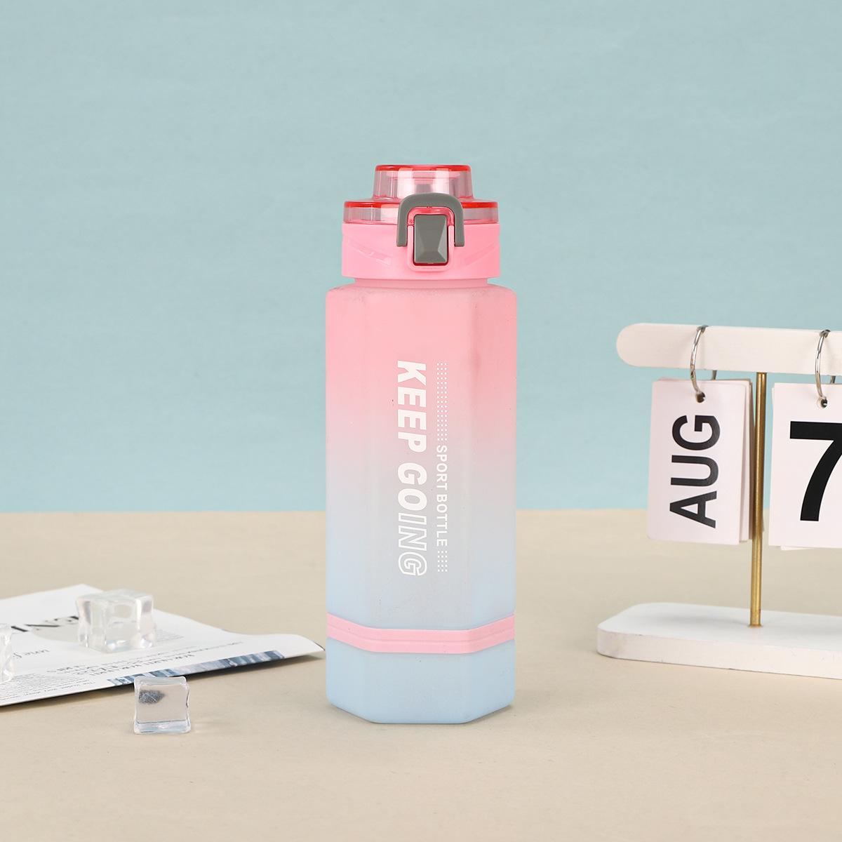 Vaso de Plástico Hexagonal con Degradado de Doble Color, Botella Deportiva de Gran Capacidad, Vaso Portátil para Bebida Directa con Tapa Bala con Asa
