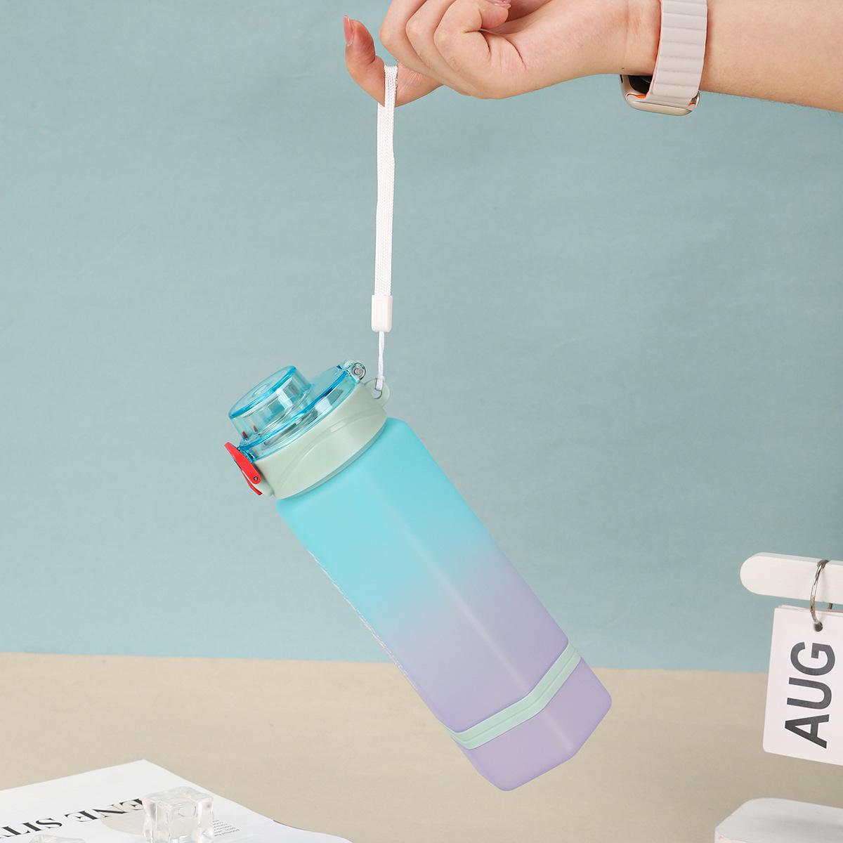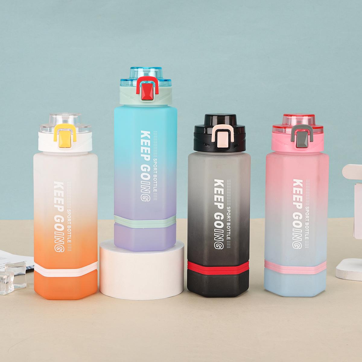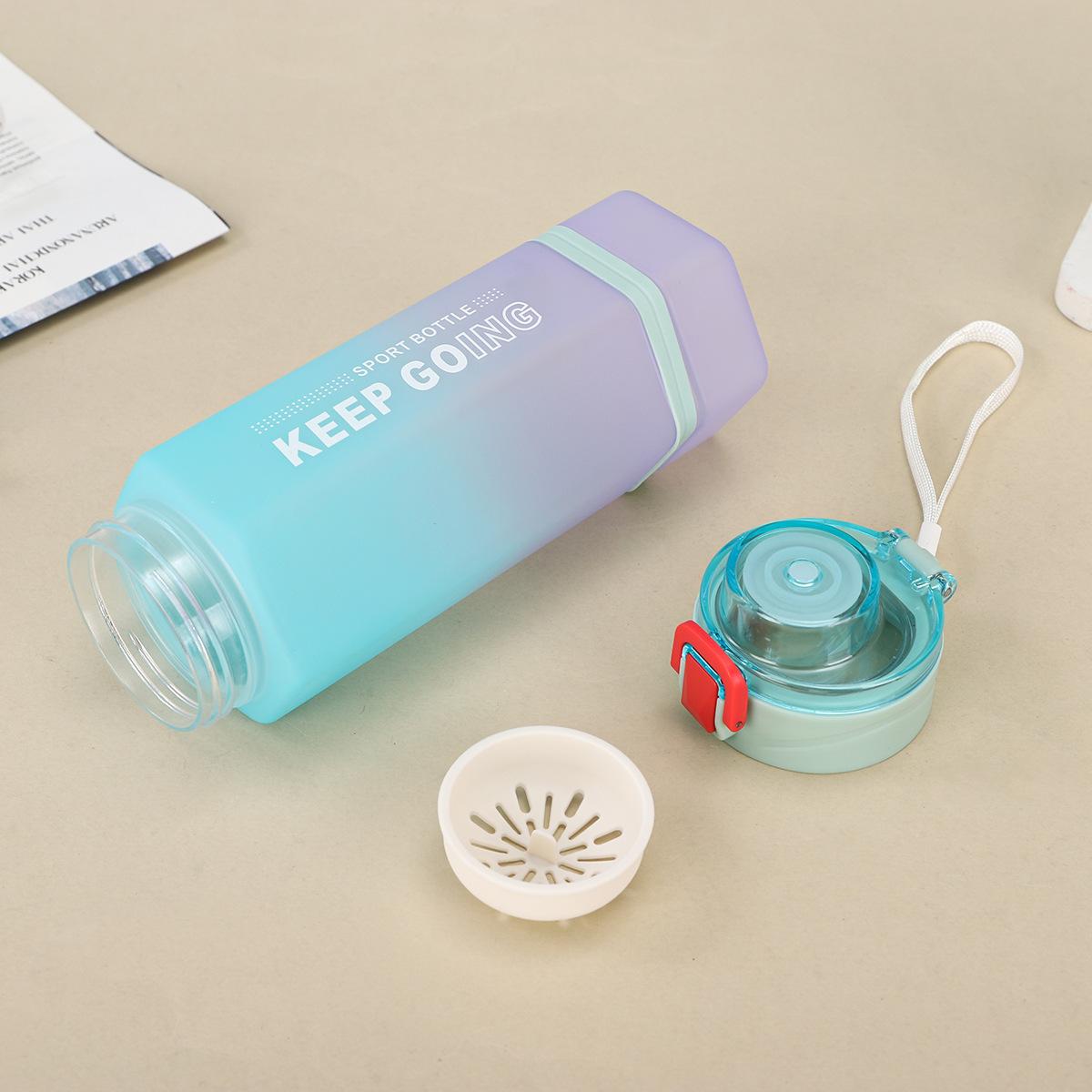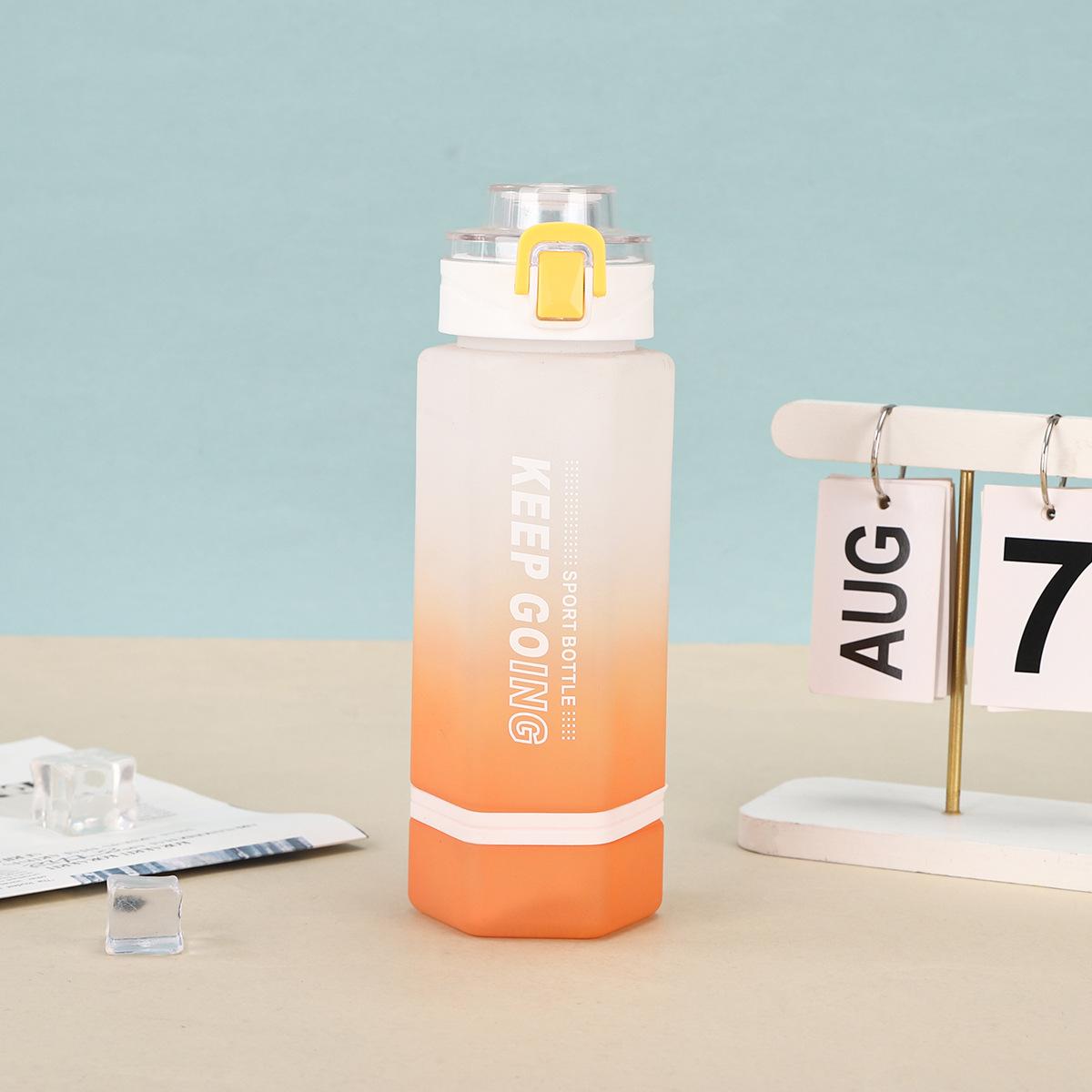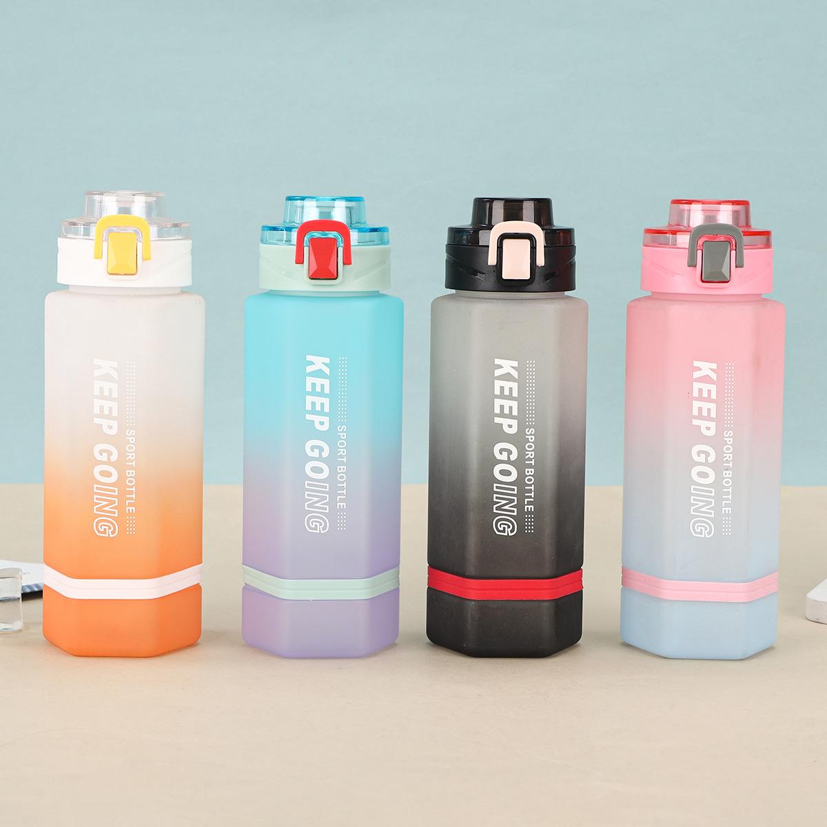 Vaso de Plástico Hexagonal con Degradado de Doble Color, Botella Deportiva de Gran Capacidad, Vaso Portátil para Bebida Directa con Tapa Bala con Asa