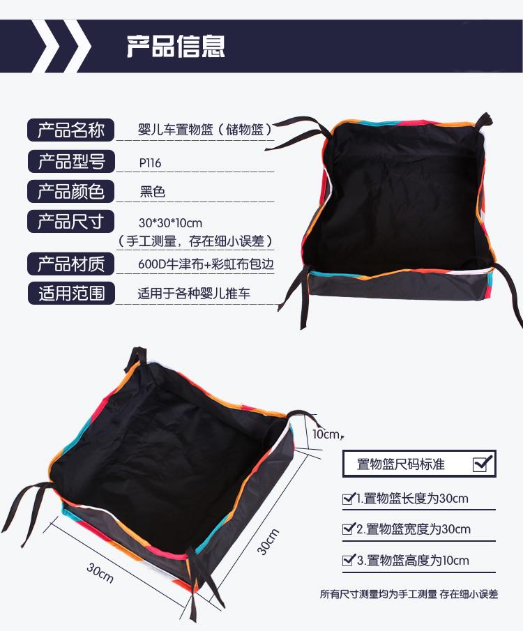 La cesta de almacenamiento para cochecito de bebé mide 30 cm de largo y ancho y aproximadamente 10 cm de alto. La tasa de universalidad es del 99%. Si la cantidad es grande, también se puede personalizar según su coche.