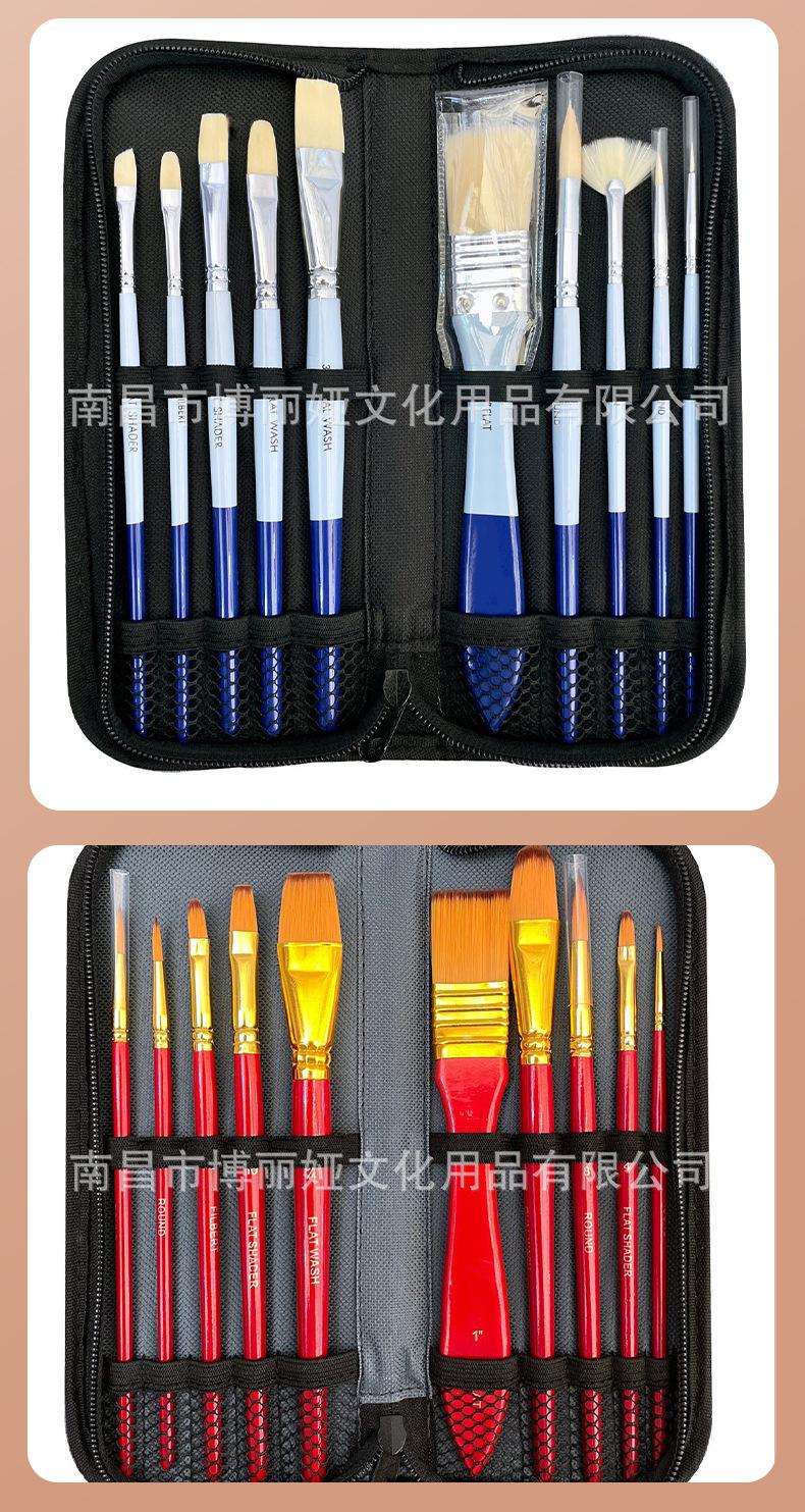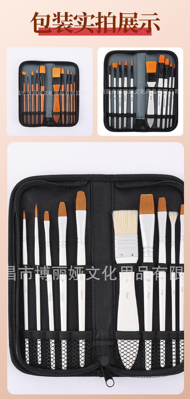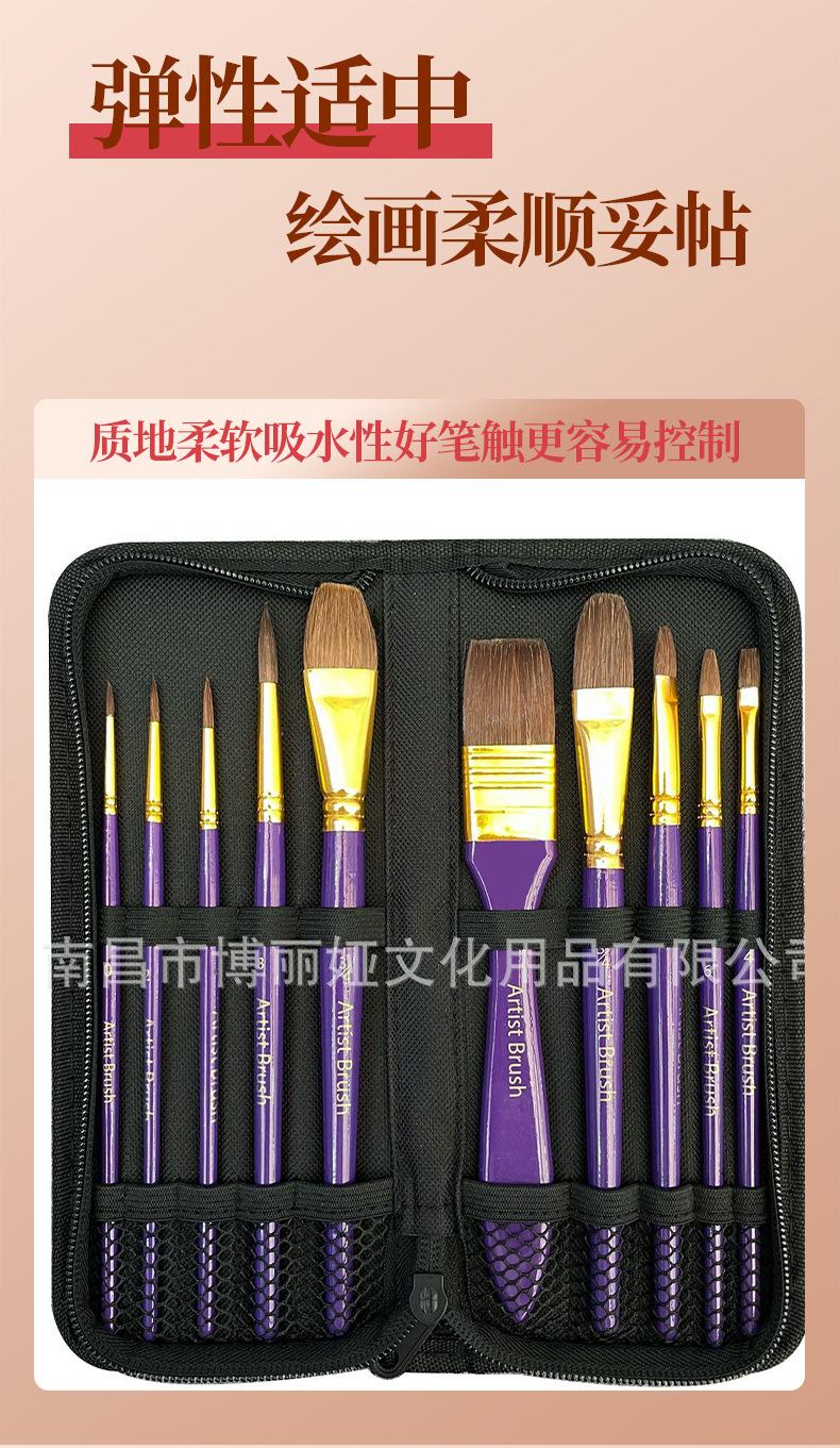 Compra Pincel de acuarela de lana de nailon de 10 bordes con pincel de tablero, bolsa de lona, pincel para traje, pintura artística, pincel de nailon para óleo al por mayor en Joom.pro