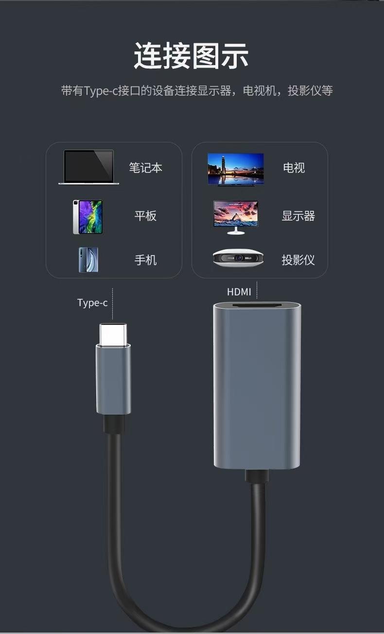 Convertidor C a HDMI al por mayor para computadora, teléfono móvil, pantalla externa HD 4K, misma pantalla
