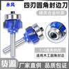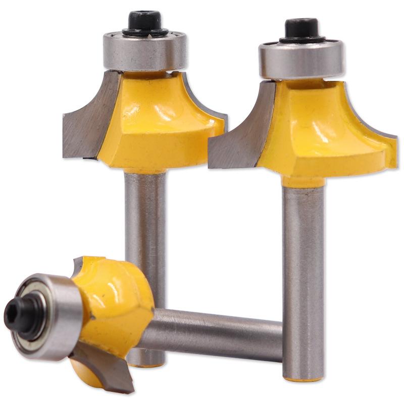 Juego de cuatro piezas de cuchillo de esquina redondeada con mango de 1/4 Cortador de fresado para carpintería Cuchillo para biselar Cuchillo de esquina R Cabezal de máquina de recorte de aleación