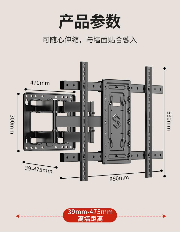 Soporte de TV Telescópico Plegable Mejorado Engrosado para Pantallas Grandes TV Acero Laminado en Frío Colgador de Pared Incorporado Colgador Universal Giratorio