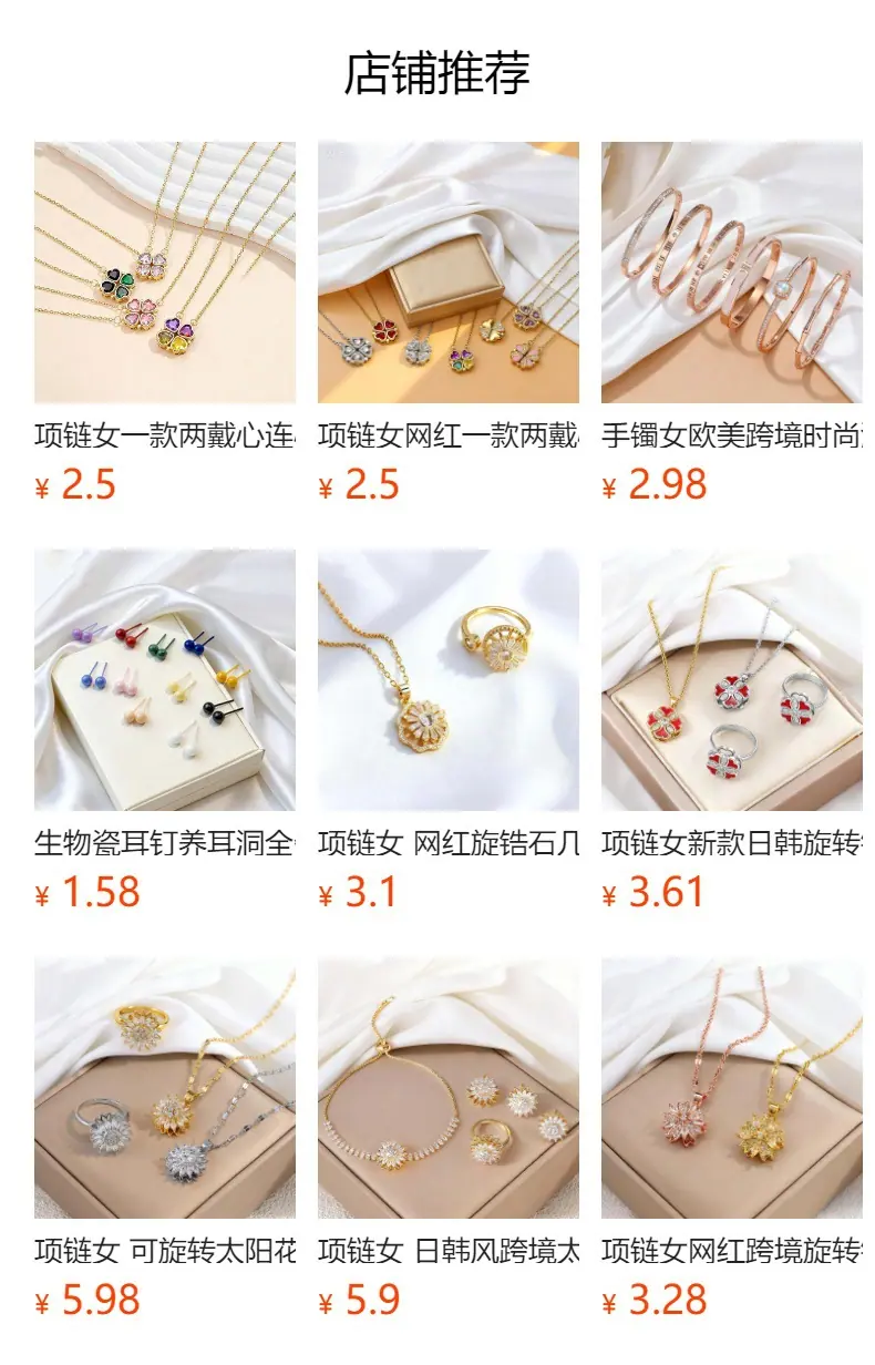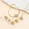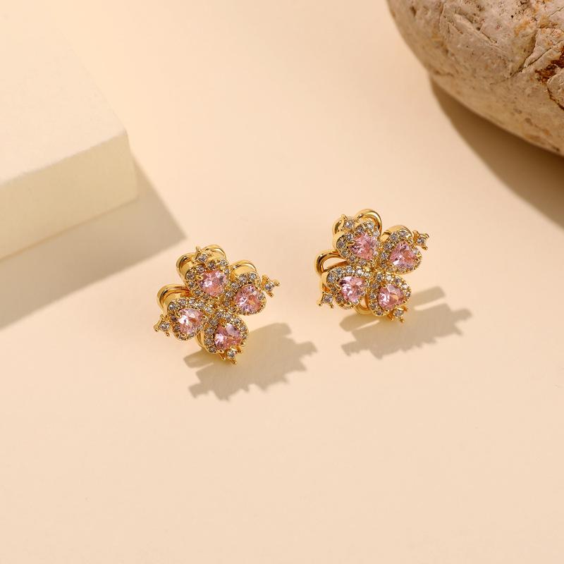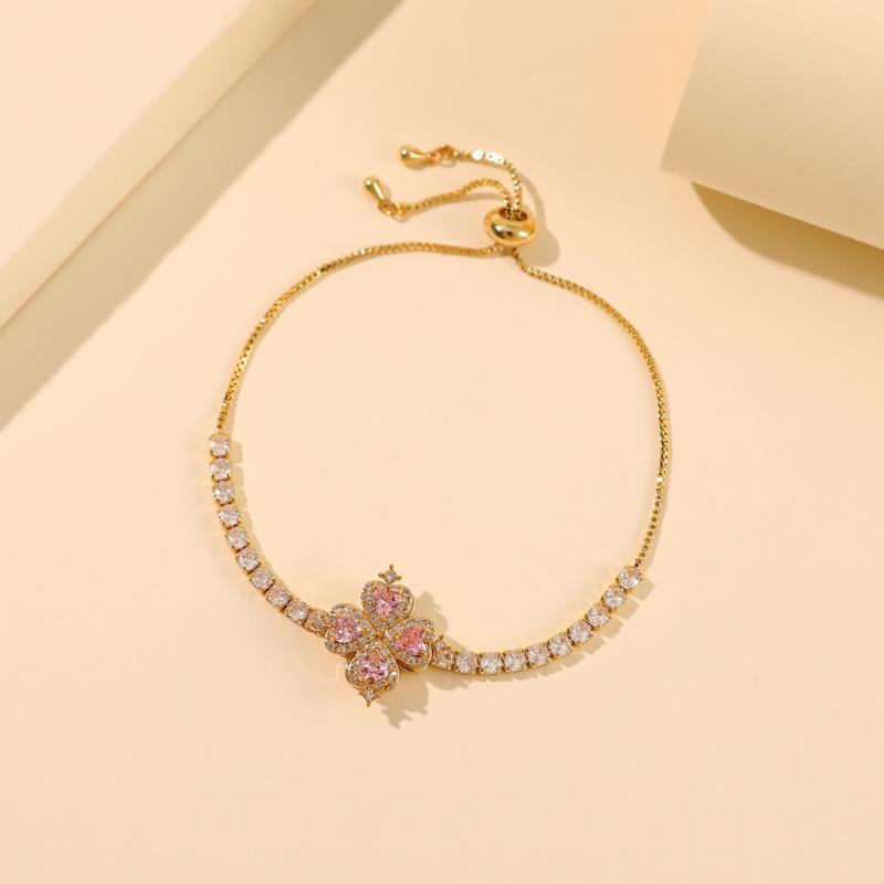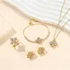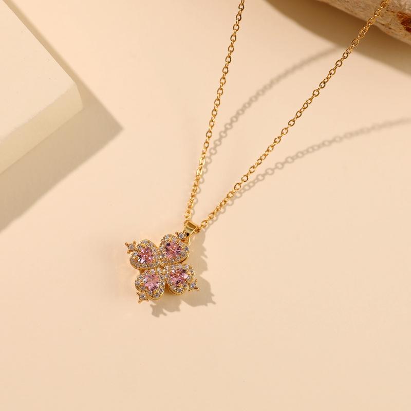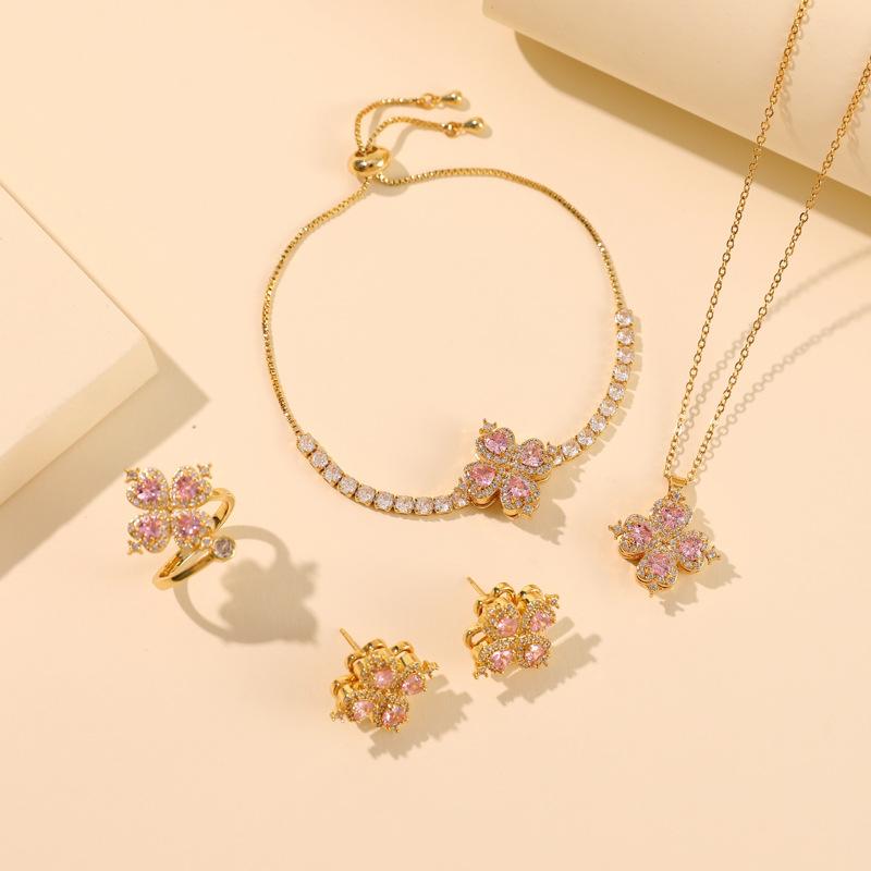 Collar para mujer con diseño de flor de cuatro hojas rosa transfronteriza, circonita, pendientes giratorios de nicho, anillo de corazón de melocotón, pulsera, collar de traje.