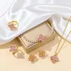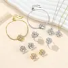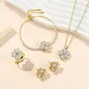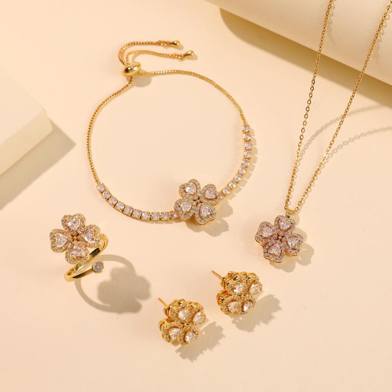 Collar para Mujer, Zircón Blanco Transfronterizo en Forma de Corazón, Aretes Giratorios de Nicho de Moda, Anillo de Corazón de Durazno, Set de Collar y Pulsera