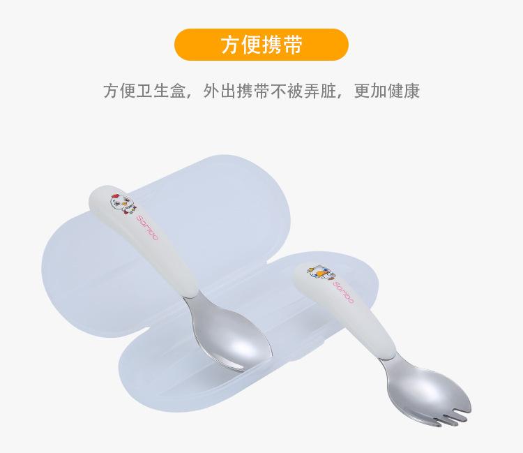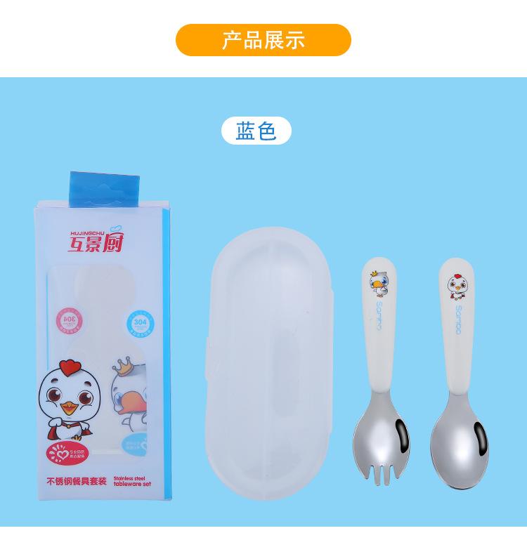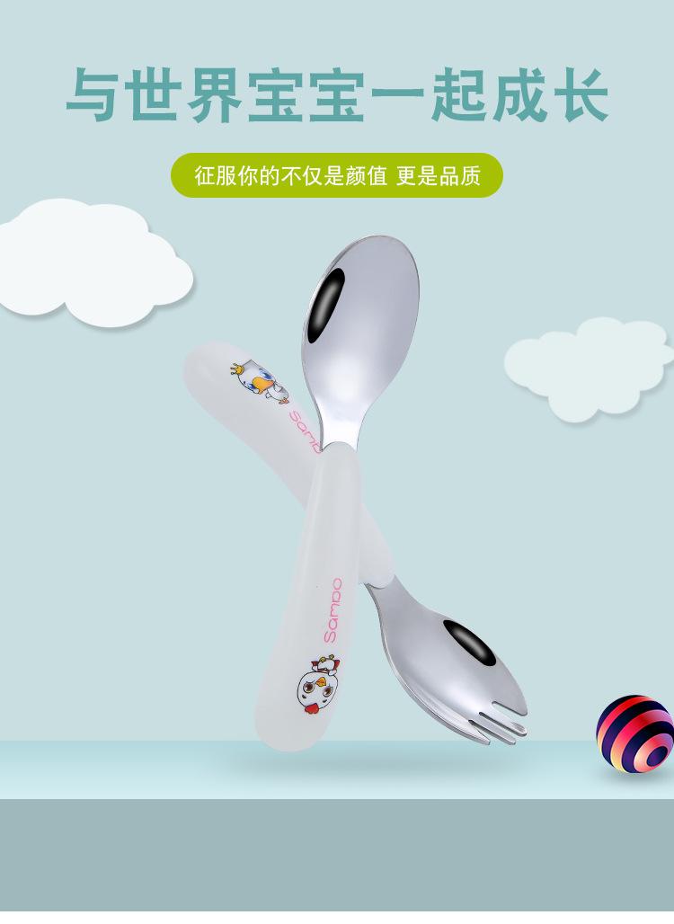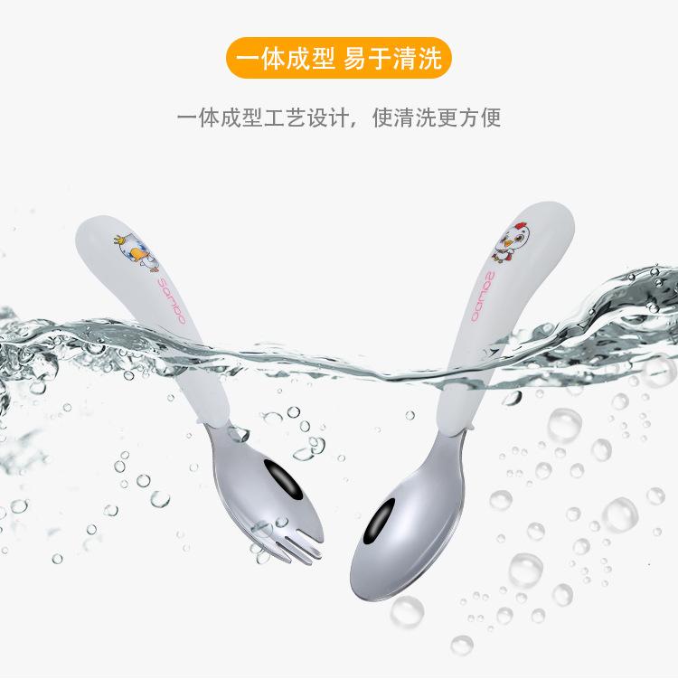 Acero inoxidable 304 Cuchara para bebé y niño Tenedor Lindo Dibujo animado Bebé Madre e hijo Regalo de jardín de infantes Juego de vajilla