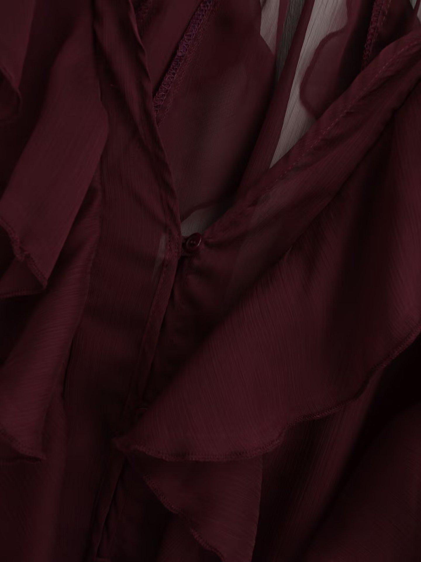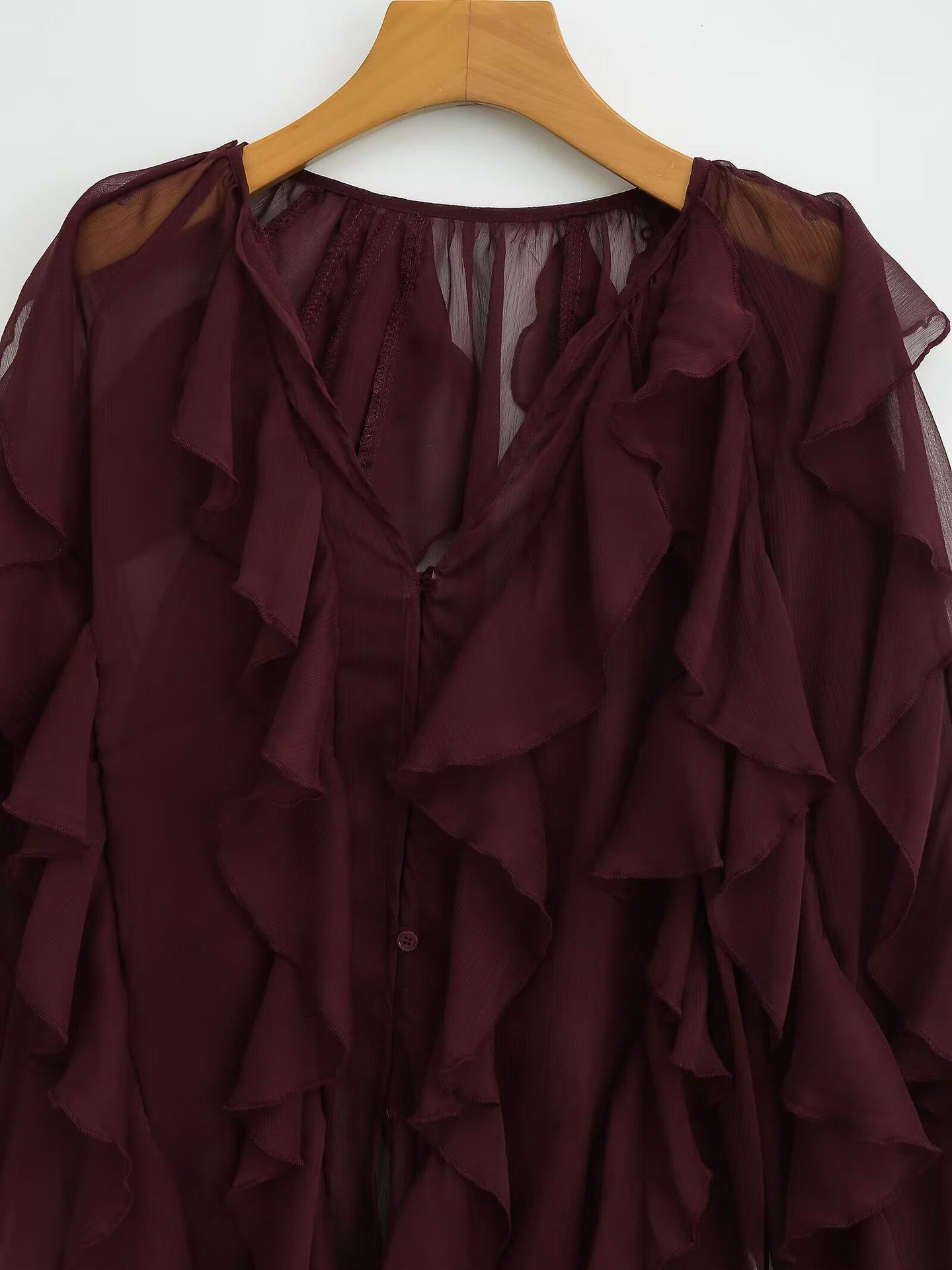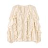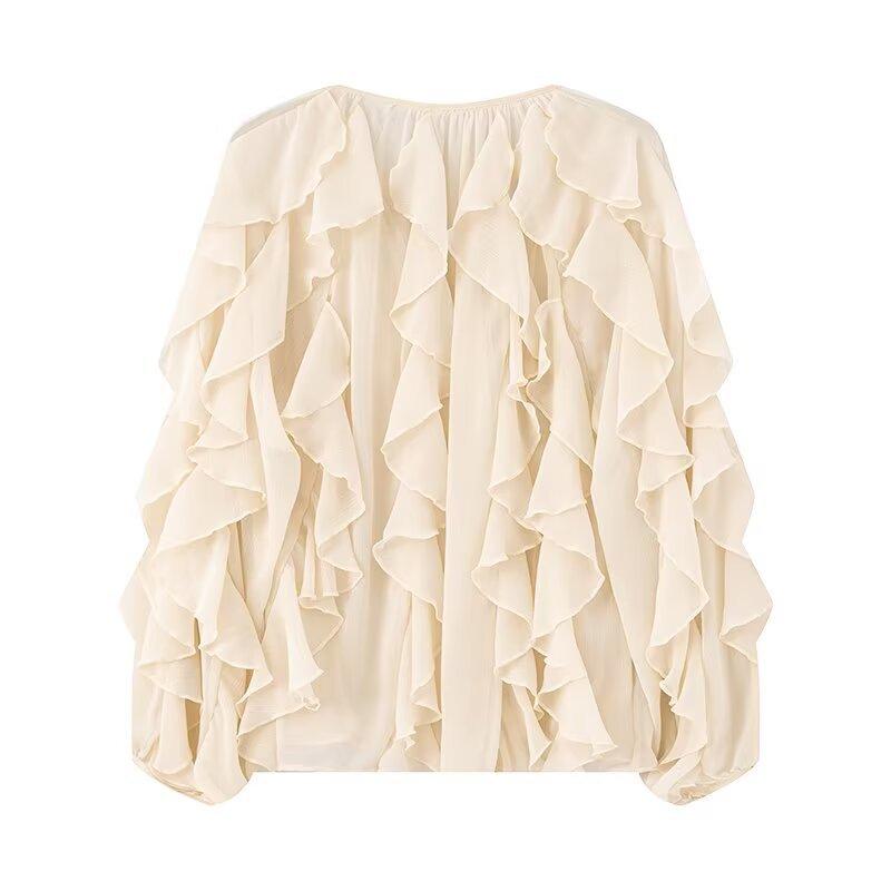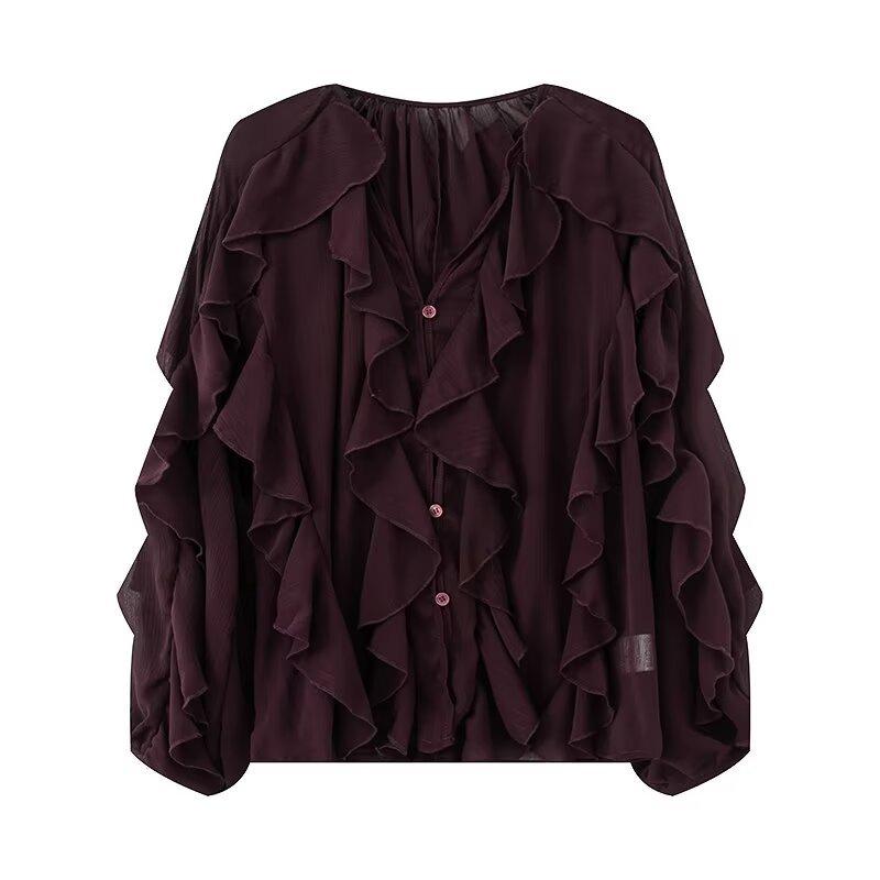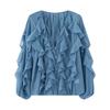 2025 primavera nuevo estilo europeo y americano transfronterizo moda femenina laminado decorativo cuello en V manga larga camisa w034 25035