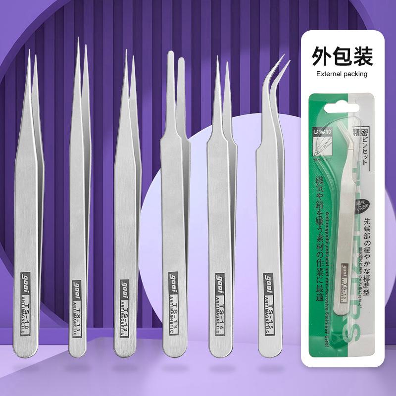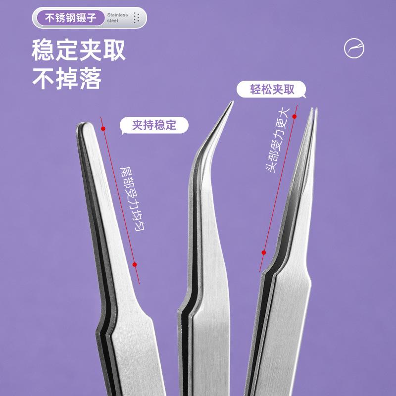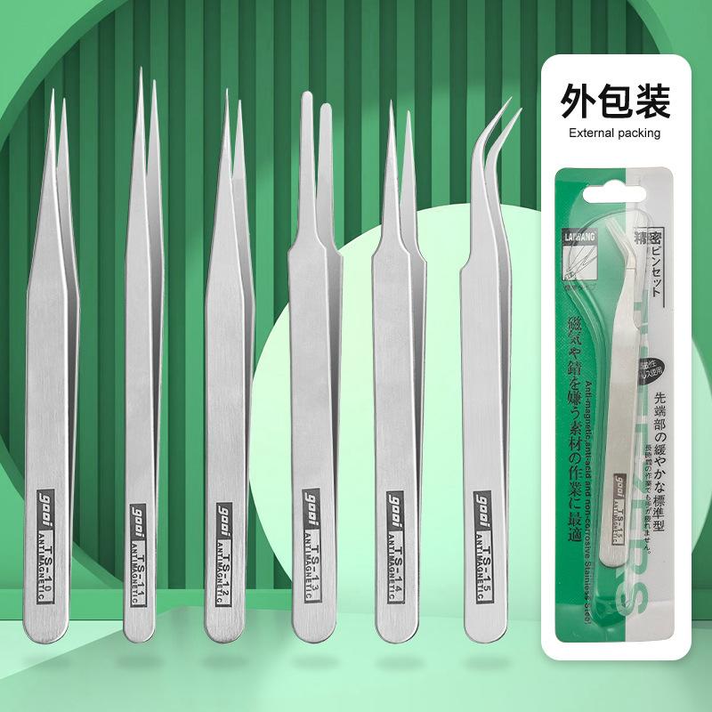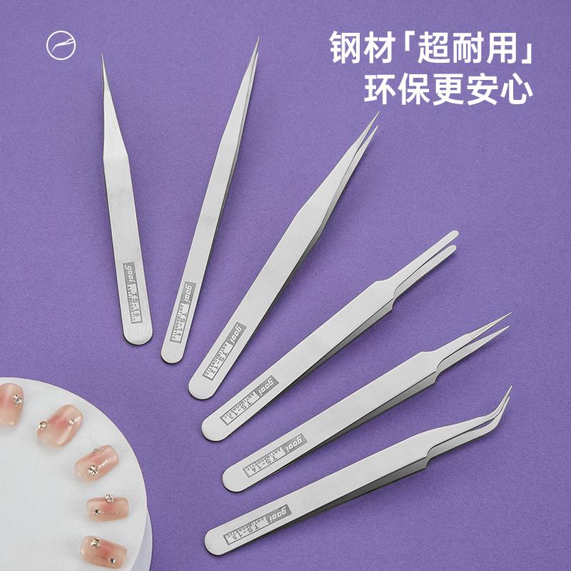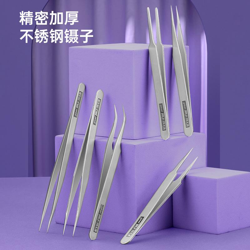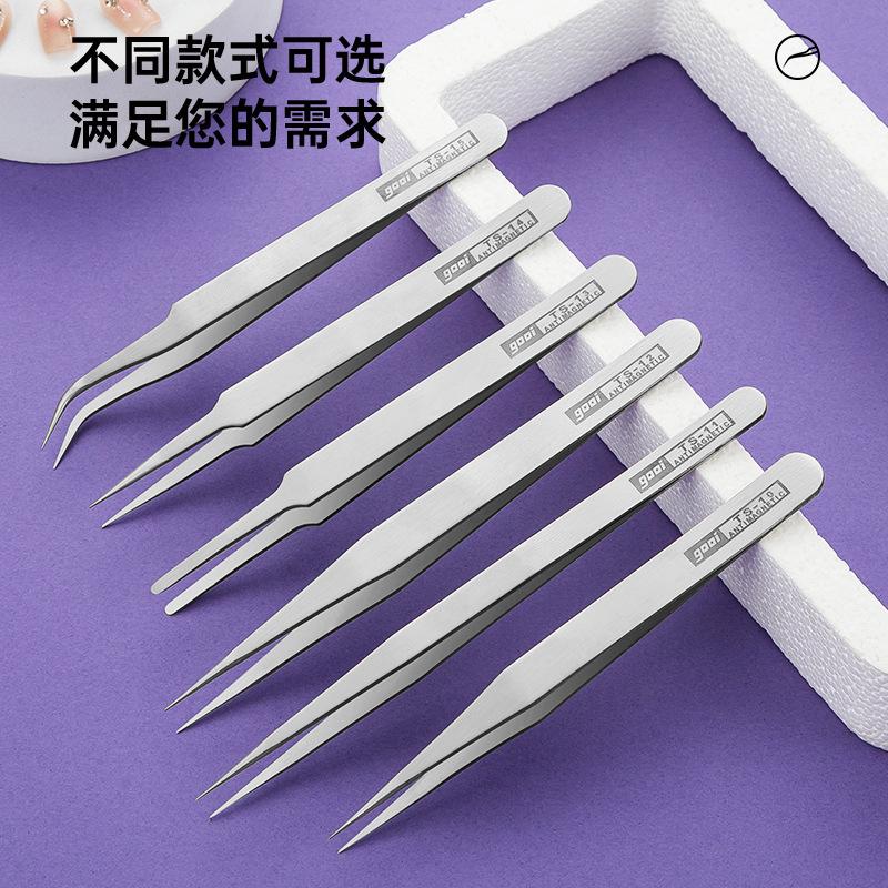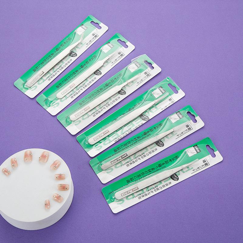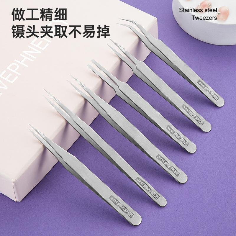 Pestañas Postizas Coloridas Pinzas Clip de Pluma Dorada Plateadas Engrosadas Pinzas gooi-15Z Cabeza Recta Punta de Codo Empaque de Tarjeta de Succión