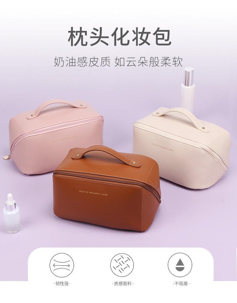 Bolsa de cosméticos transfronteriza de Amazon, bolsa de lavado de gran valor, bolsa de almacenamiento de viaje de gran capacidad, bolsa de cosméticos portátil con forma de almohada.