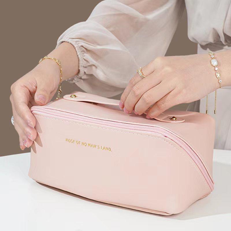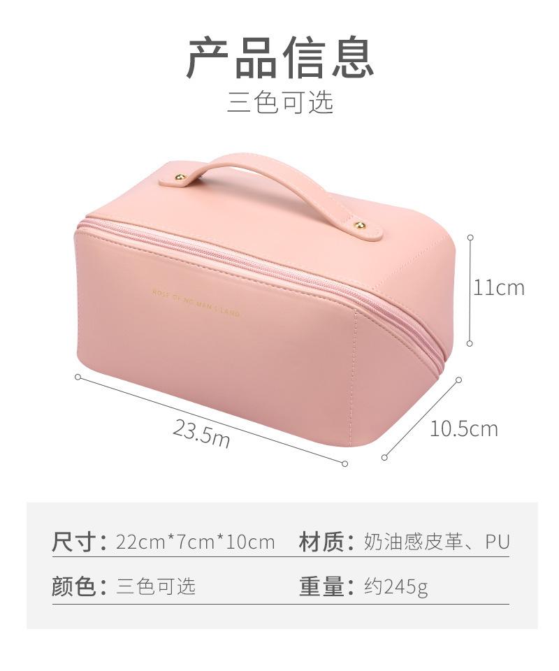 Pu cosmetic bag hit style toiletry bag large capacity travel cosmetics bag portable pure color open lid satchel bag wholesale