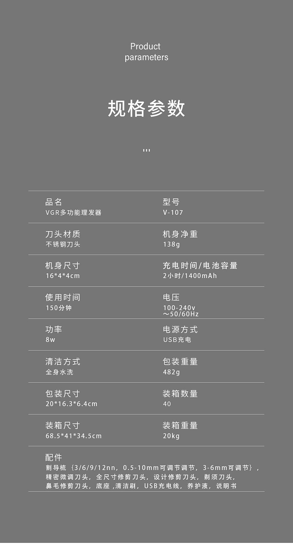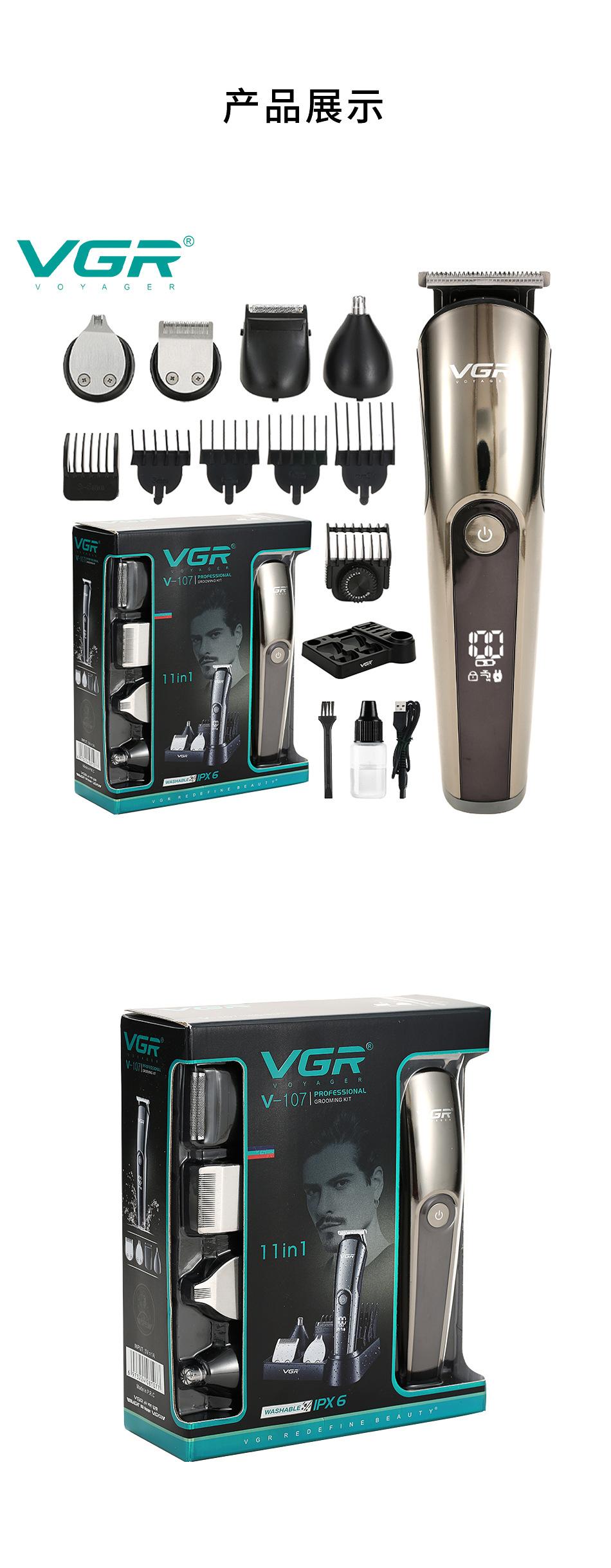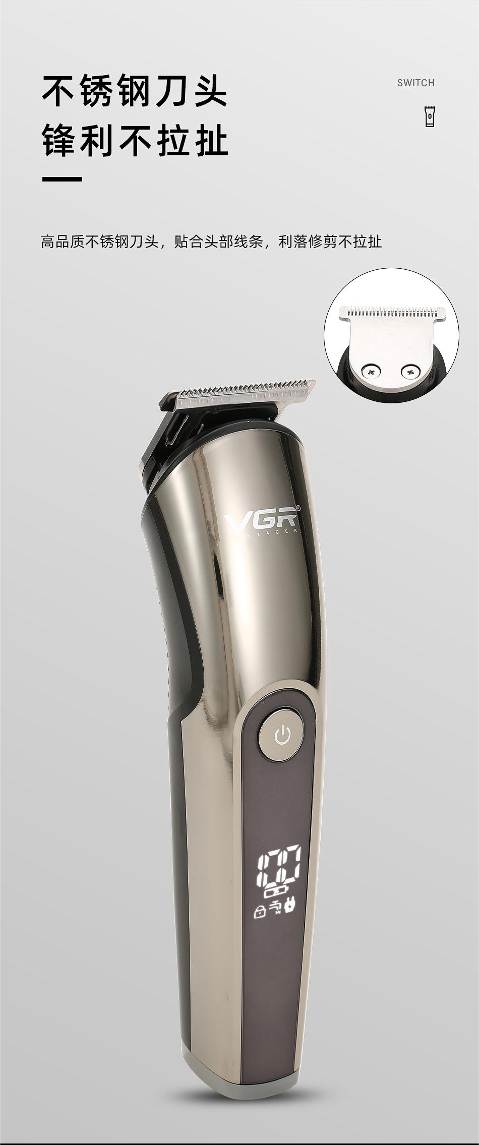 Vgr107 Cortadora de Cabello Transfronteriza Pantalla Digital LCD Lavable Hoja Multifuncional Tallado Cortadora Eléctrica Salón de Peluquería Cortadora Eléctrica