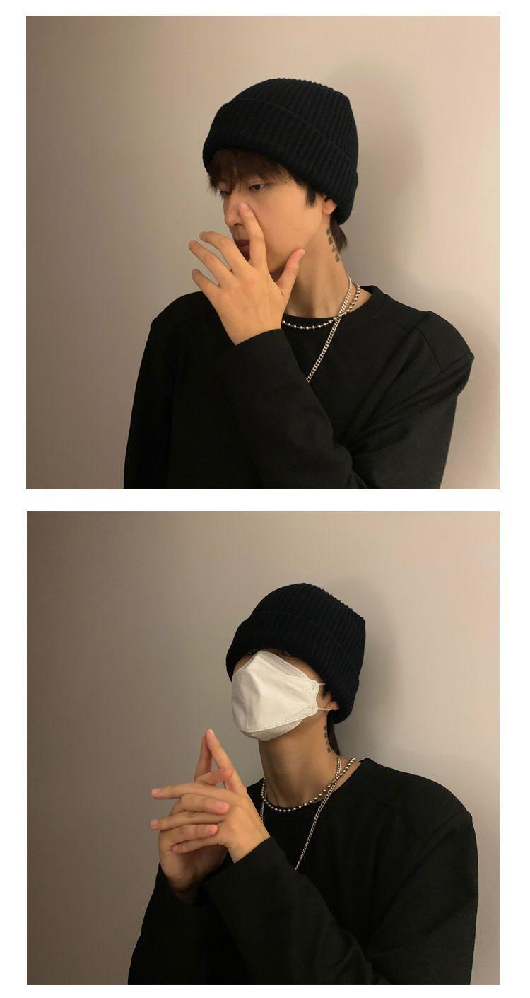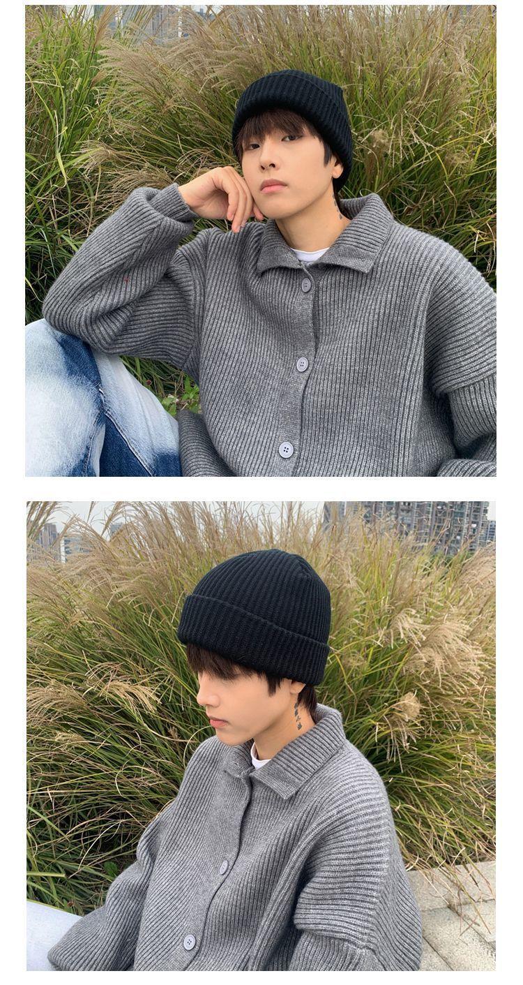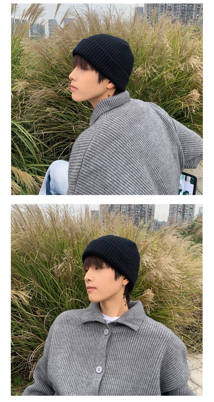 Gorro de hombre de otoño e invierno, moderno, de color liso, holgado, de punto, de lana gruesa, cálido, con protección para los oídos y para el frío.