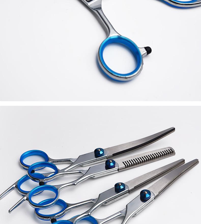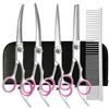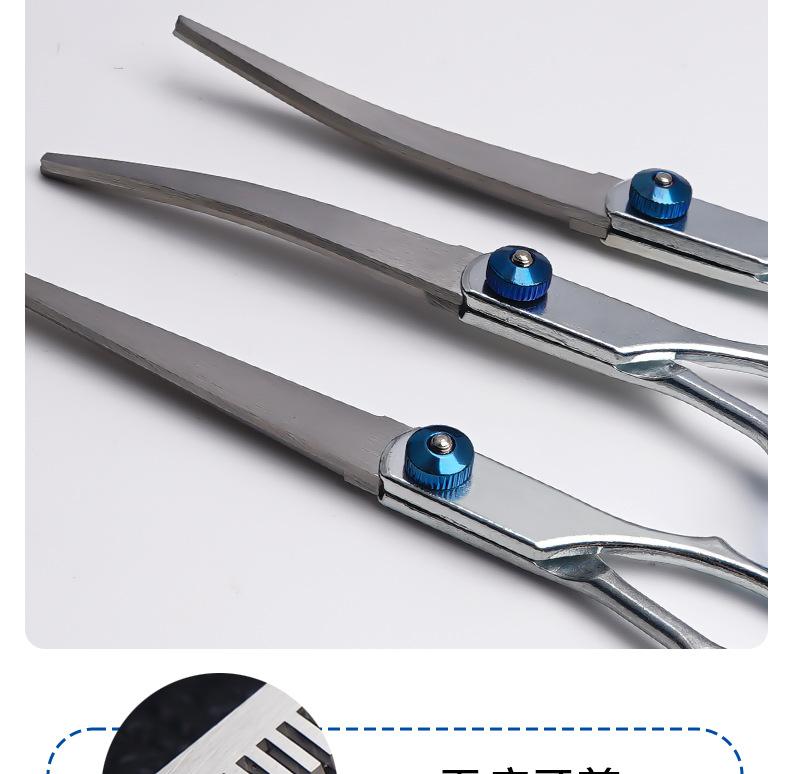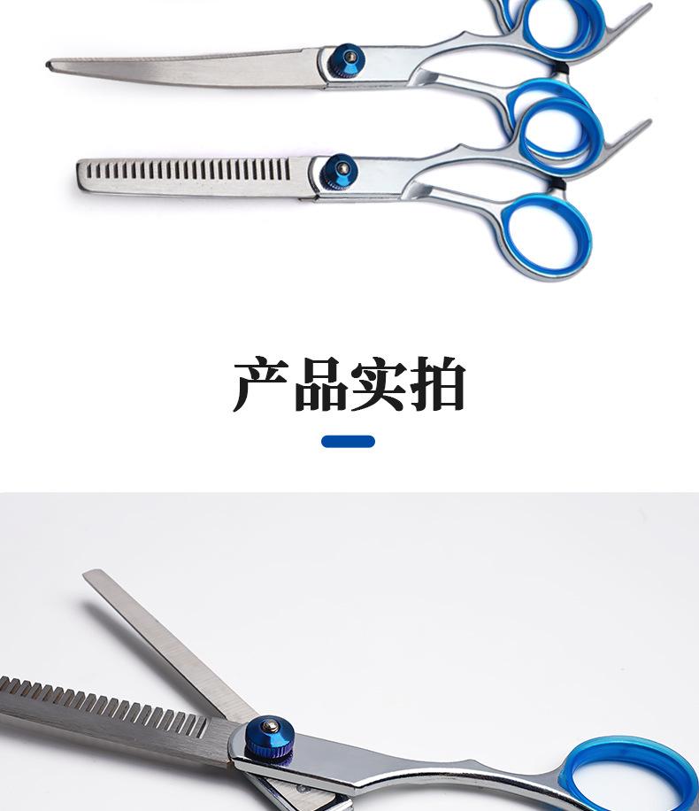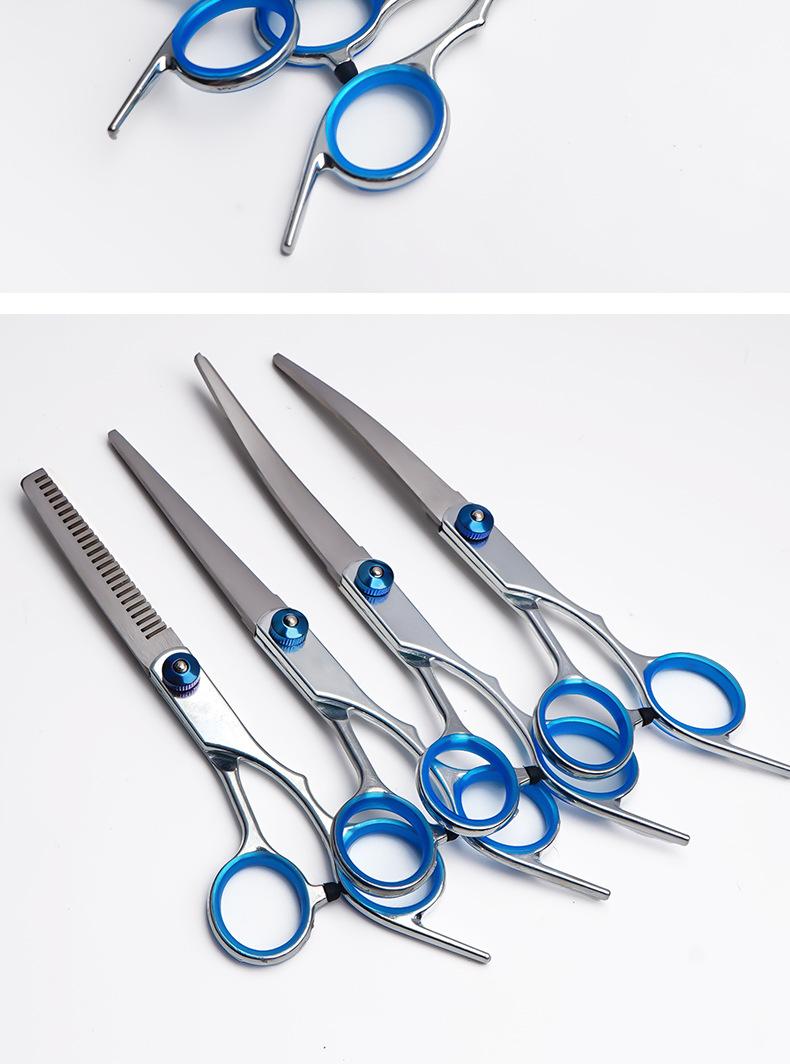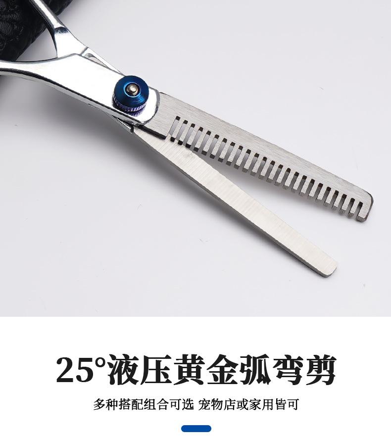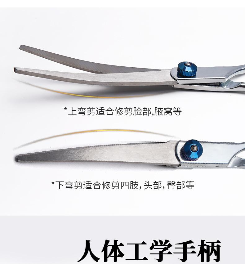 Tijeras de peluquero, tijeras de peluquero divididas, tijeras de dientes planos, tijeras curvas deformadas, traje para mascotas, herramientas de peluquería portátiles al por mayor