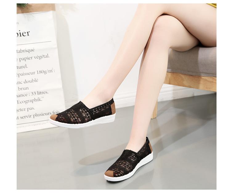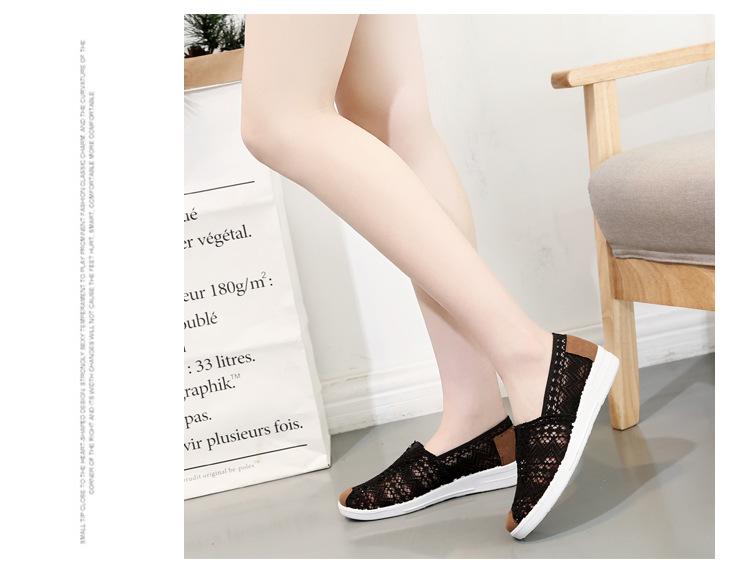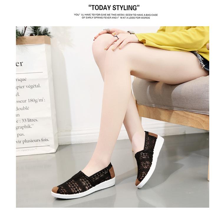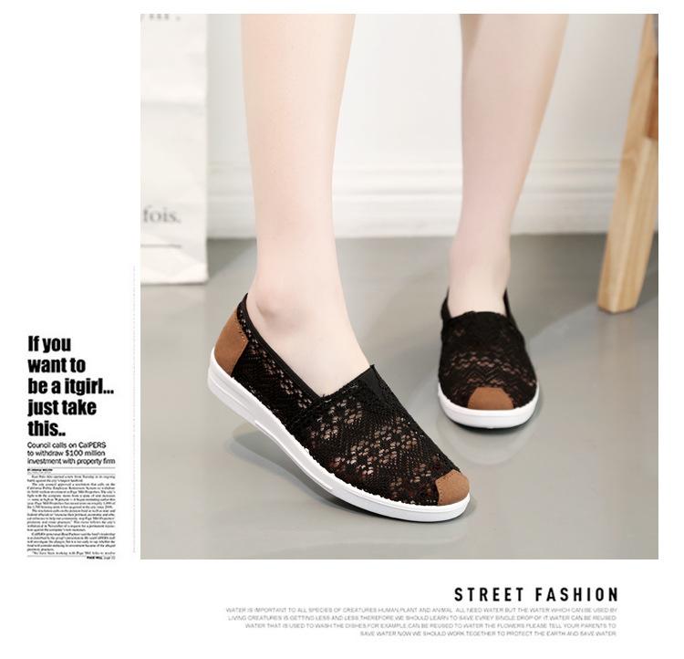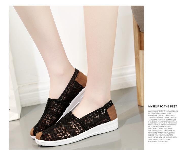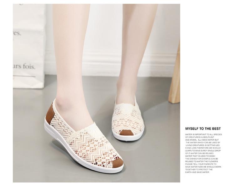 Zapatos de tela antiguos de Beijing para mujer, de malla, transpirables, de verano, con suela suave y hueca, para madre, zapatos de pescador, planos y casuales sin cordones.