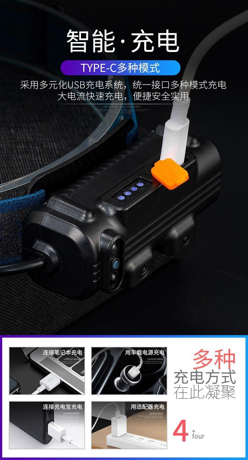 Nuevo faro de inducción COB para exteriores, luz de inundación transfronteriza, tipo C, carga para pesca al aire libre, luz LED potente, faro de trabajo