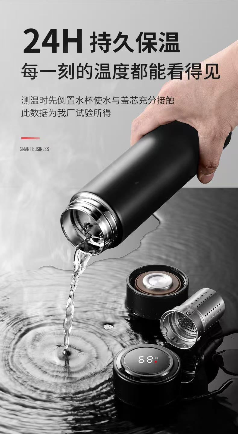 Termo inteligente con medición de temperatura LED táctil digital, taza de agua de acero inoxidable de alto valor de color, taza para separación de té