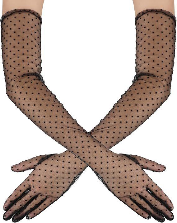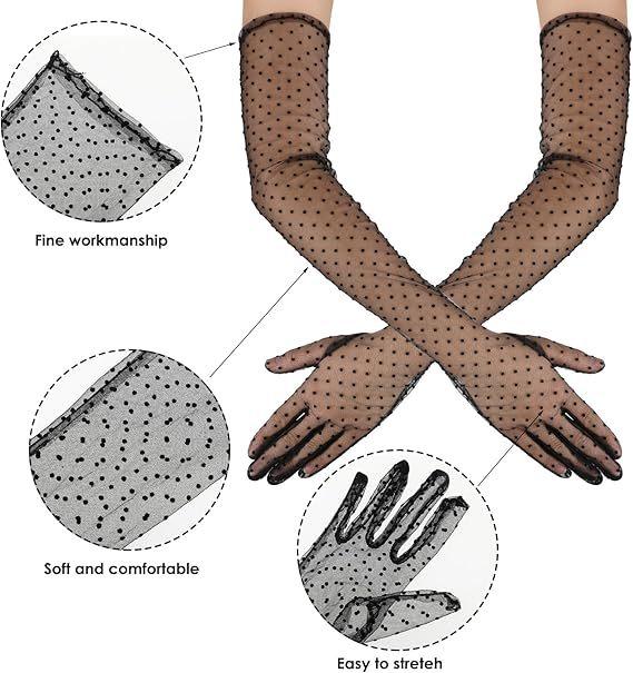 Guantes largos de malla de lunares de verano para mujer, divertidos y sexis, para fiestas, decoración navideña, guantes de novia.