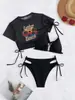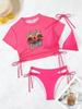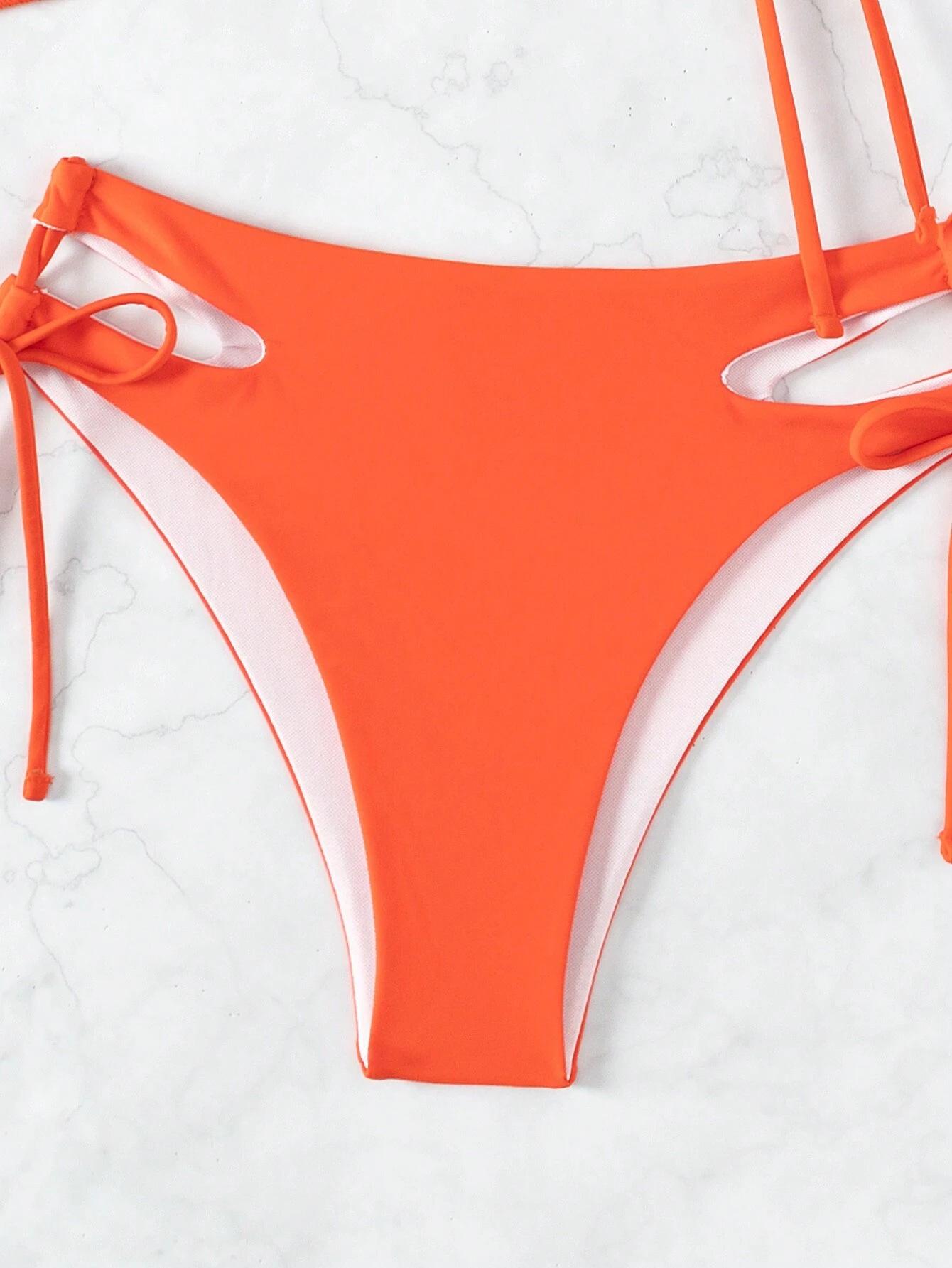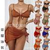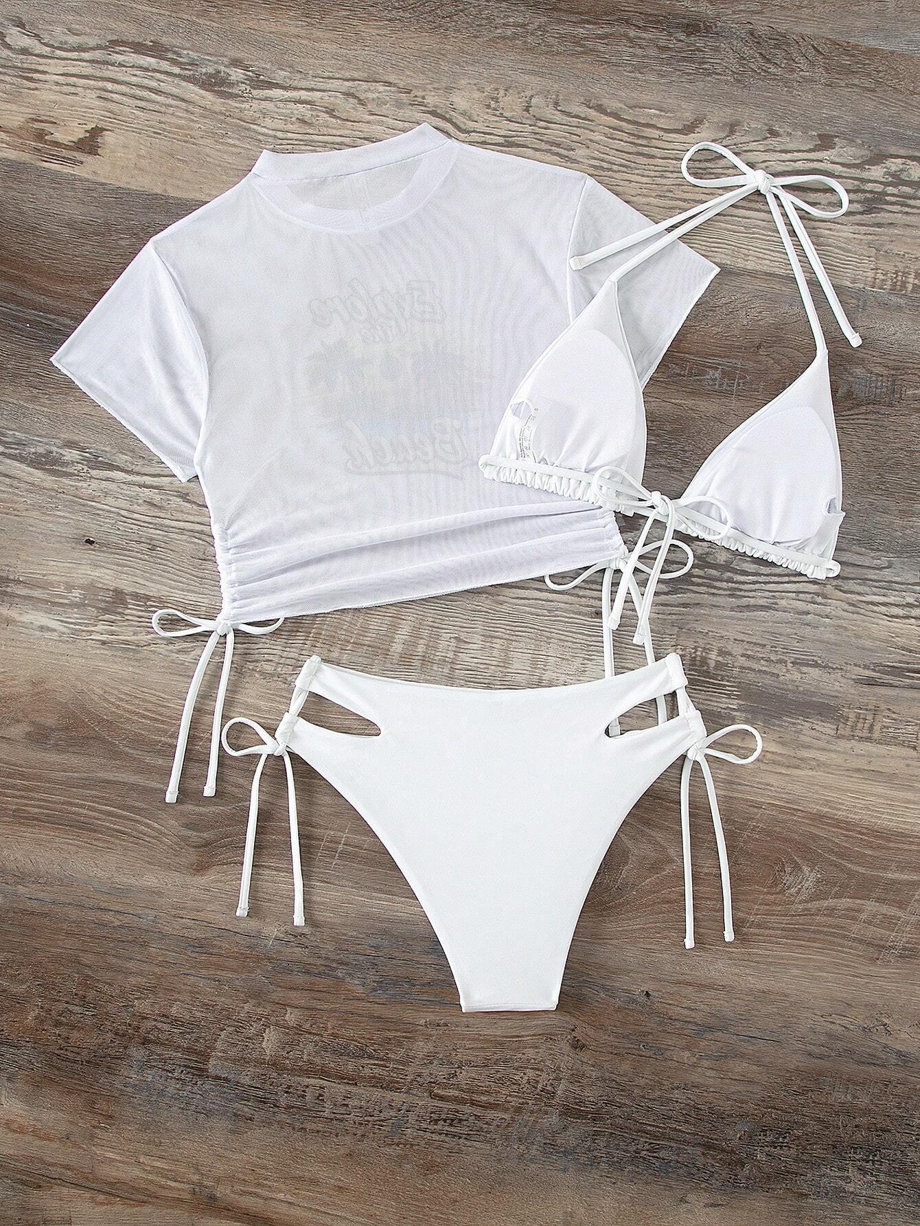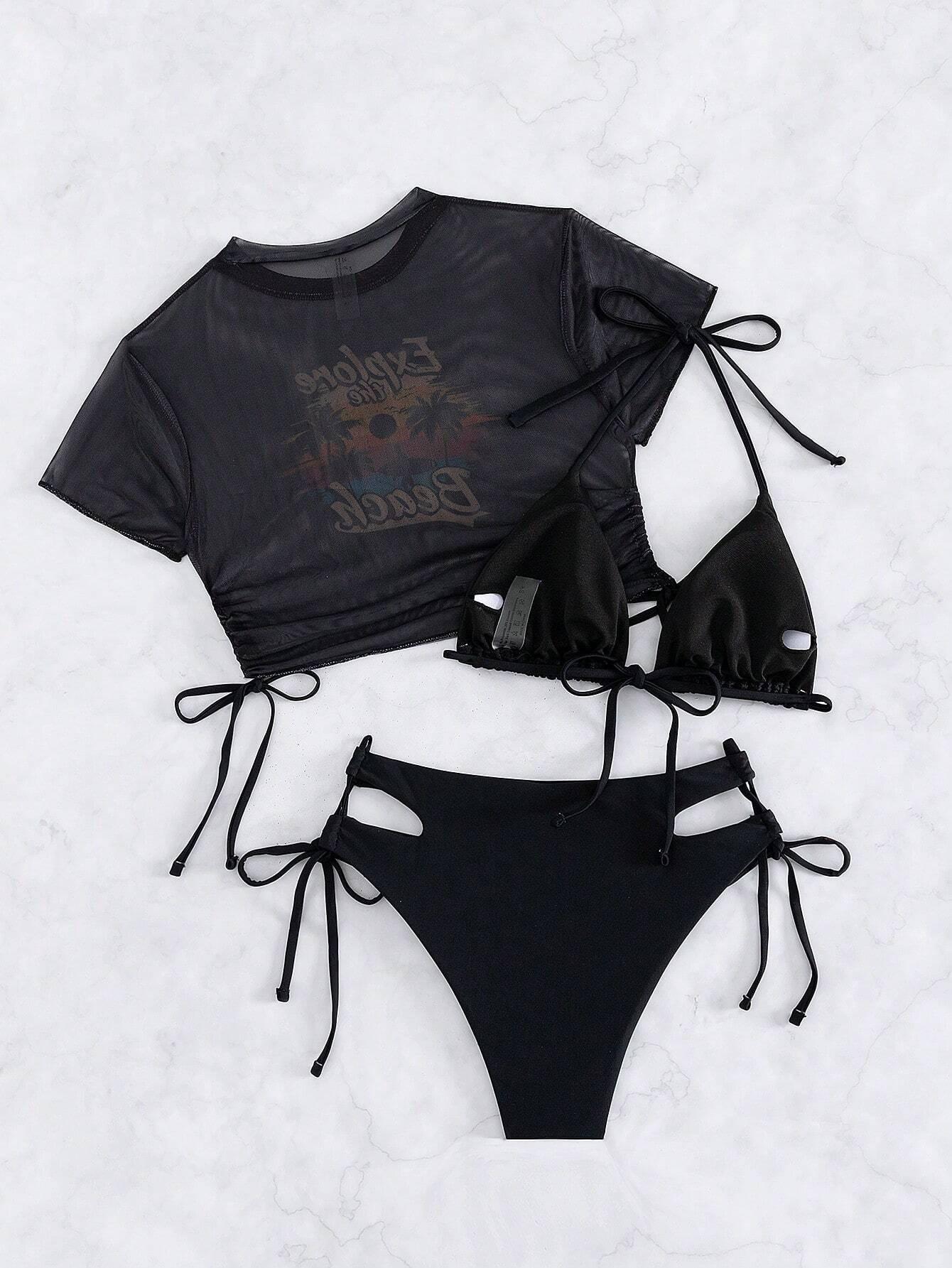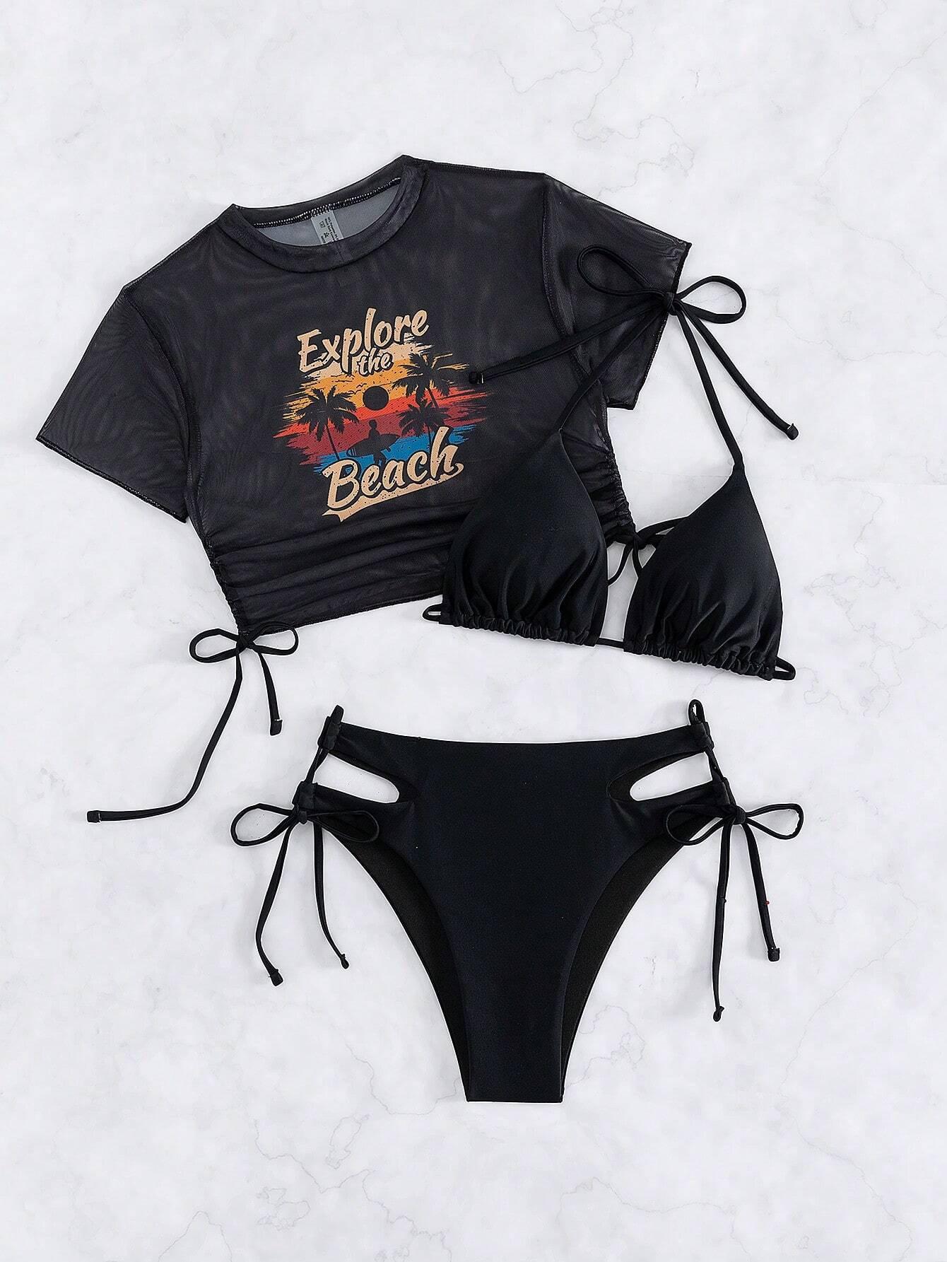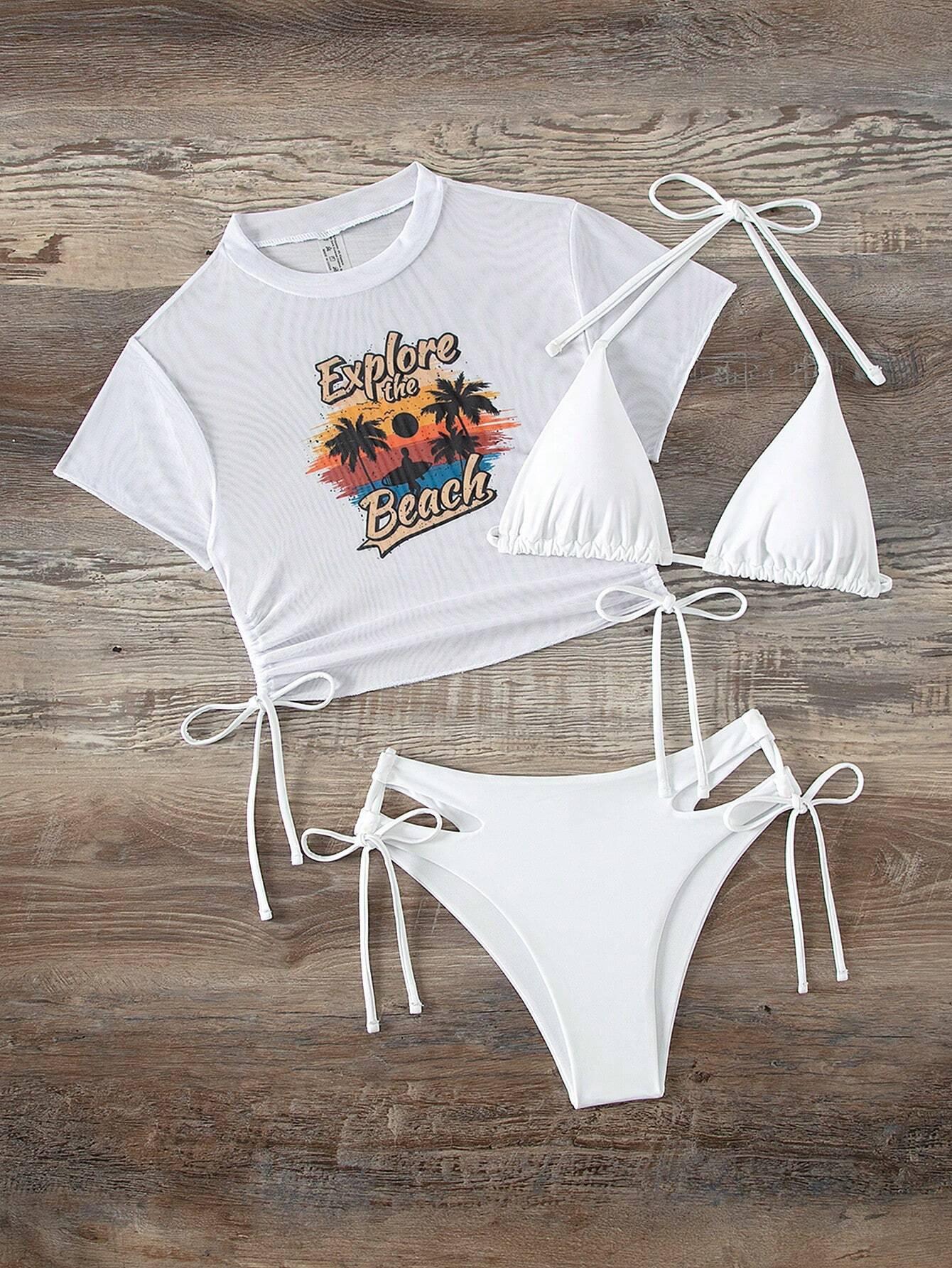 Traje de baño de tres piezas con estampado de bikini sexy, muy vendido en 2024, para mujer, de comercio exterior europeo y americano, popular en la playa.