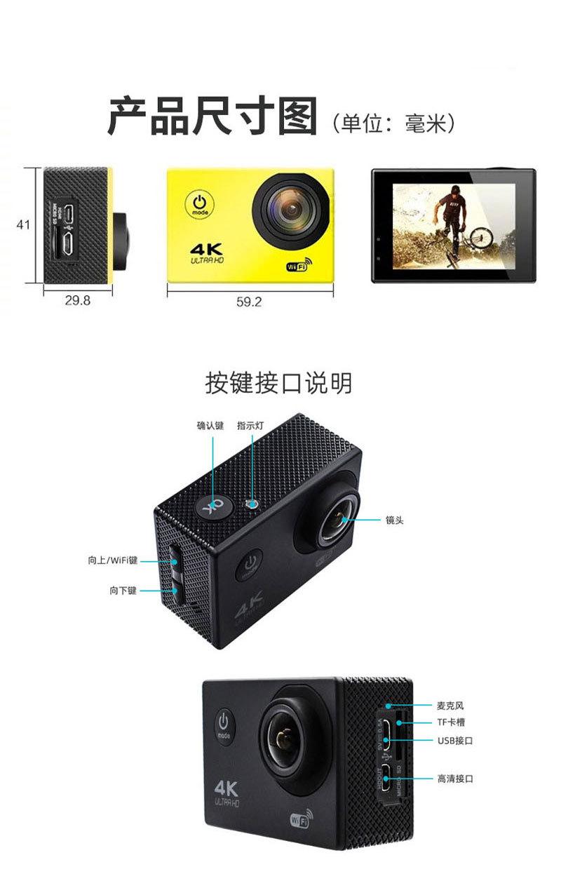 Cámara deportiva HD 4K de generación de fábrica, cámara de video para motocicleta impermeable para buceo al aire libre con control remoto táctil