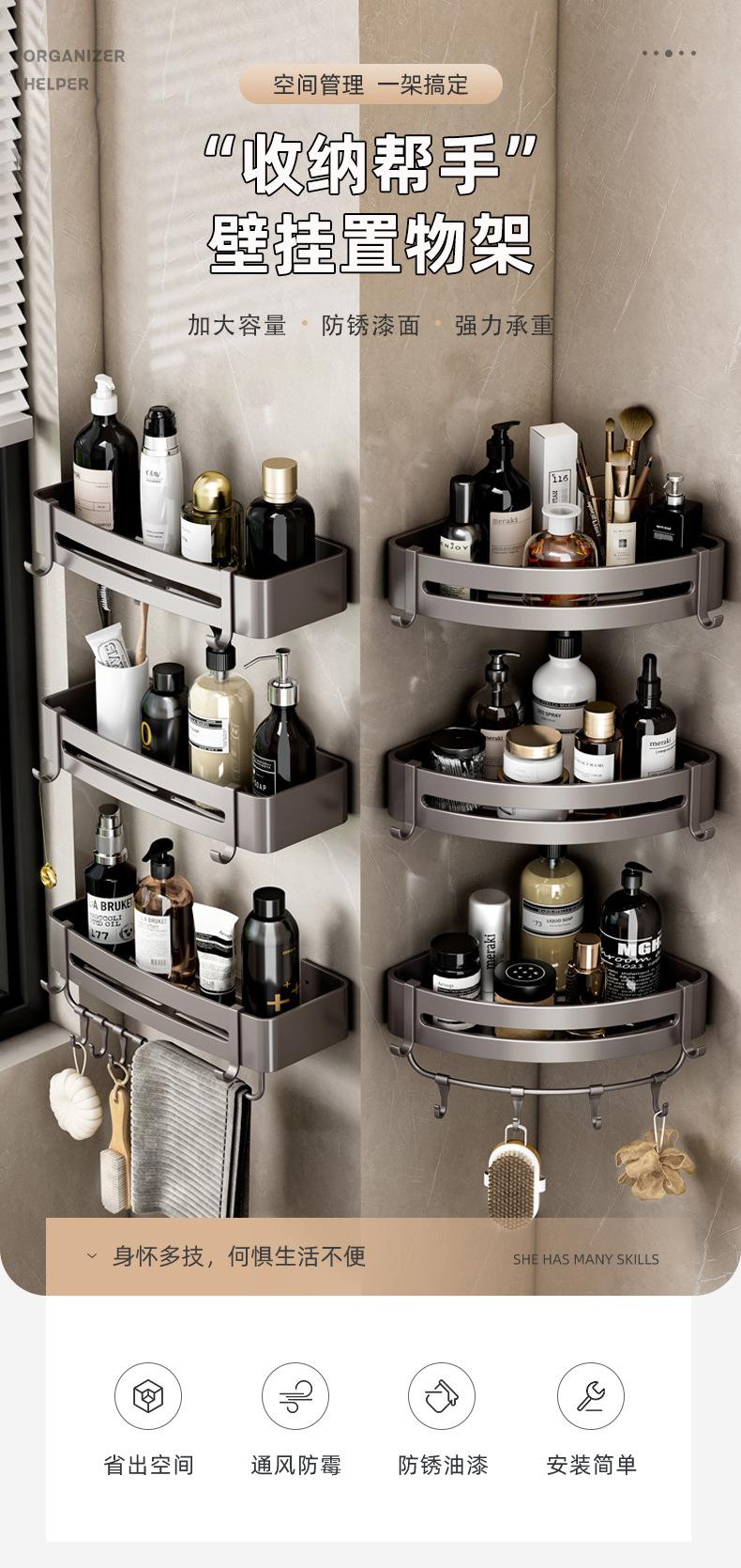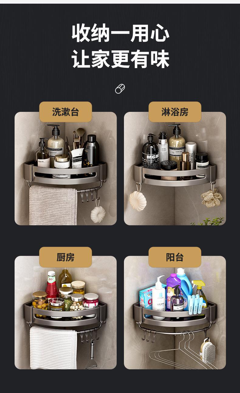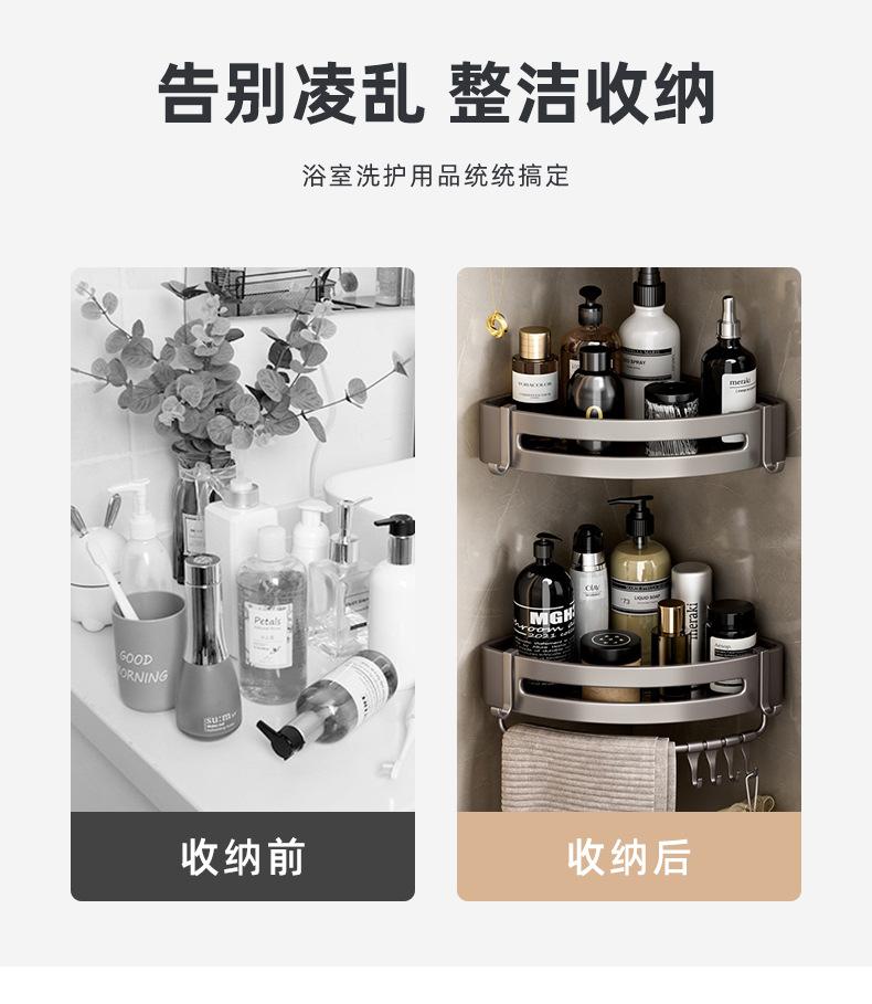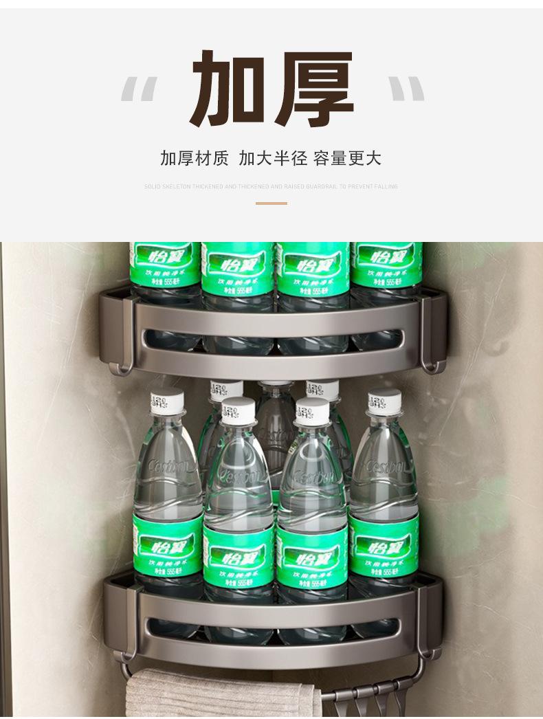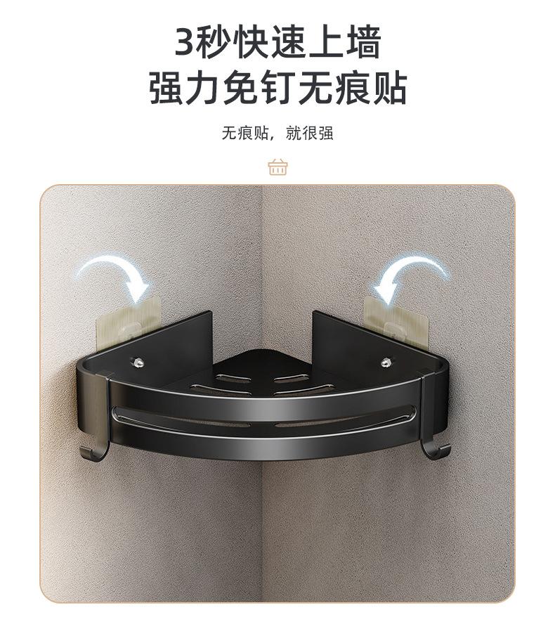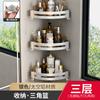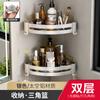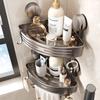 Estante de almacenamiento para baño sin perforaciones, de doble capa, triangular, montado en la pared, ventosa para inodoro, aluminio espacial, estante esquinero para inodoro