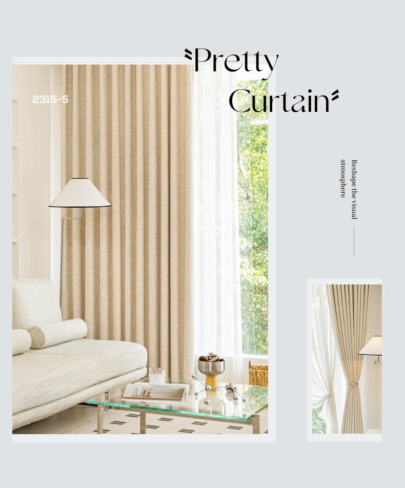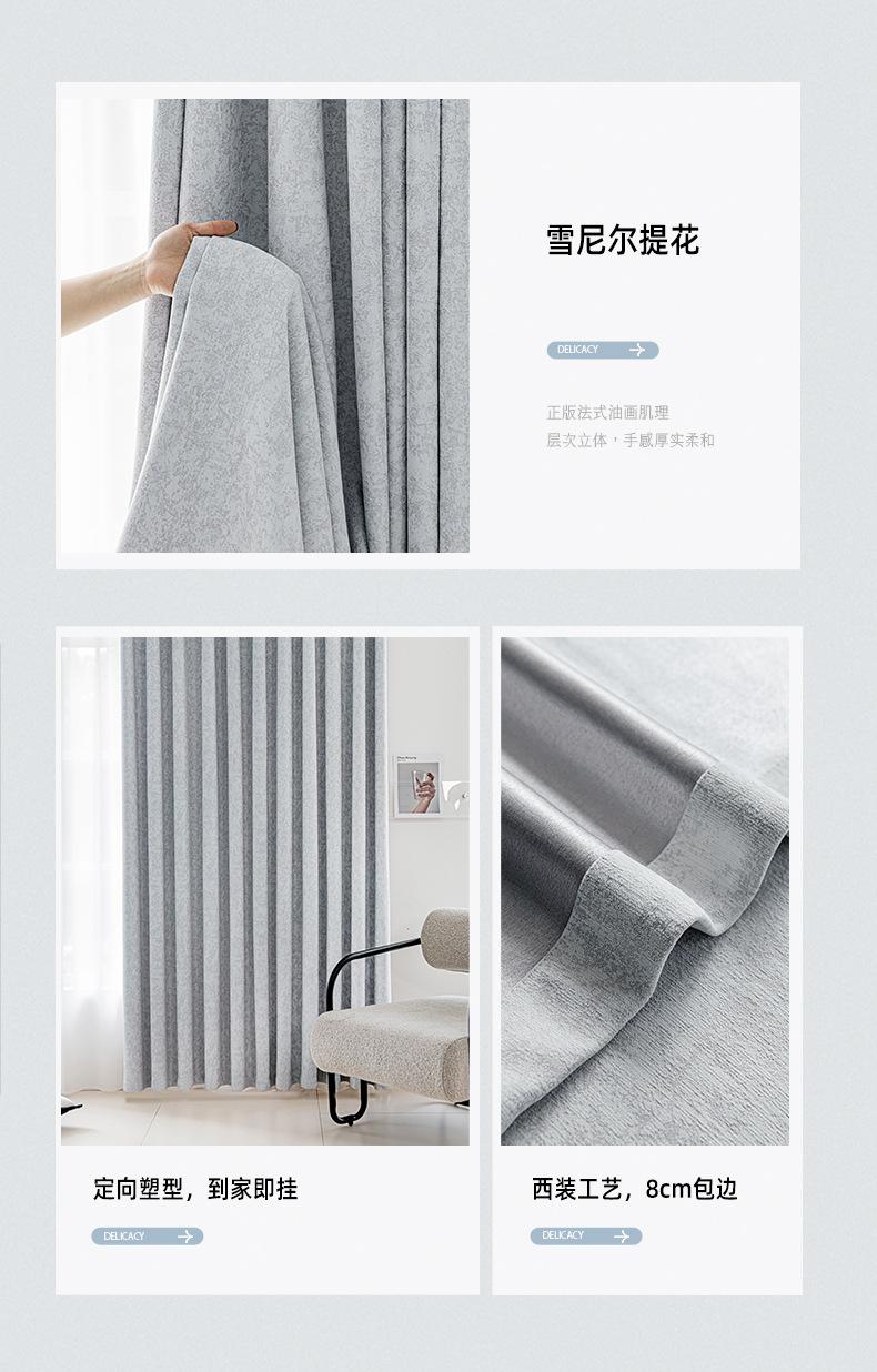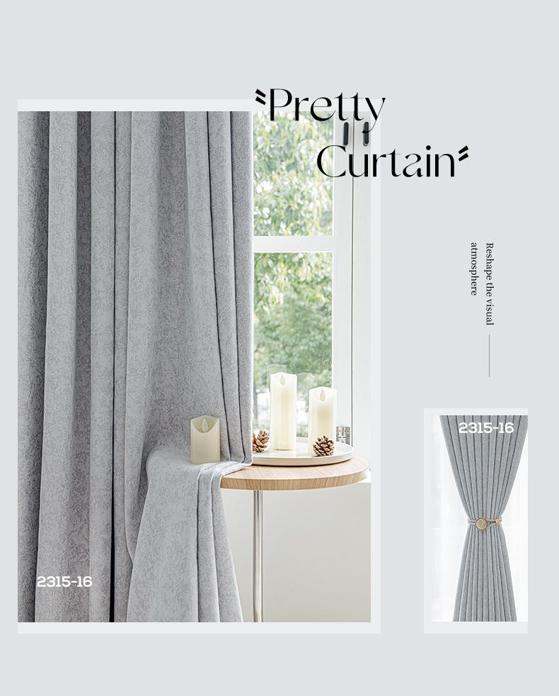 Cortina de Tela Protectora Solar de Alto Blackout Acabado Jacquard Chenille Sala de Estar Comedor Ventana Mirador Tela de Cortina Pequeña para Casa de Alquiler