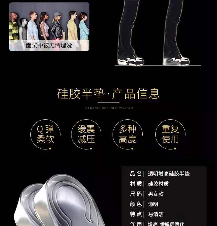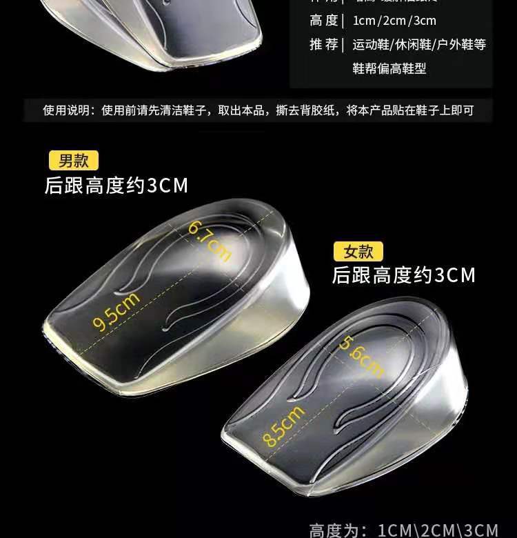 Ventas Directas de Fábrica Plantilla de Silicona Invisible para Aumento de Altura Interior Unisex Invisible Almohadilla de Talón de Media Almohadilla