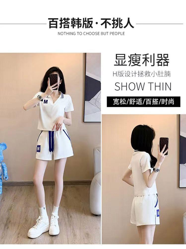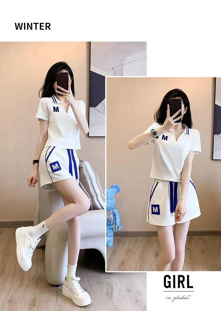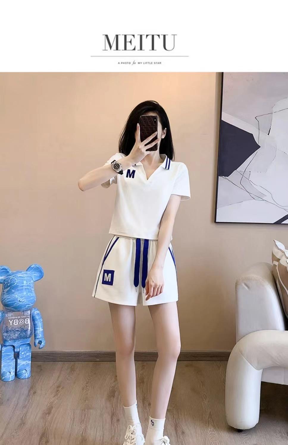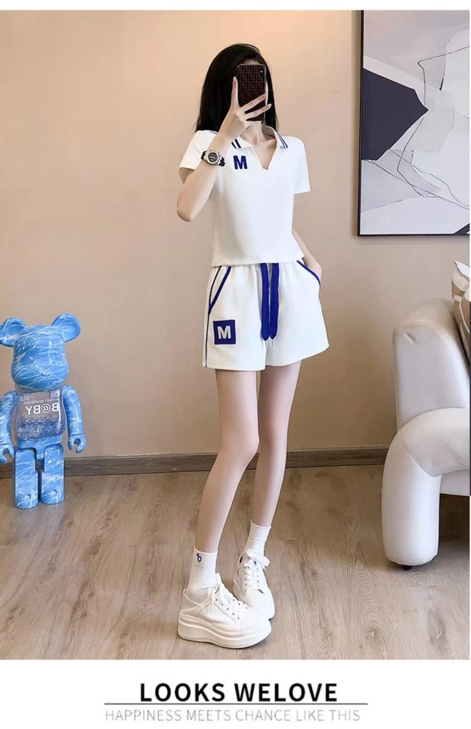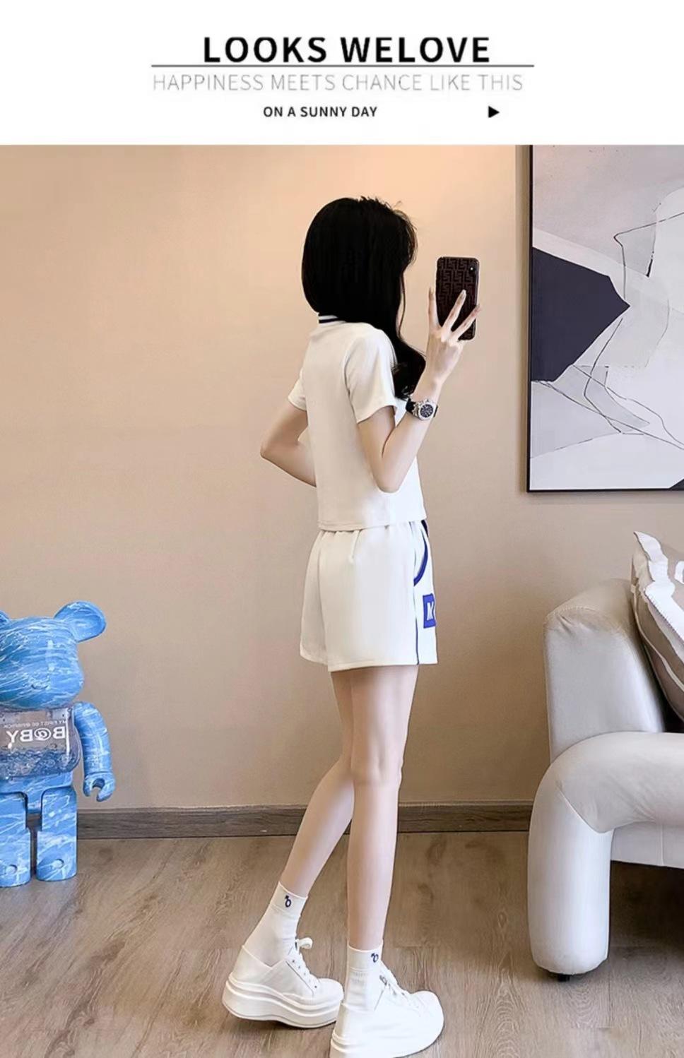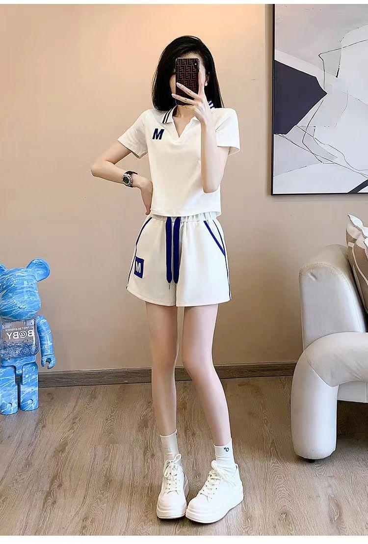 Traje deportivo transfronterizo para mujer Verano Delgado 2025 Nuevo Casual Adelgazante Reductor de edad Manga corta Shorts Conjunto de dos piezas