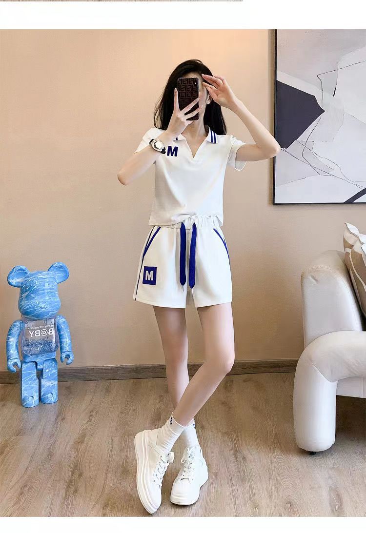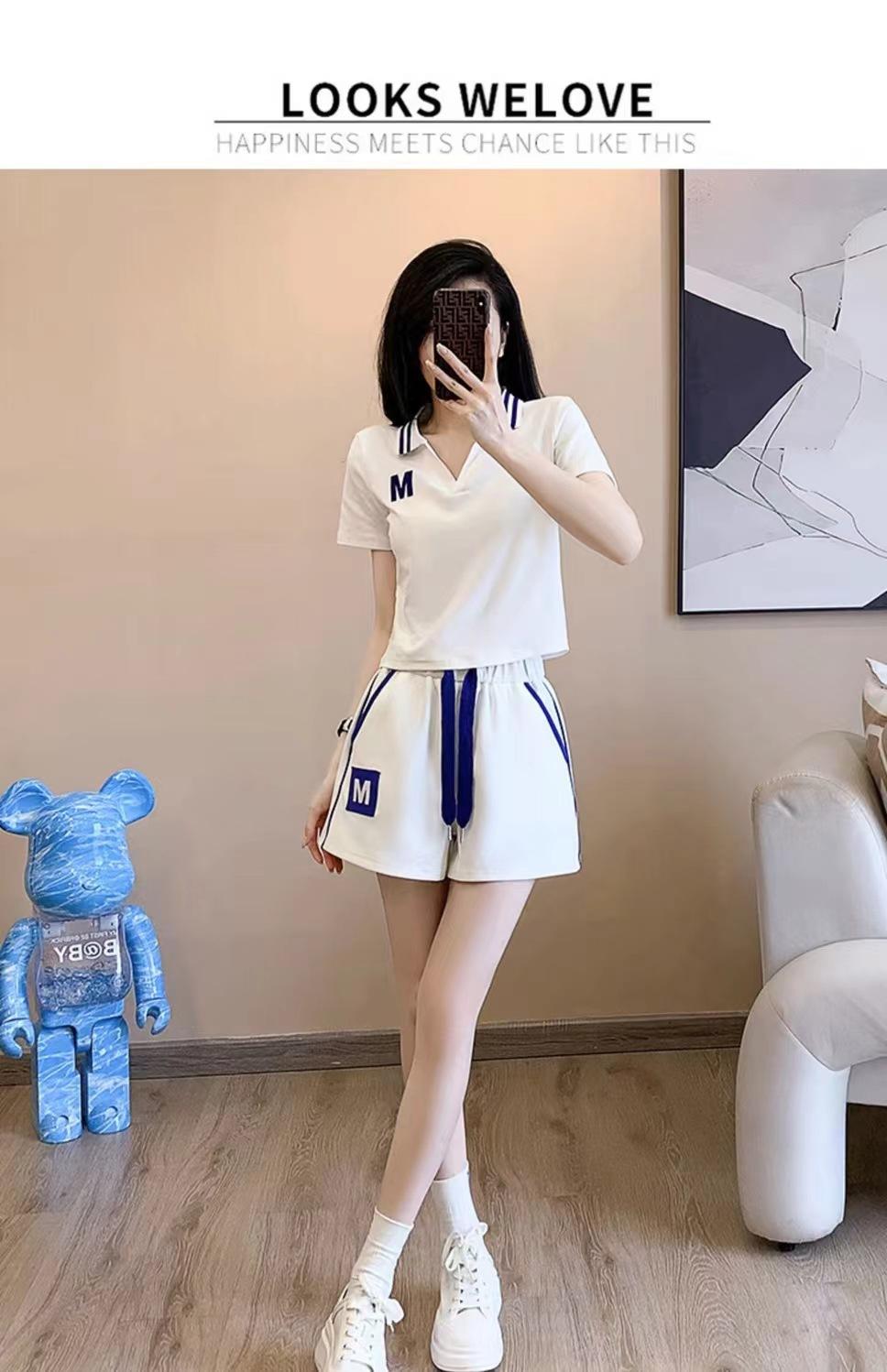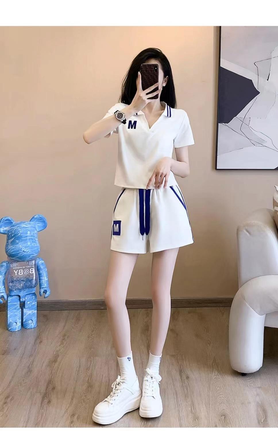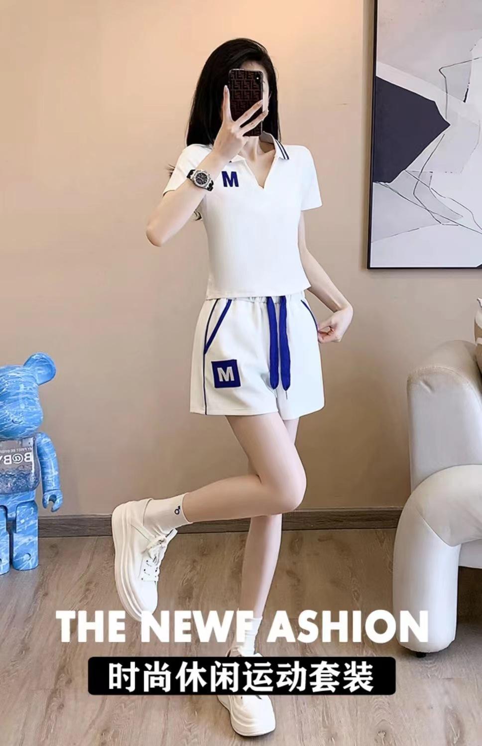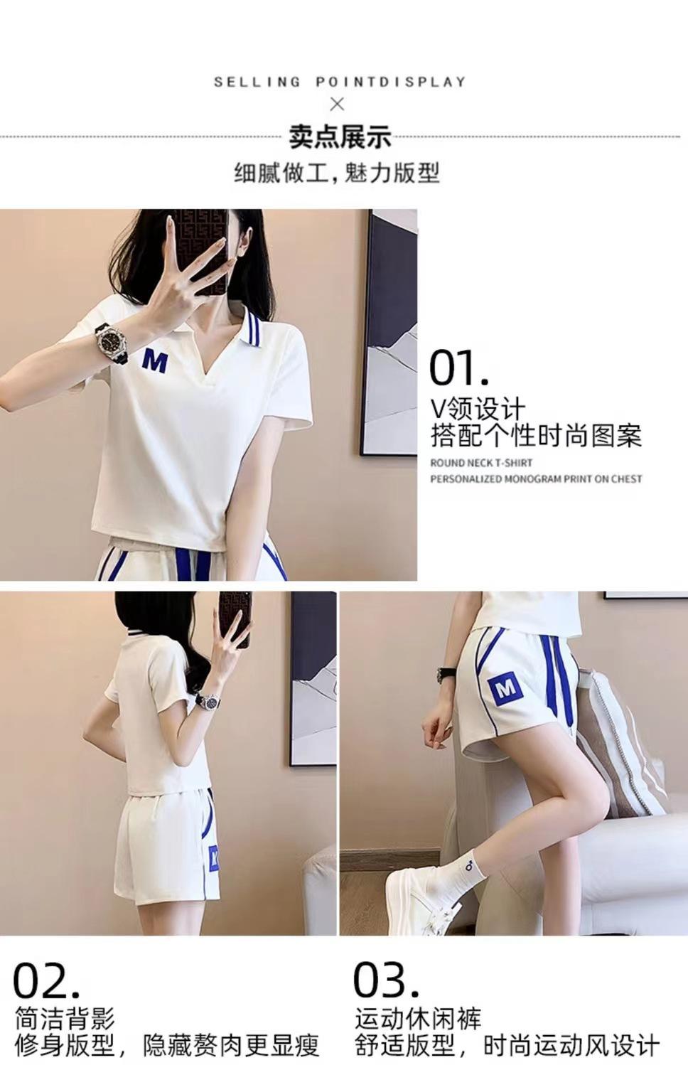 Traje deportivo transfronterizo para mujer Verano Delgado 2025 Nuevo Casual Adelgazante Reductor de edad Manga corta Shorts Conjunto de dos piezas