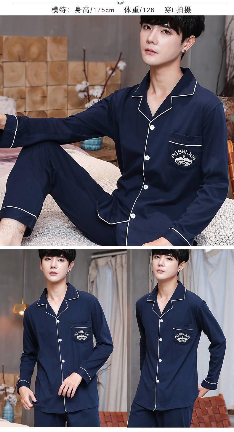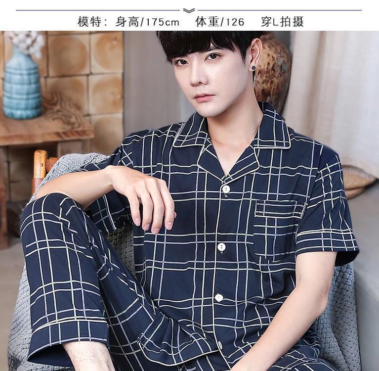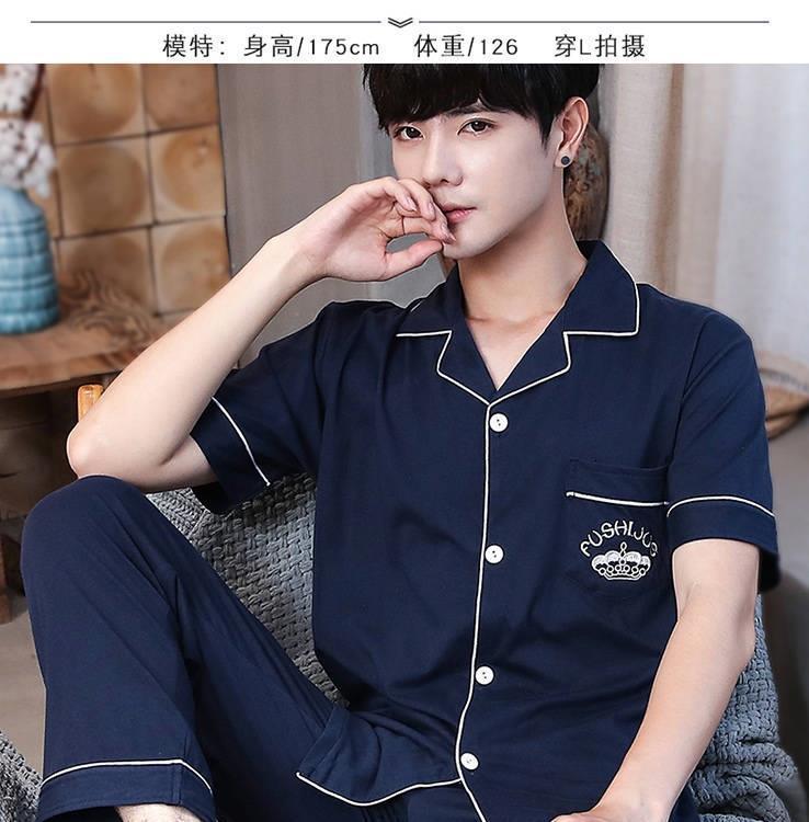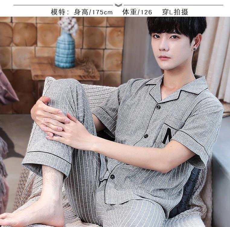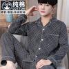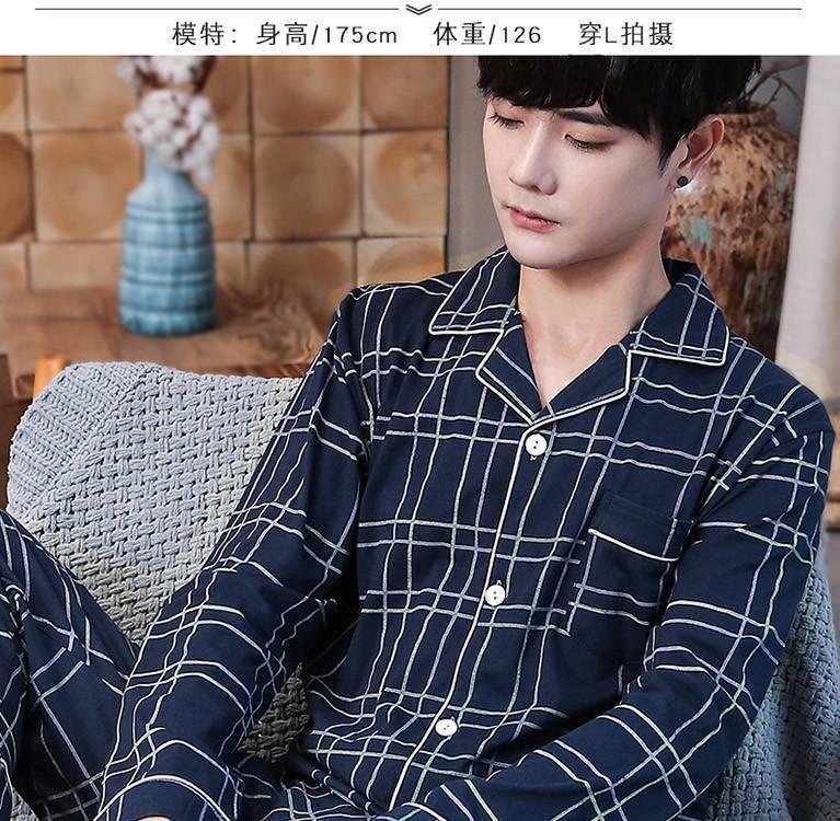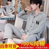 Pijama de algodón 100% para hombre, de verano, manga corta, primavera y otoño, manga larga, juvenil, fino, talla grande, para el hogar