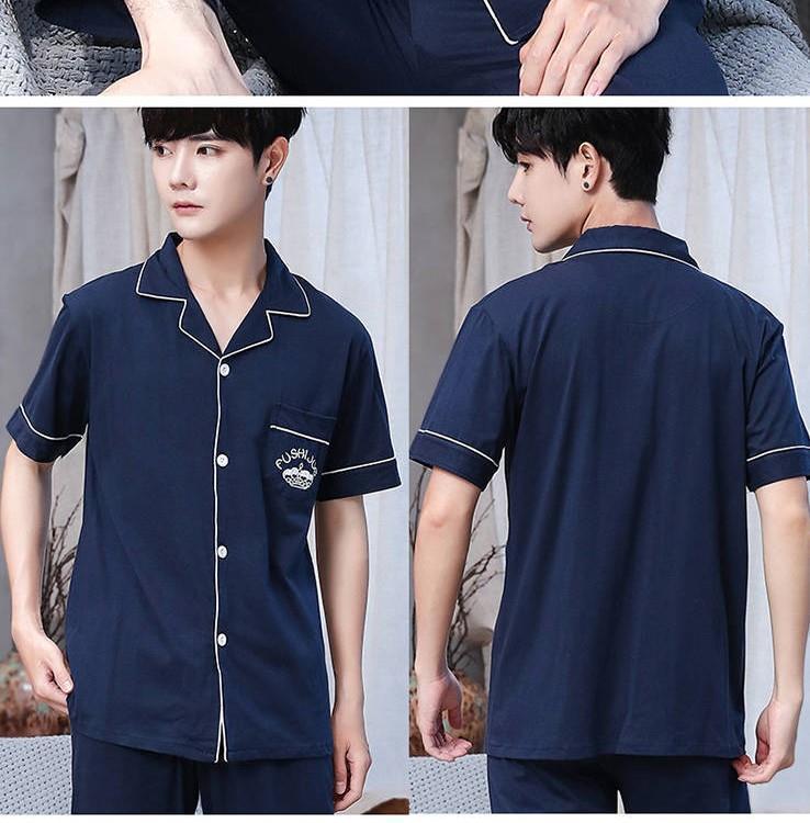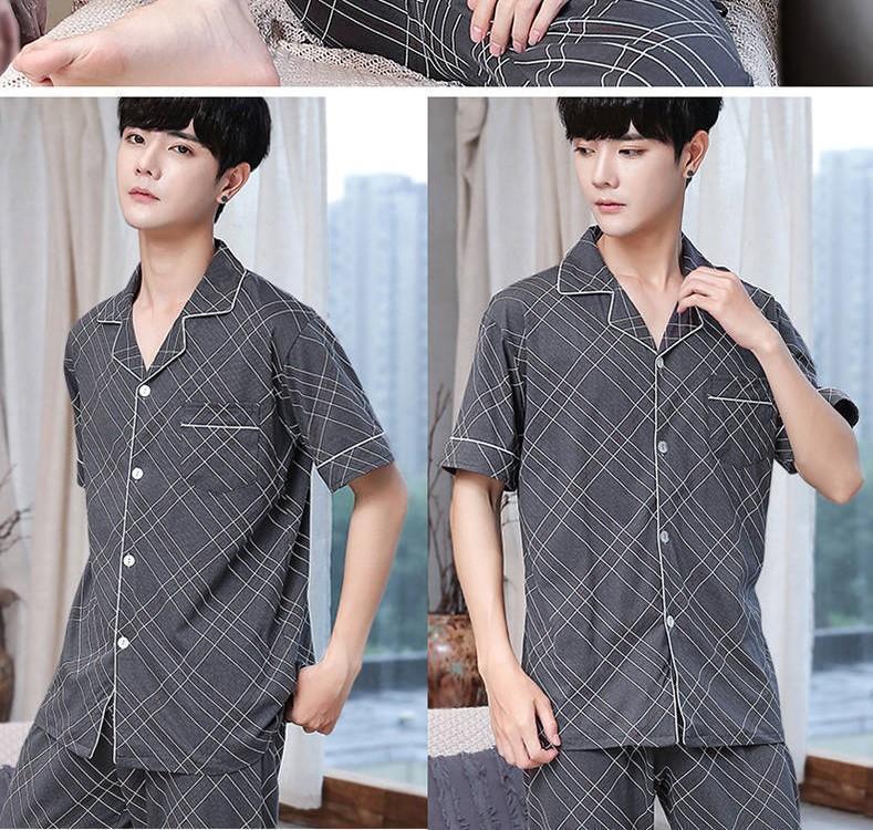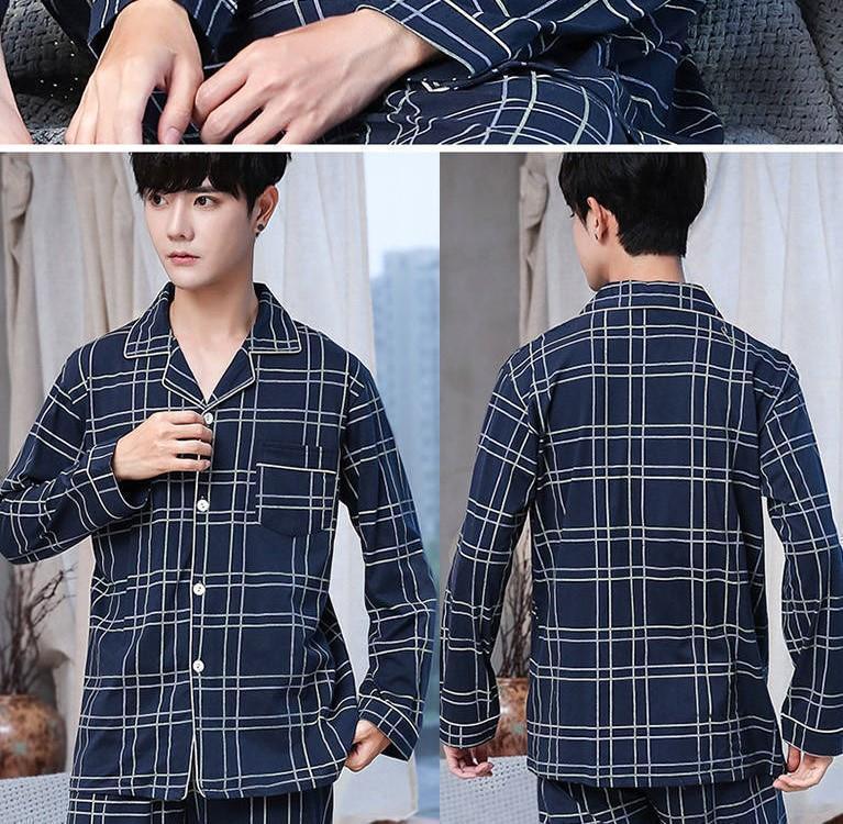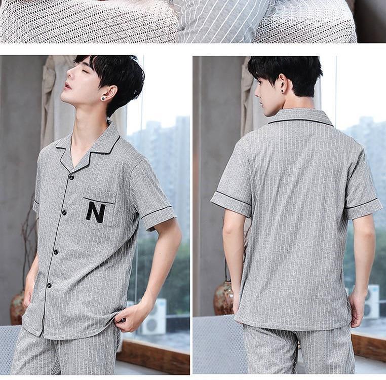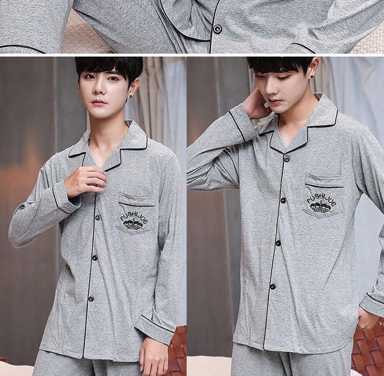 Pijama de algodón 100% para hombre, de verano, manga corta, primavera y otoño, manga larga, juvenil, fino, talla grande, para el hogar