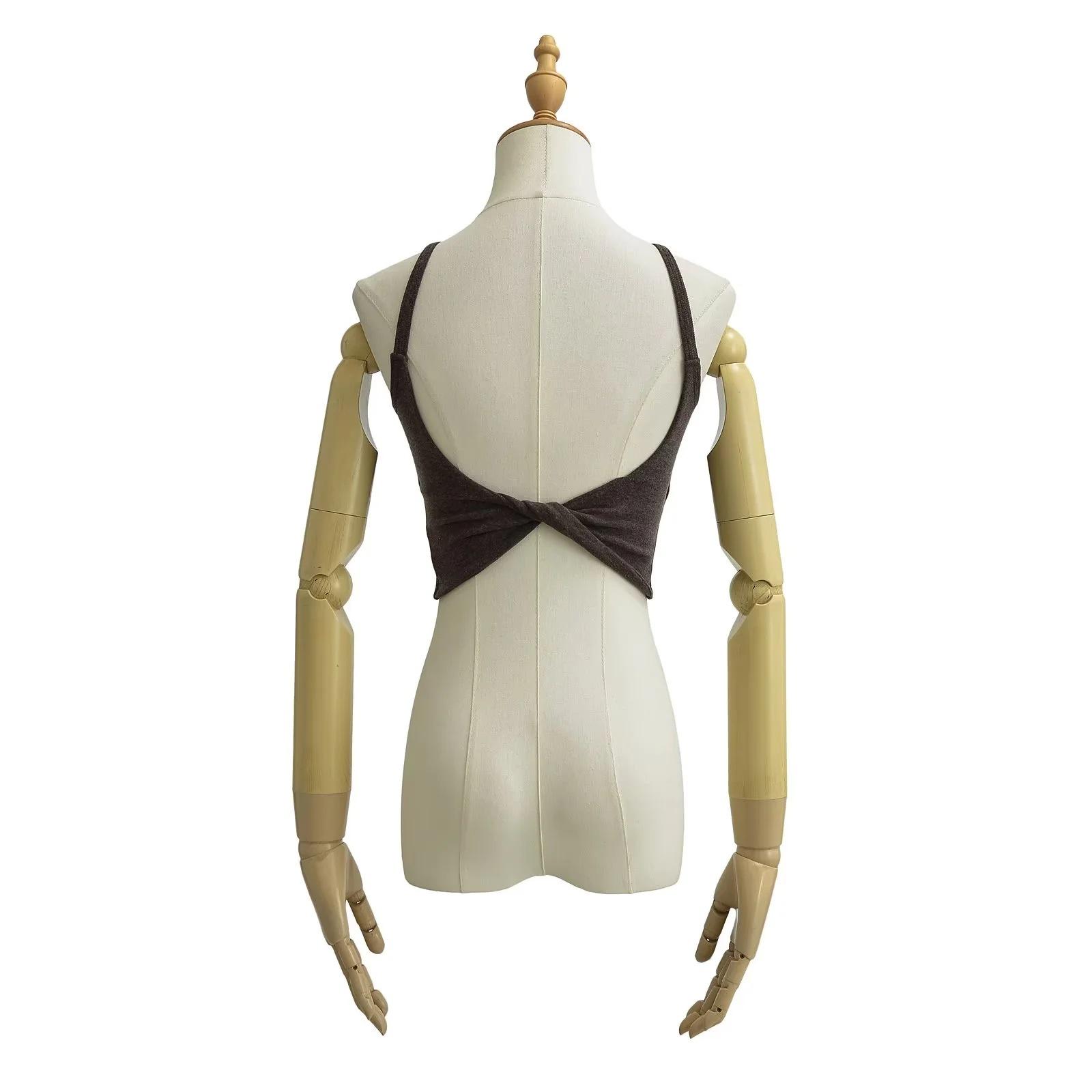 Camisola corta ajustada para mujer, estilo sexy de chica sexy europea y americana, con cepillado cruzado, novedad de verano