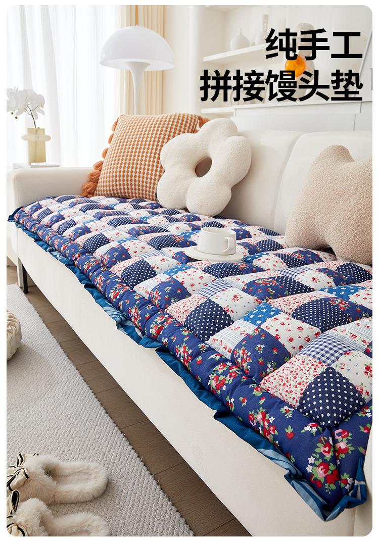 Cojín de sofá hecho a mano estilo coreano fresco estilo ins plato de ajedrez a cuadros cojín de pan al vapor antideslizante engrosado tapete para mirador para las cuatro estaciones